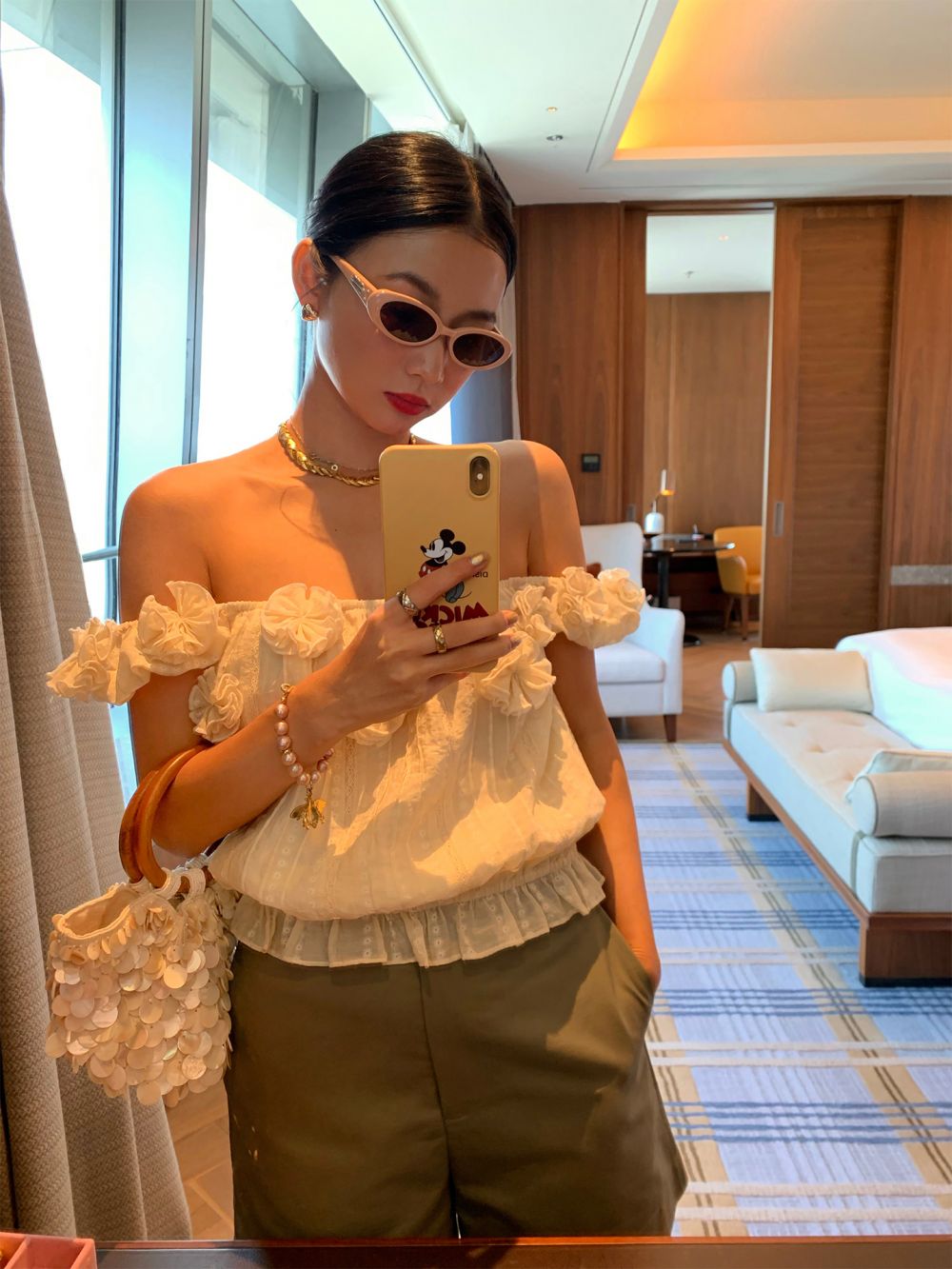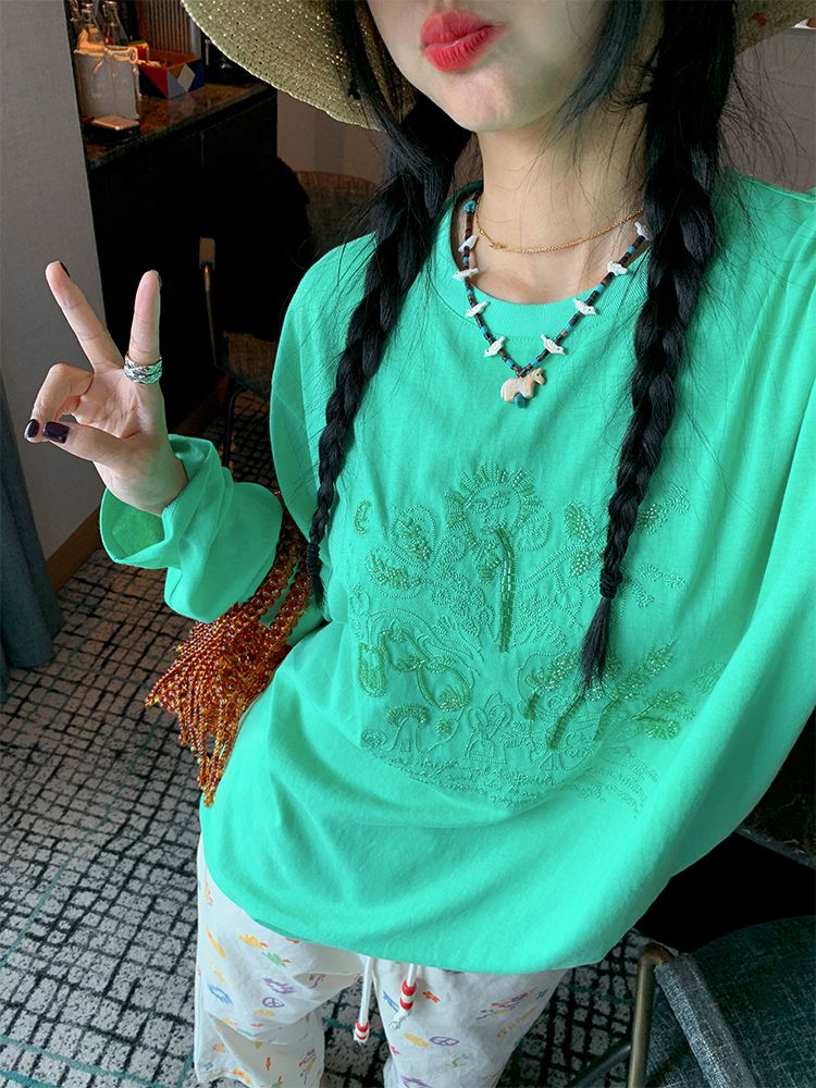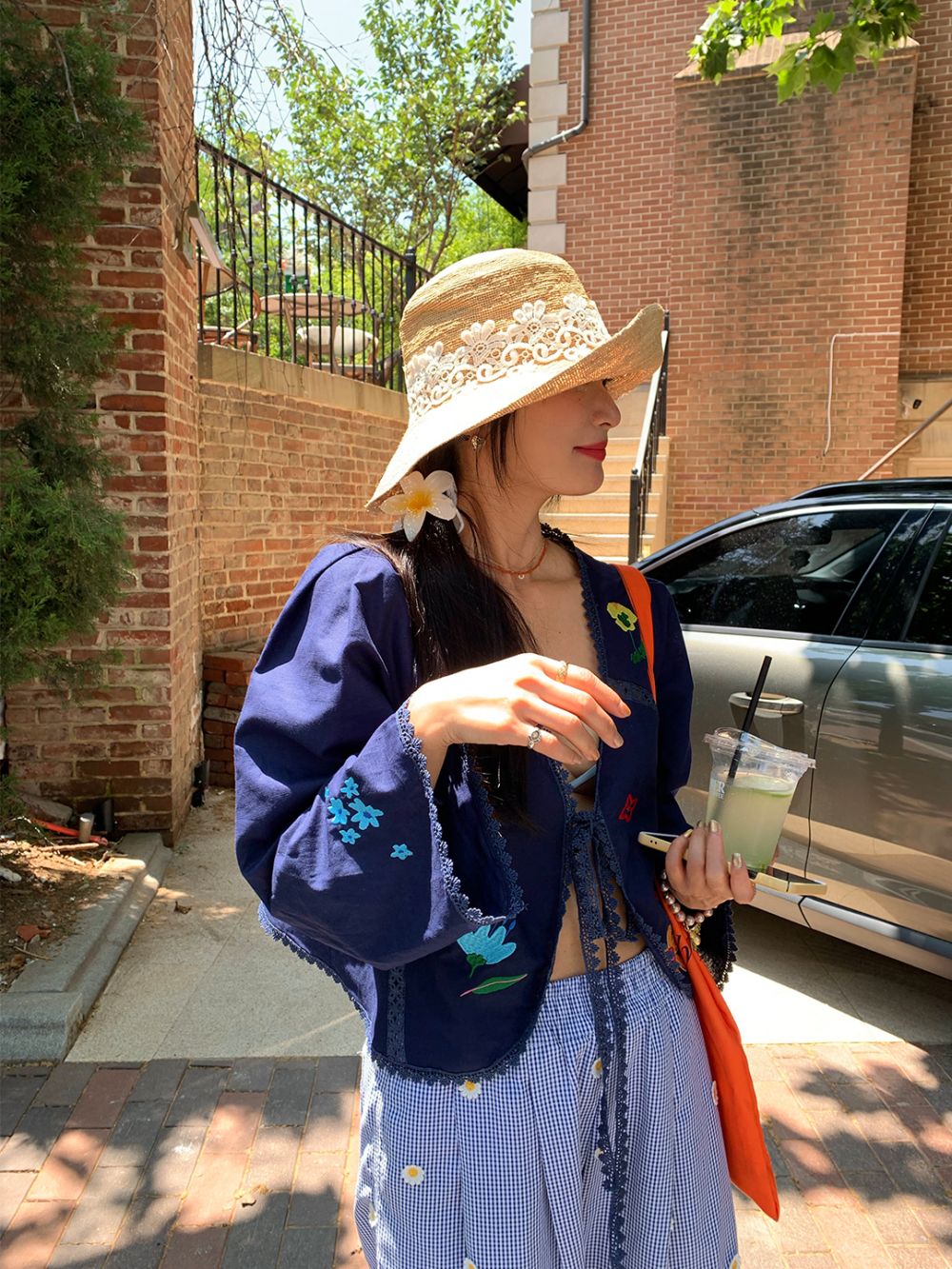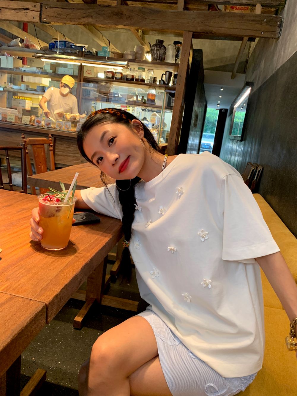LUO refreshing short-sleeved embroidered hollow white shirt