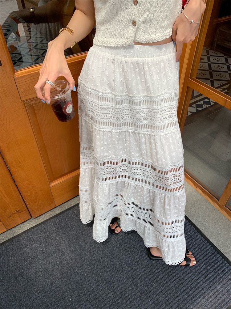 LUO A-line spring and summer hollow white skirt