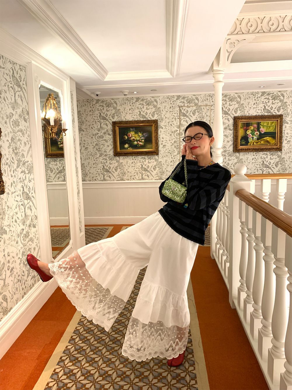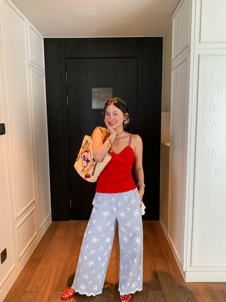LUO wide-leg embroidered stripes pants