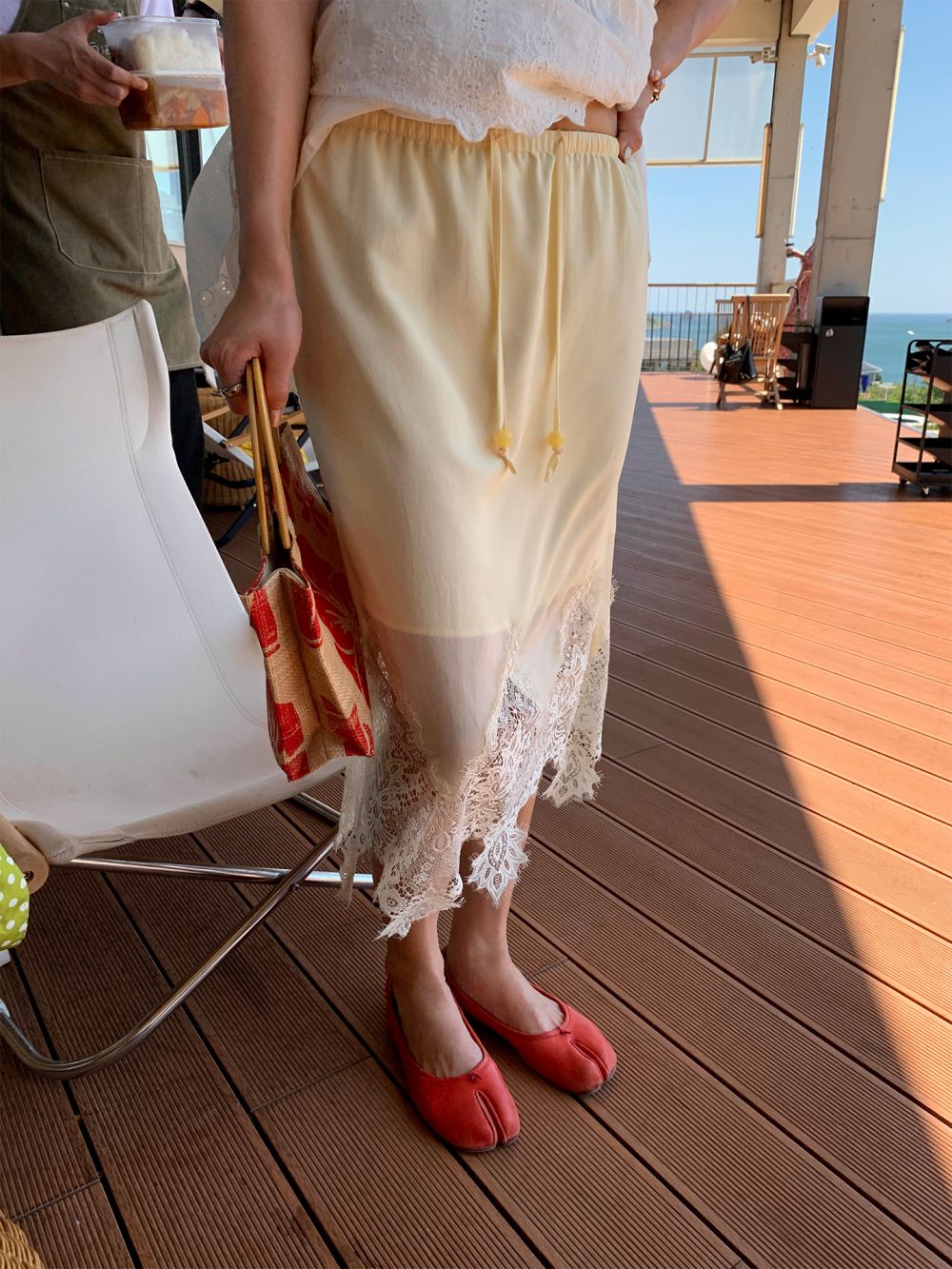 LUO chiffon Natural pleating effect white lace skirt