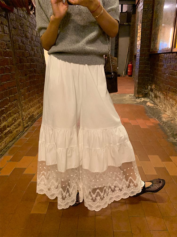 LUO mesh embroidered patchwork pants skirt