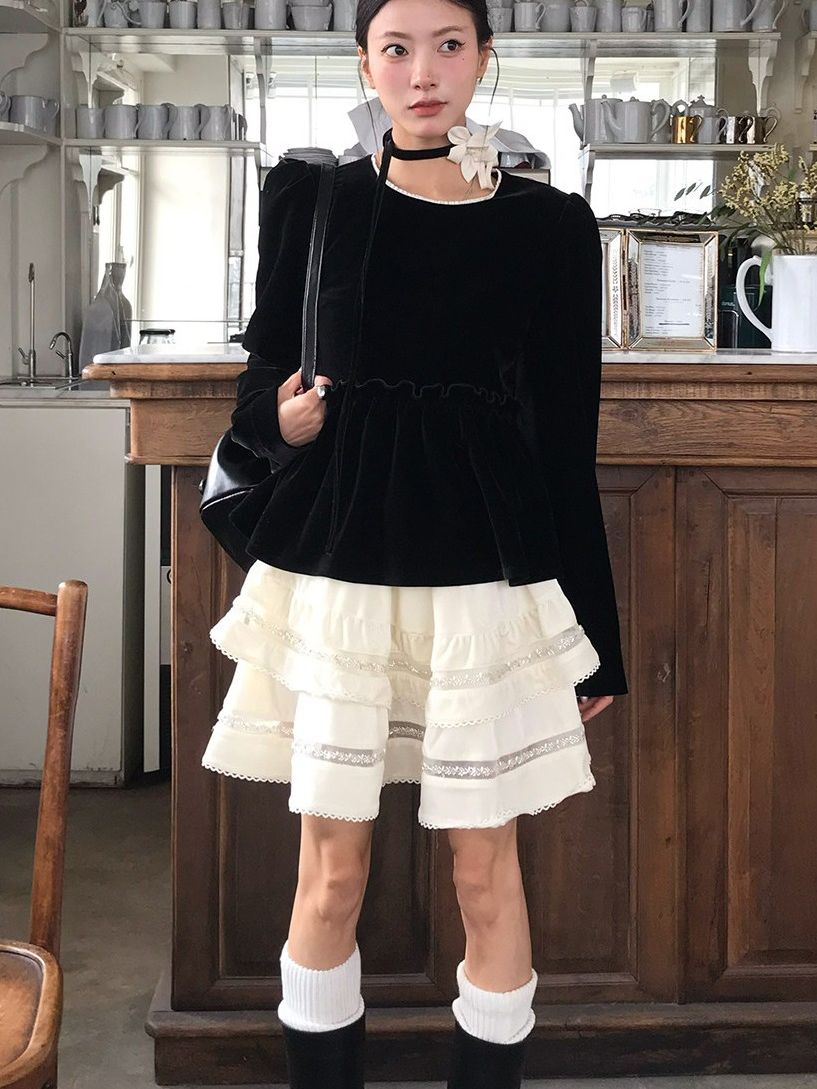 YADA Miss Alice T-shirt + Creamy Layer Cake Skirt + flower