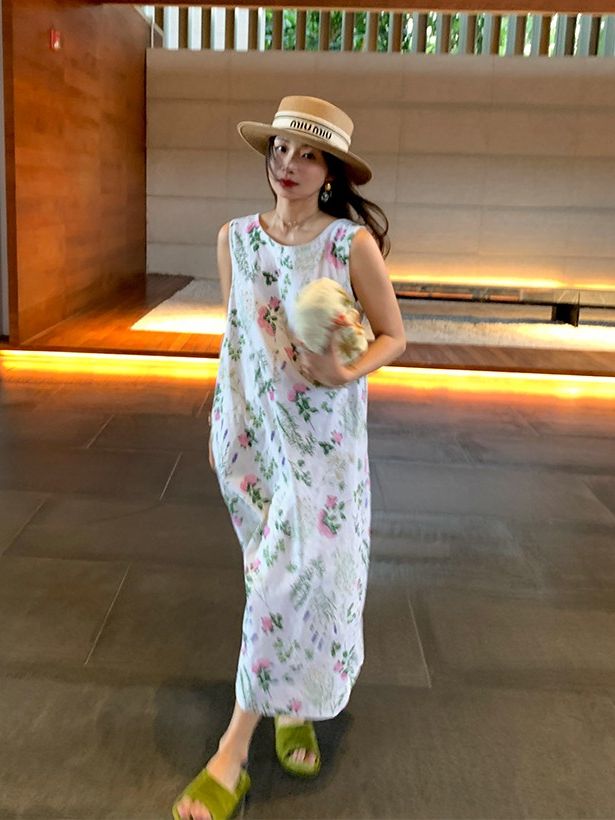 LUO Spring Girl Sleeveless Backless Floral Dress
