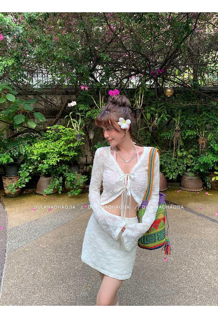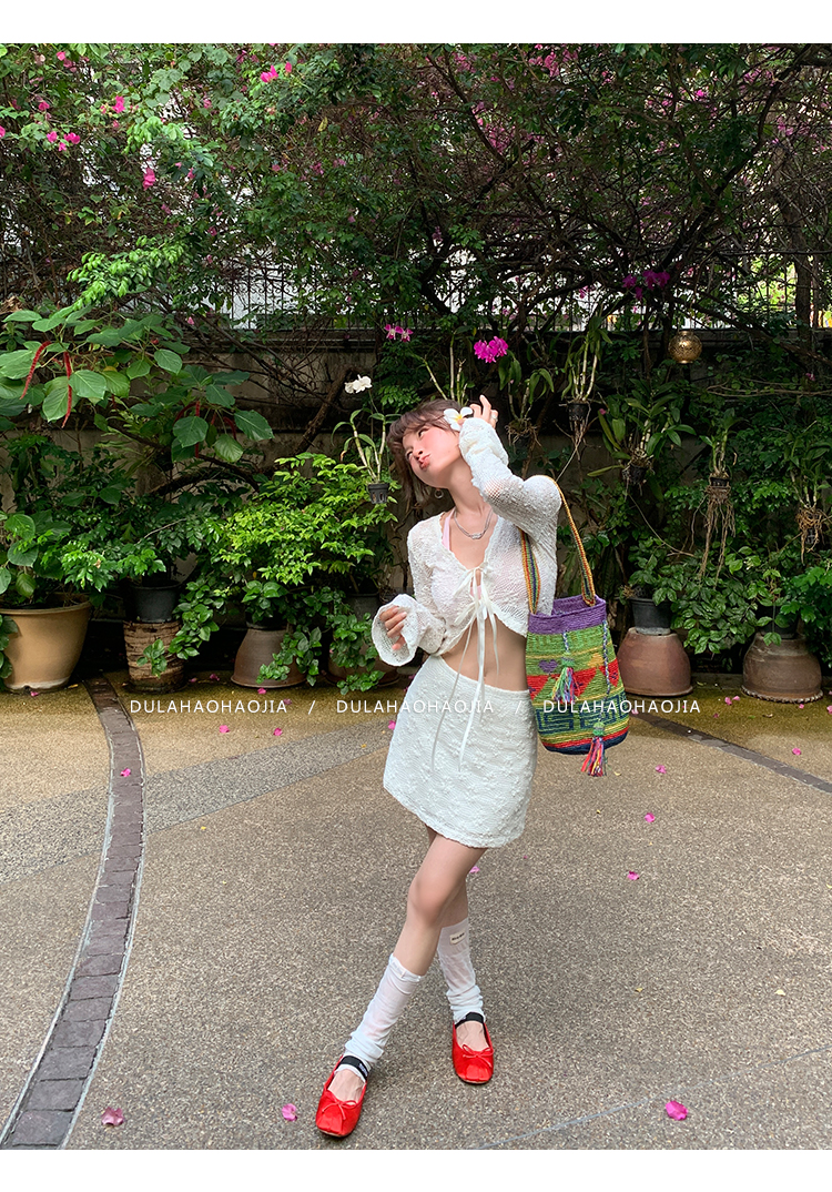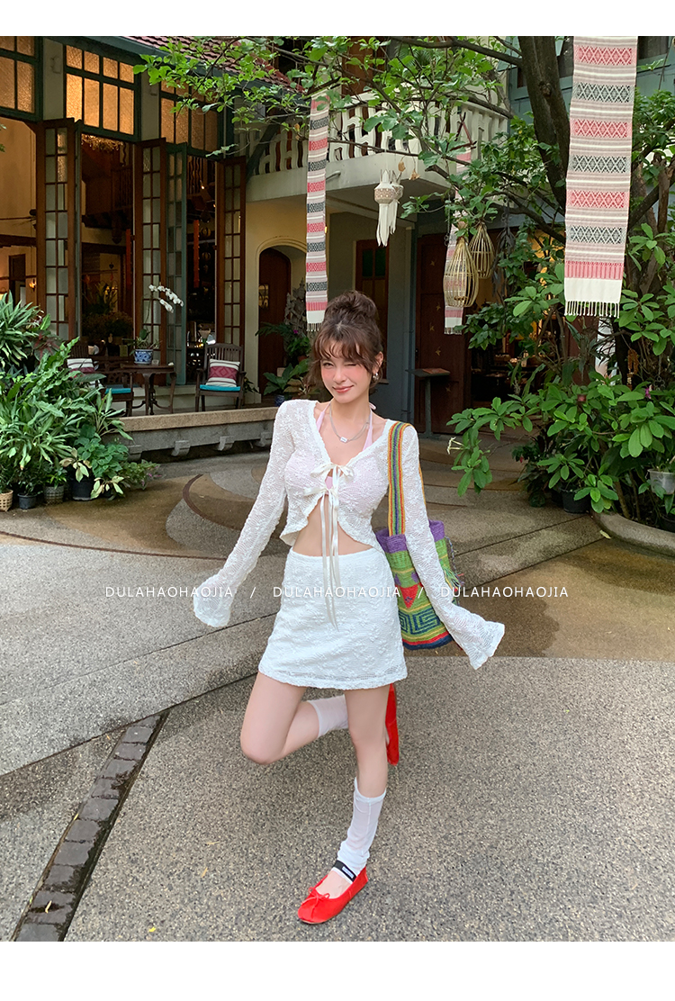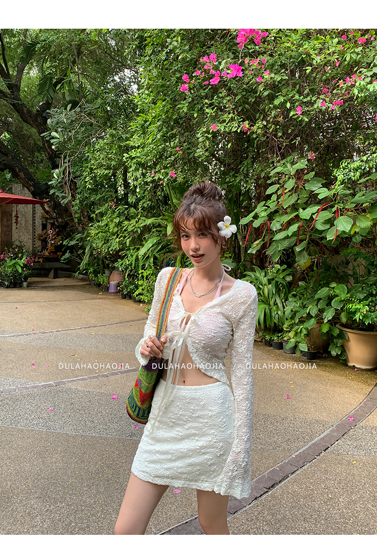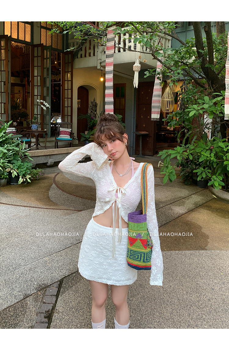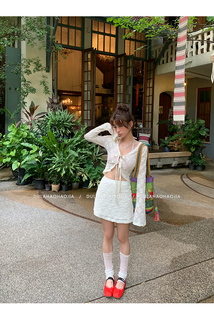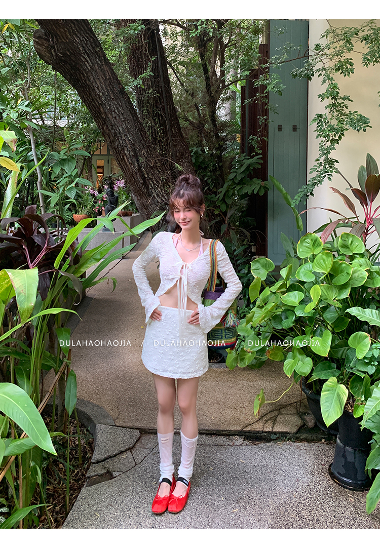 DULA Ballet Lace Sunscreen Cardigan + Butt-Wrapped Skirt