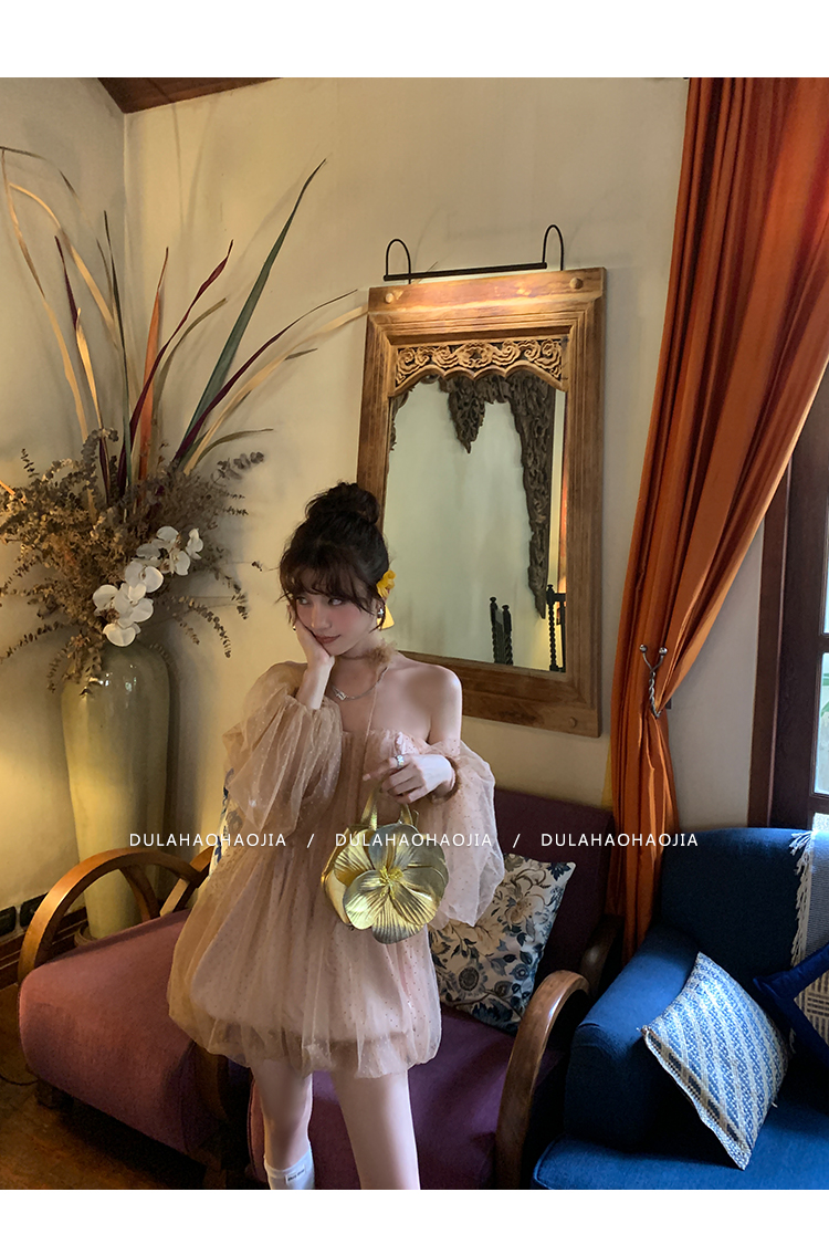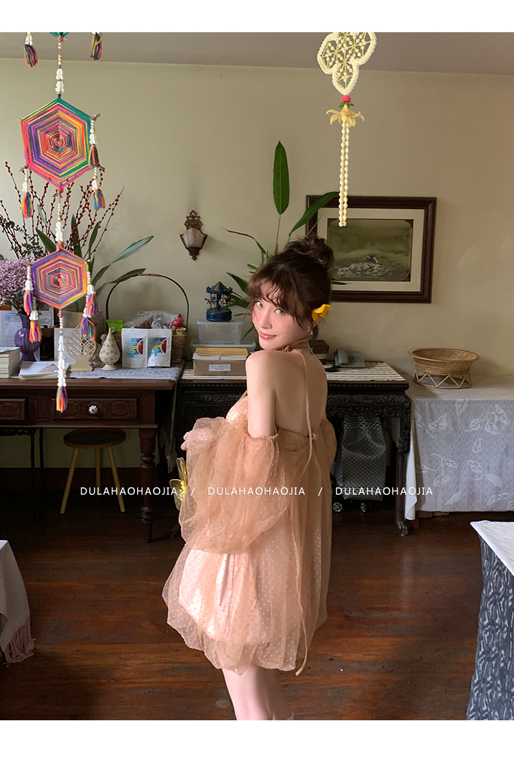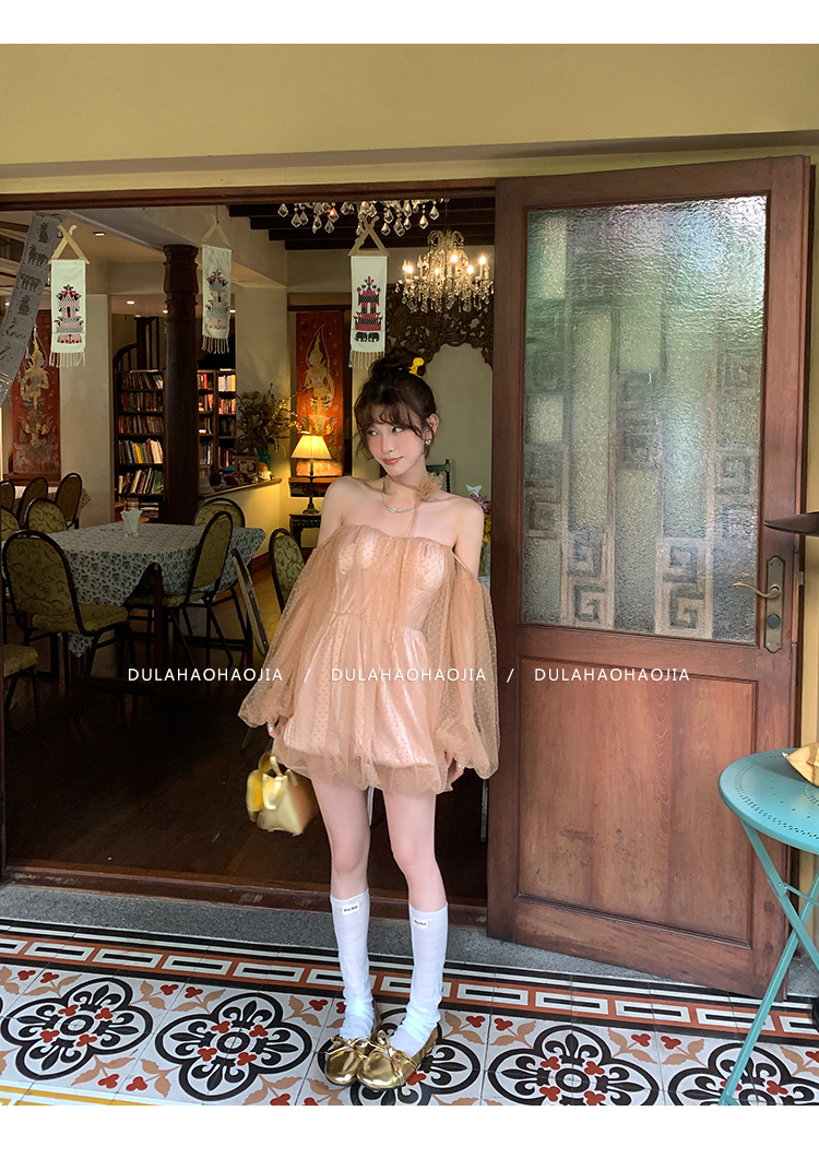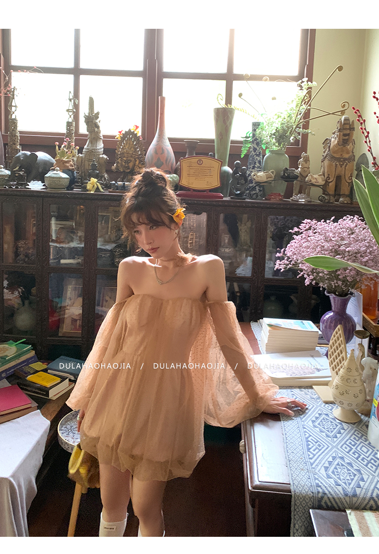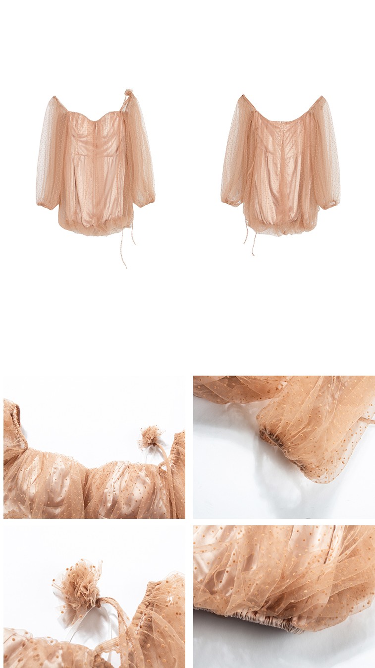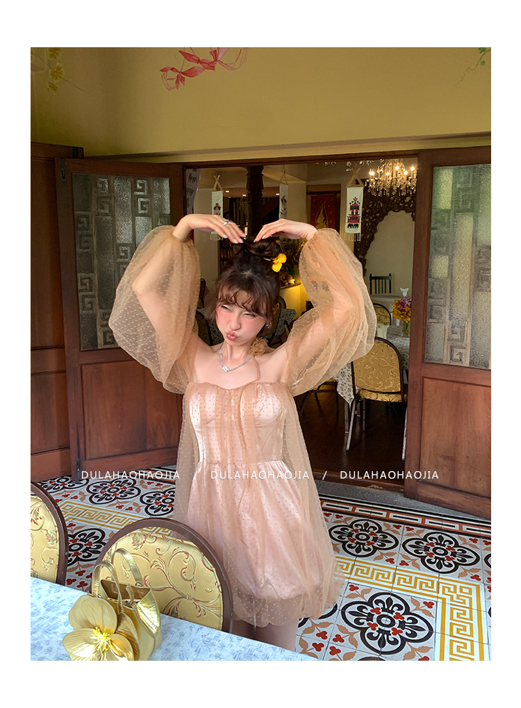 DULA Pure Desire Shoulder Bubble Sleeve Mesh Dot Dress