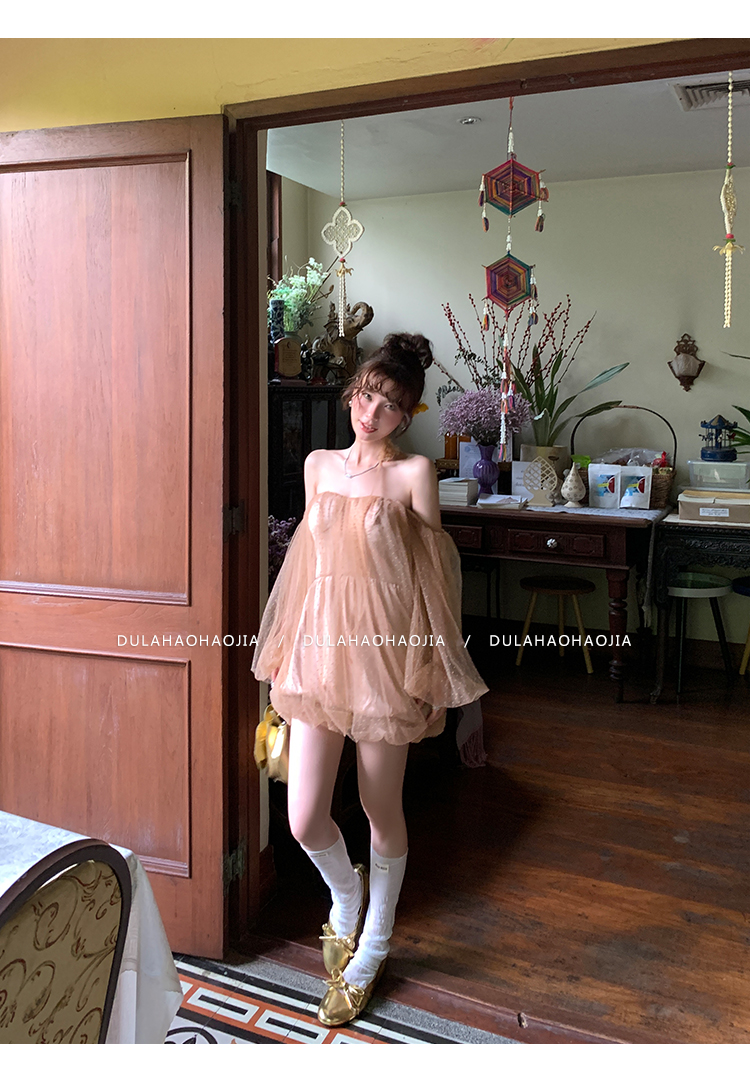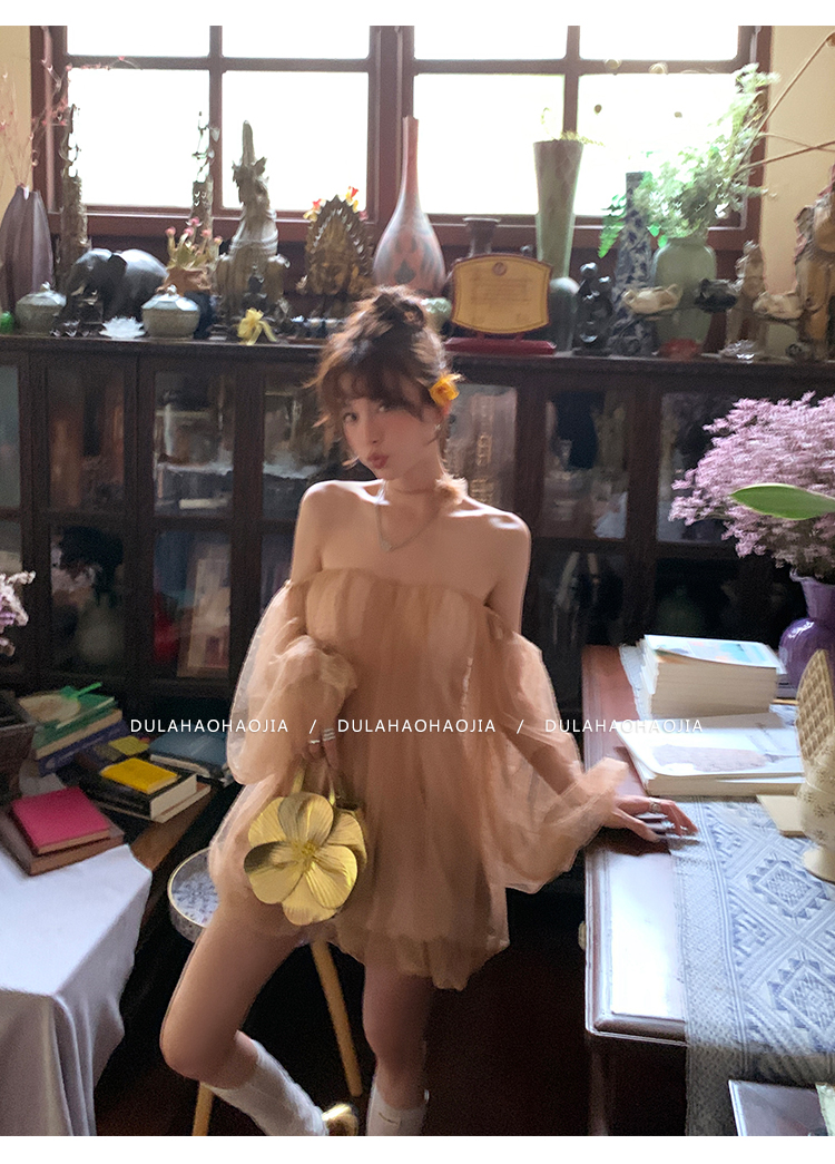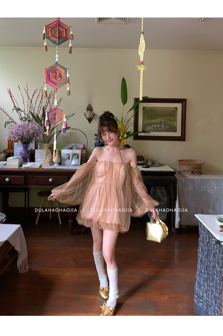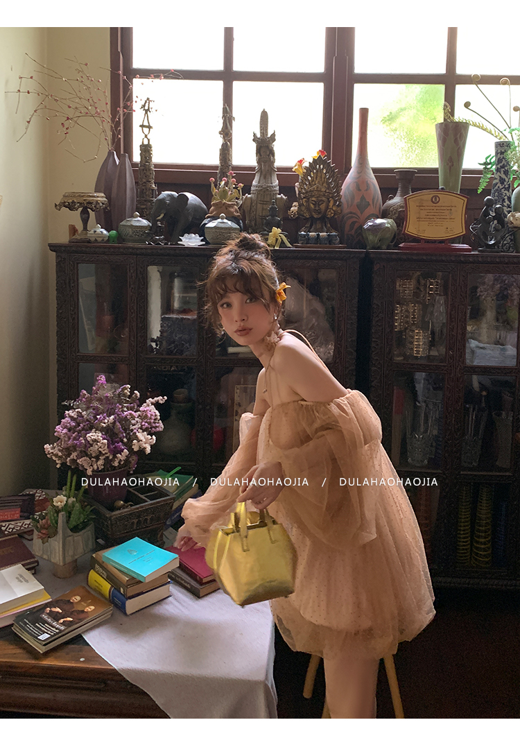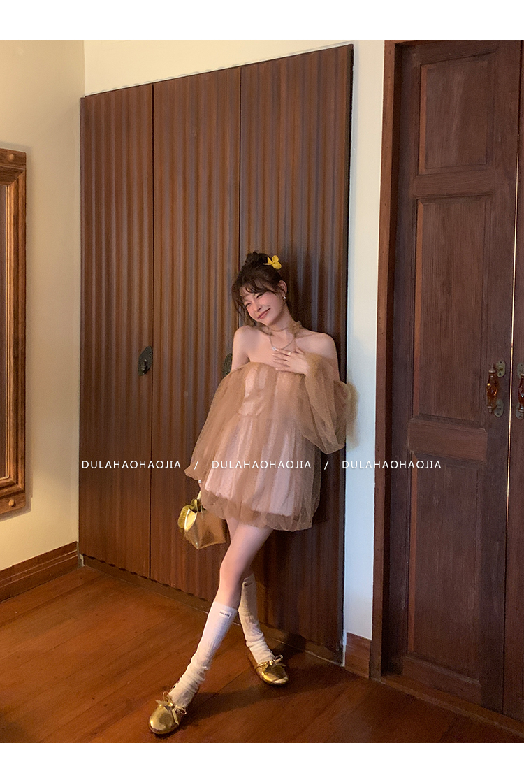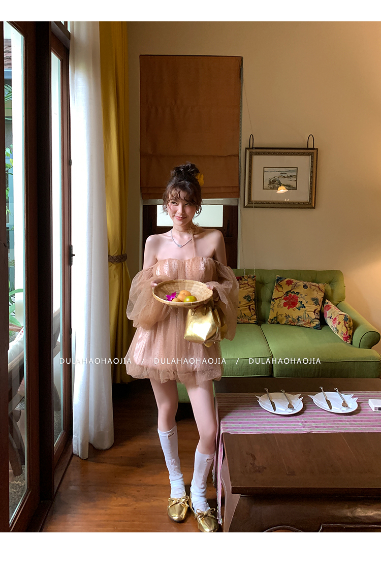 DULA Pure Desire Shoulder Bubble Sleeve Mesh Dot Dress