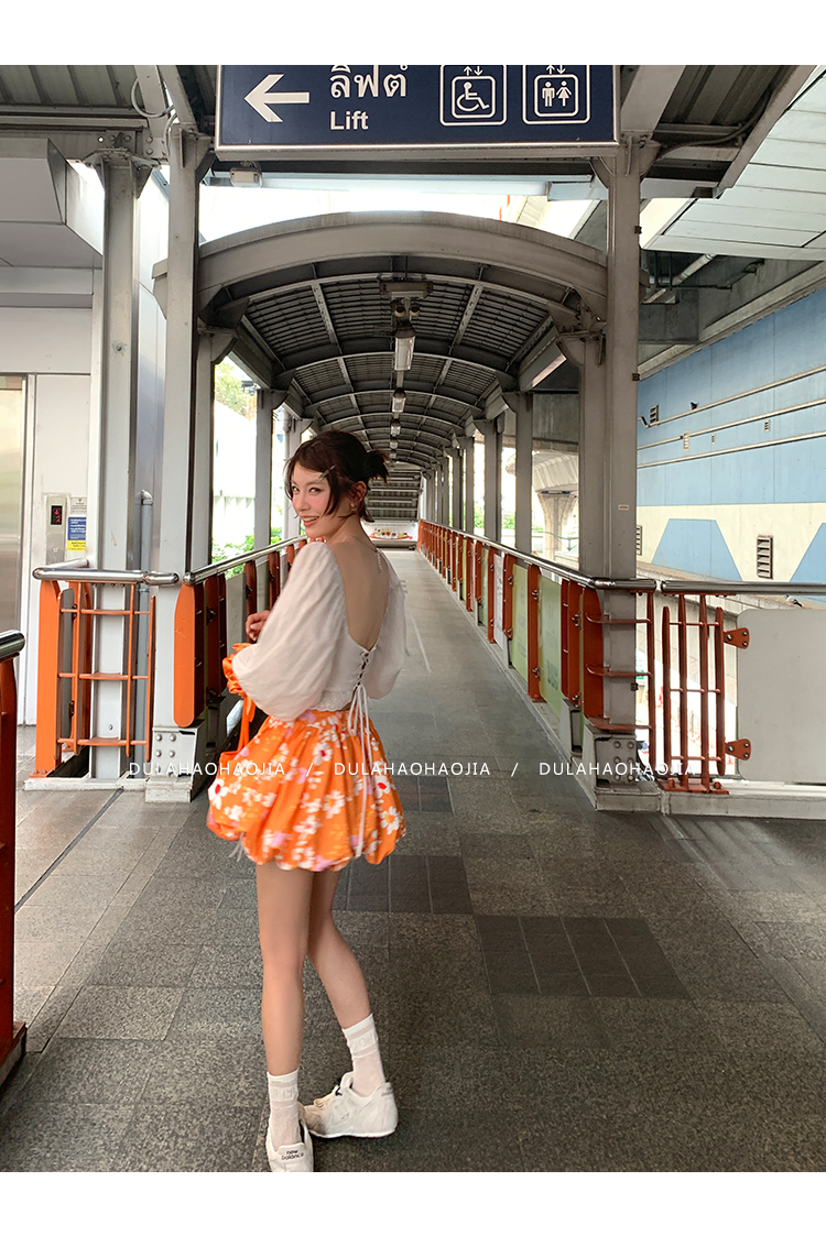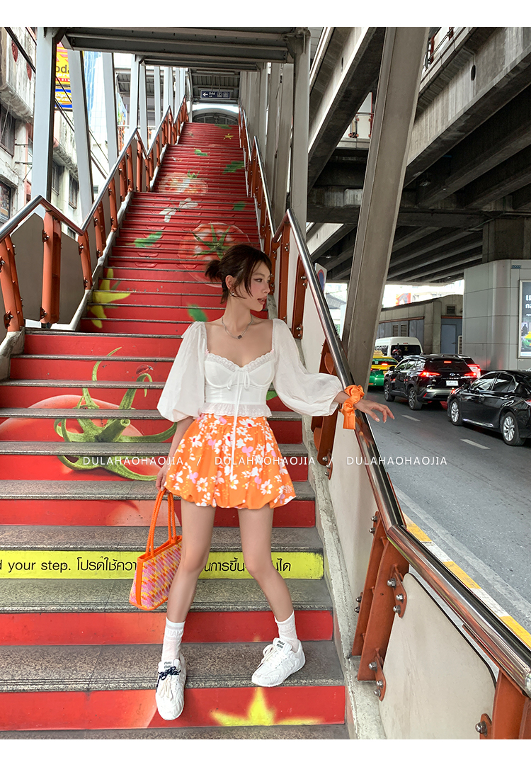 DULA French Fairy Lace-Edged Sleeve Short Shirt with Straps