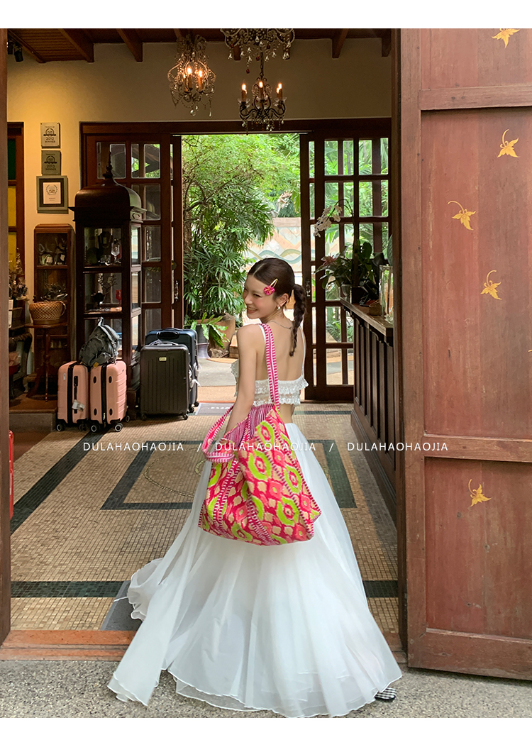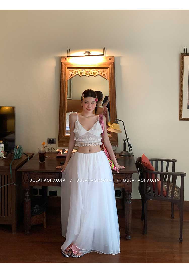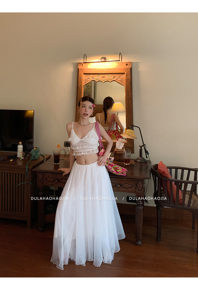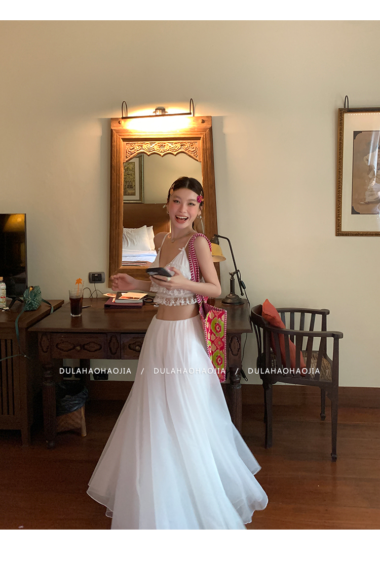 DULA Vacation Sensual Lace Strap + Fairy Chiffon Long Skirt