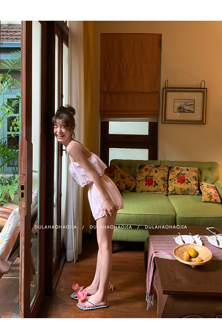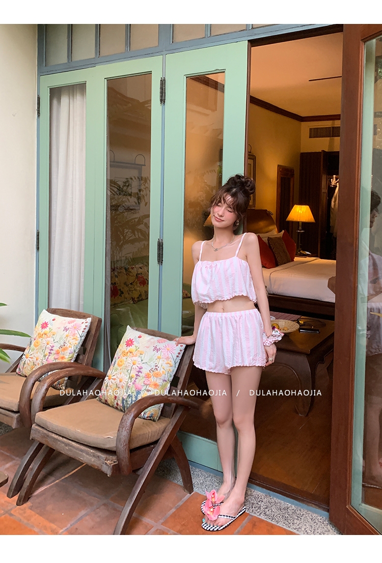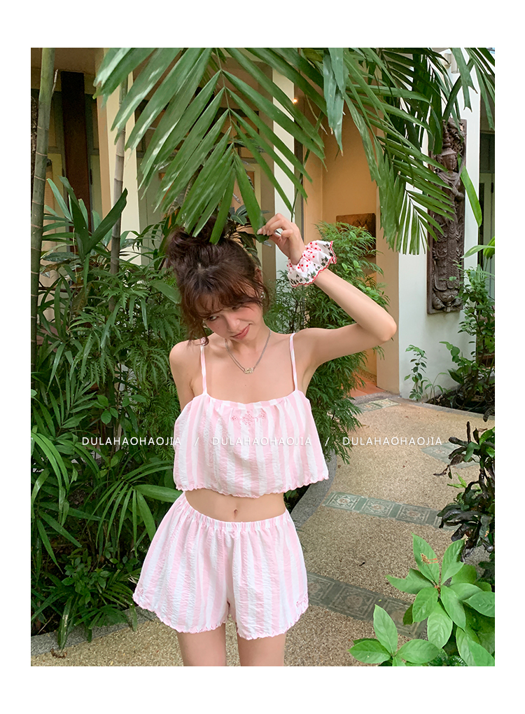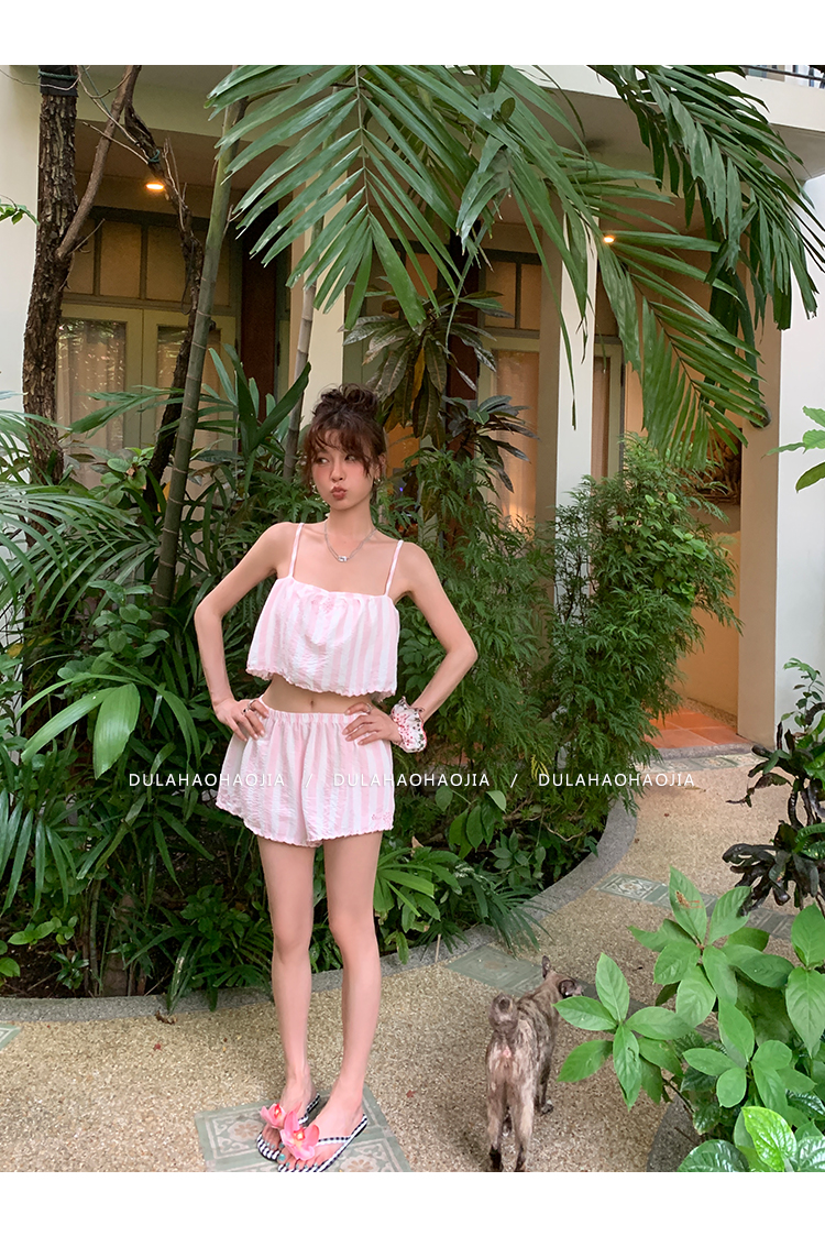 DULA Sweet Pink Stripe Strap Top + Shorts Set