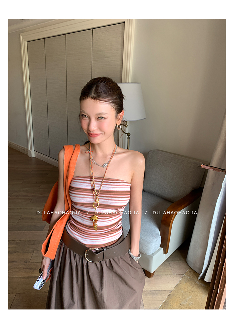 DULA Romantic Sister Striped Fake Two-Piece Bra Dress