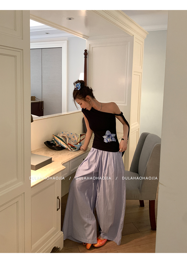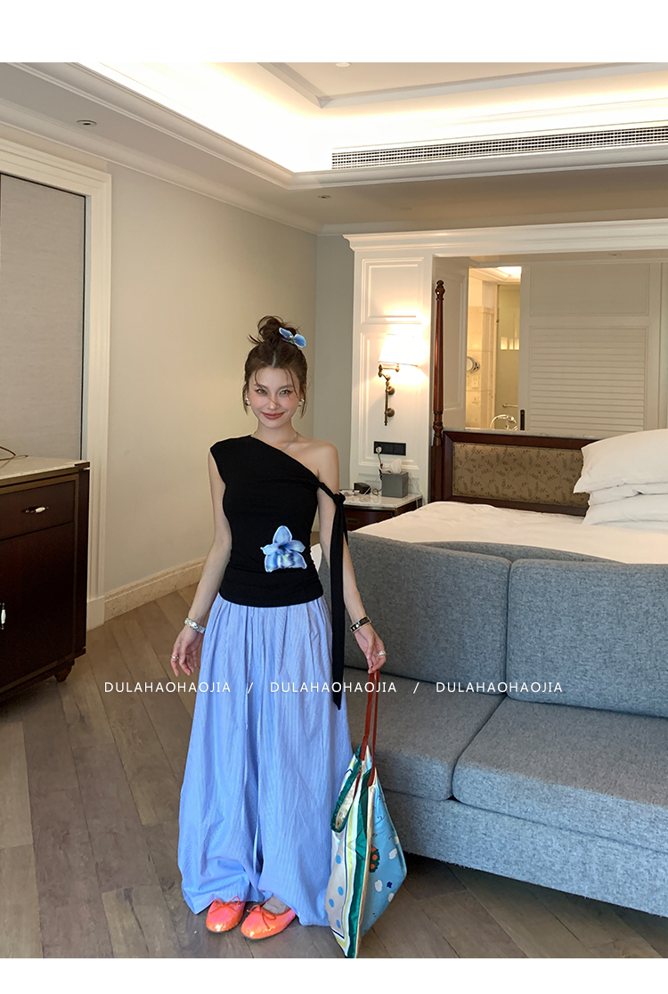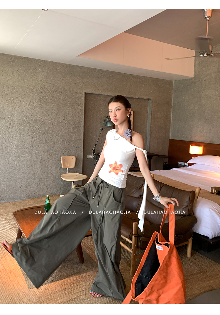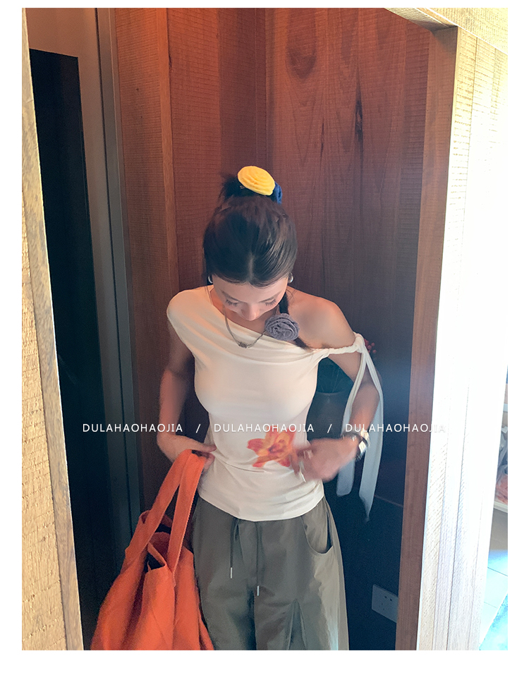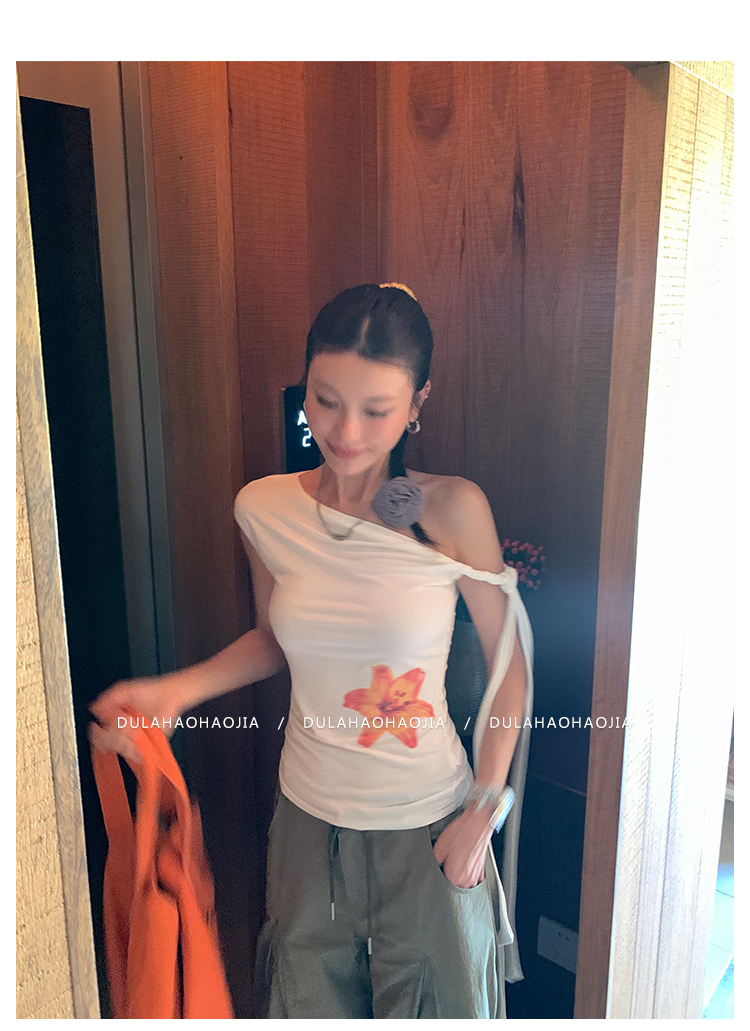 DULA Bangkok Flower Printed Irregular Shoulder Strap Top