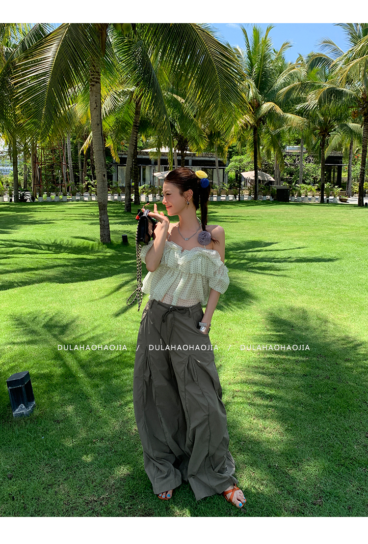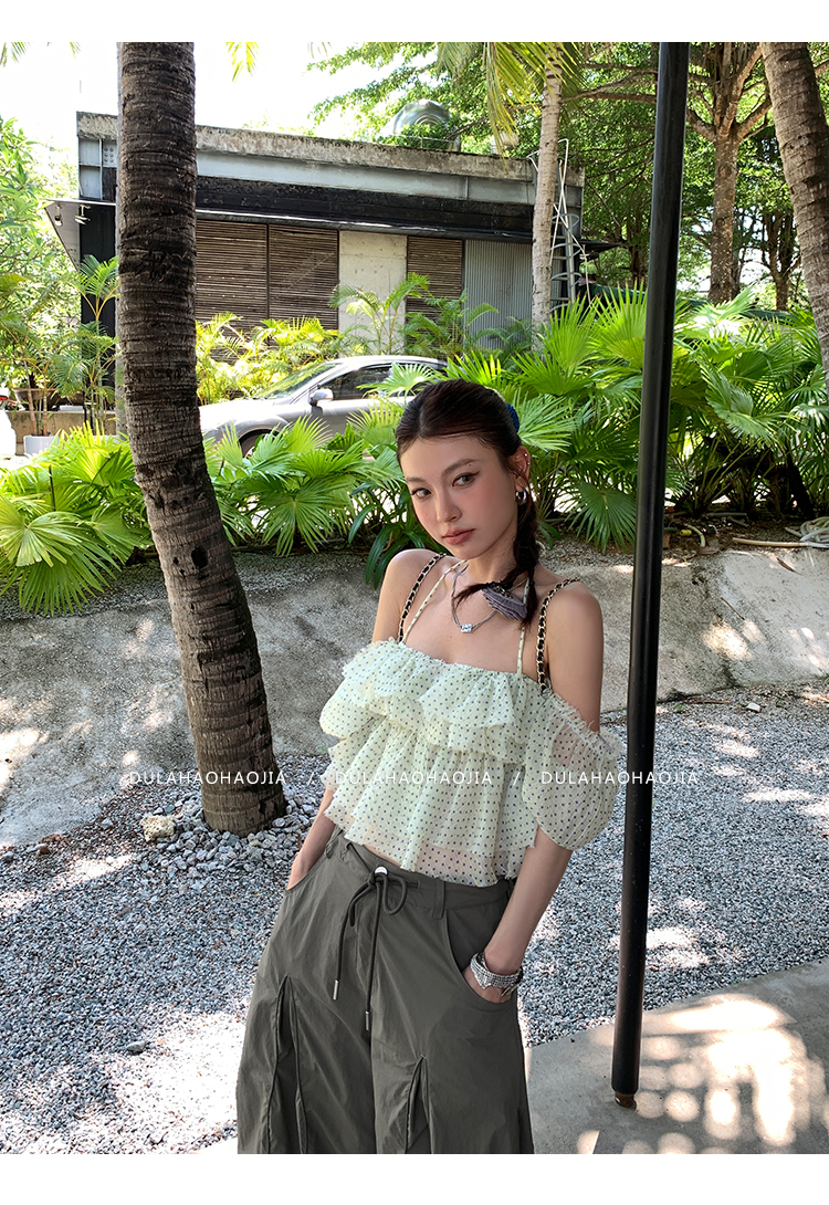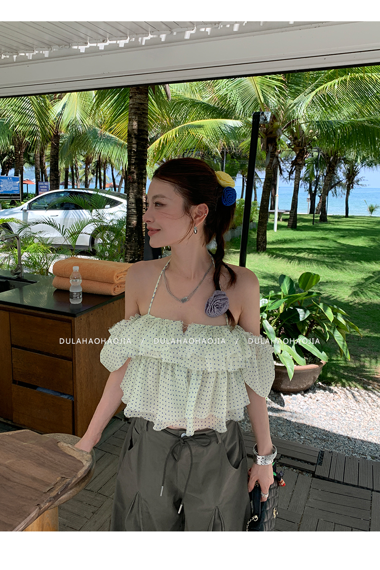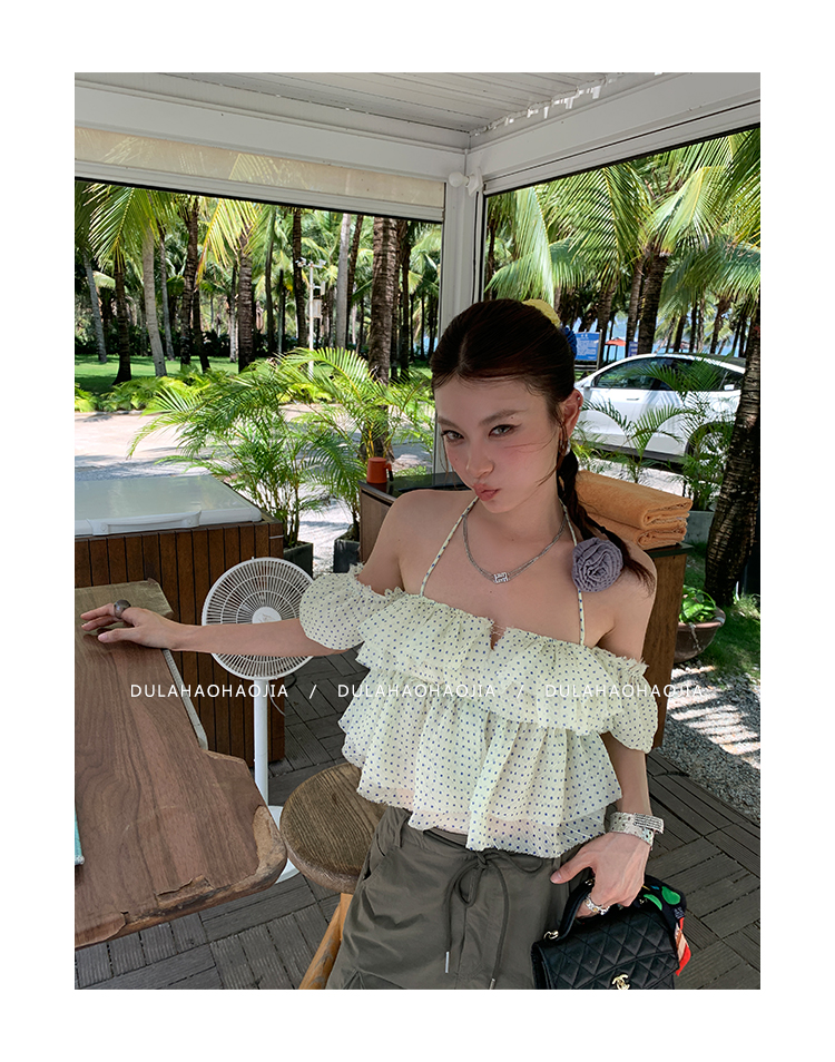 DULA Island holiday wavepoint shoulder-wrapped short chiffon shirt