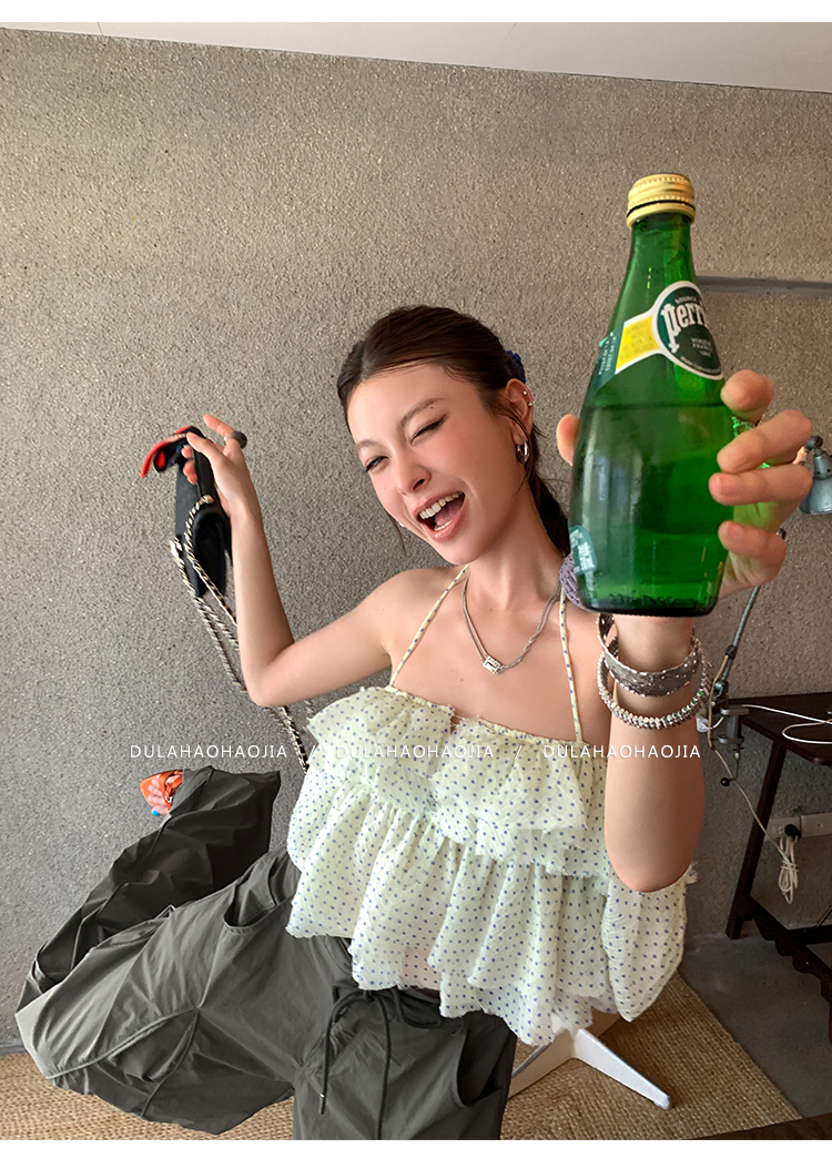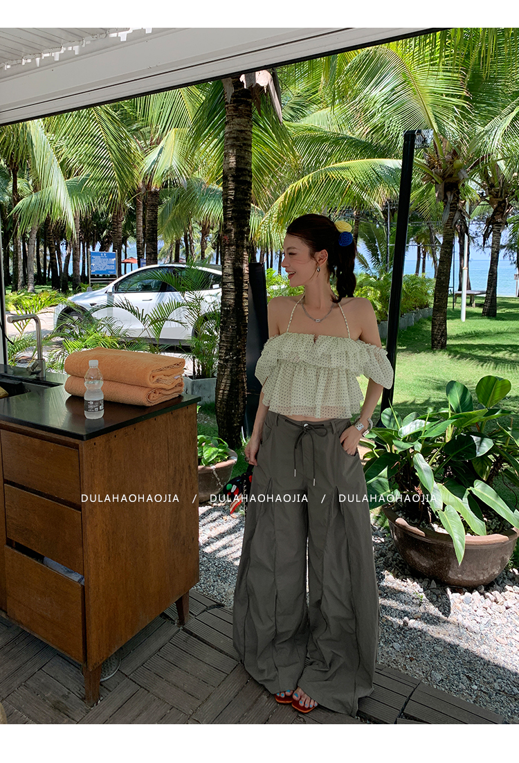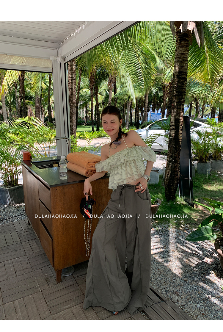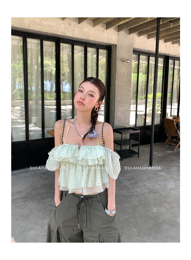 DULA Island holiday wavepoint shoulder-wrapped short chiffon shirt