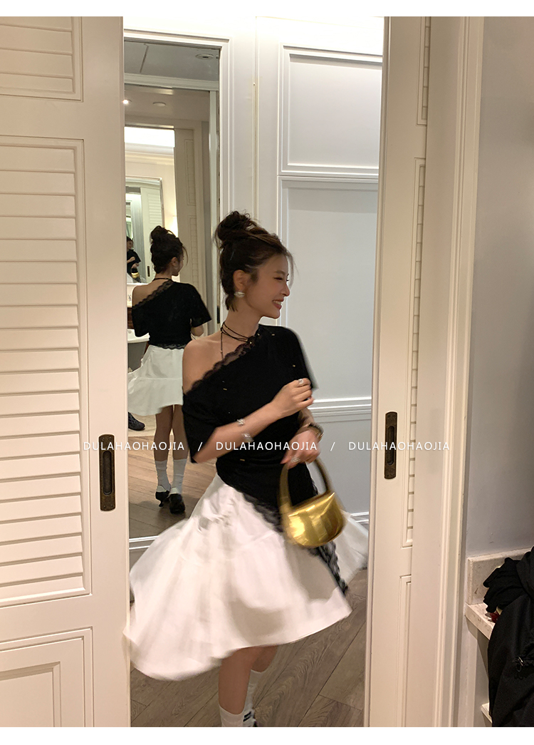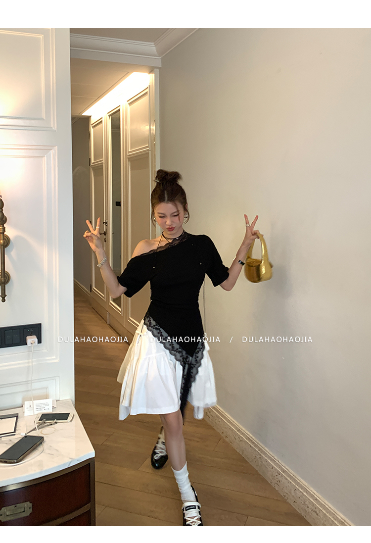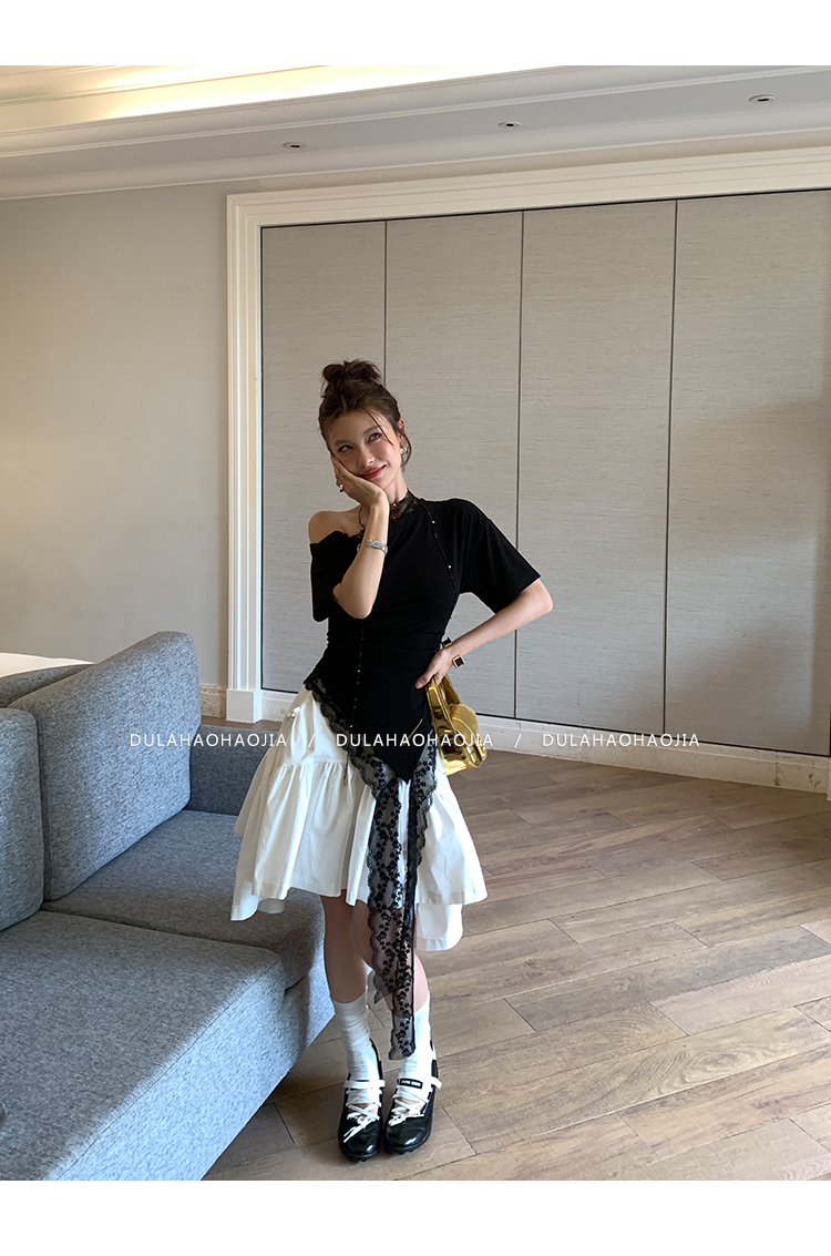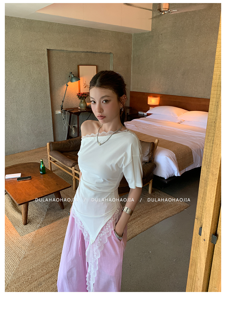 DULA Favorite Lace Sewn Shoulder Short Sleeve T-Shirt