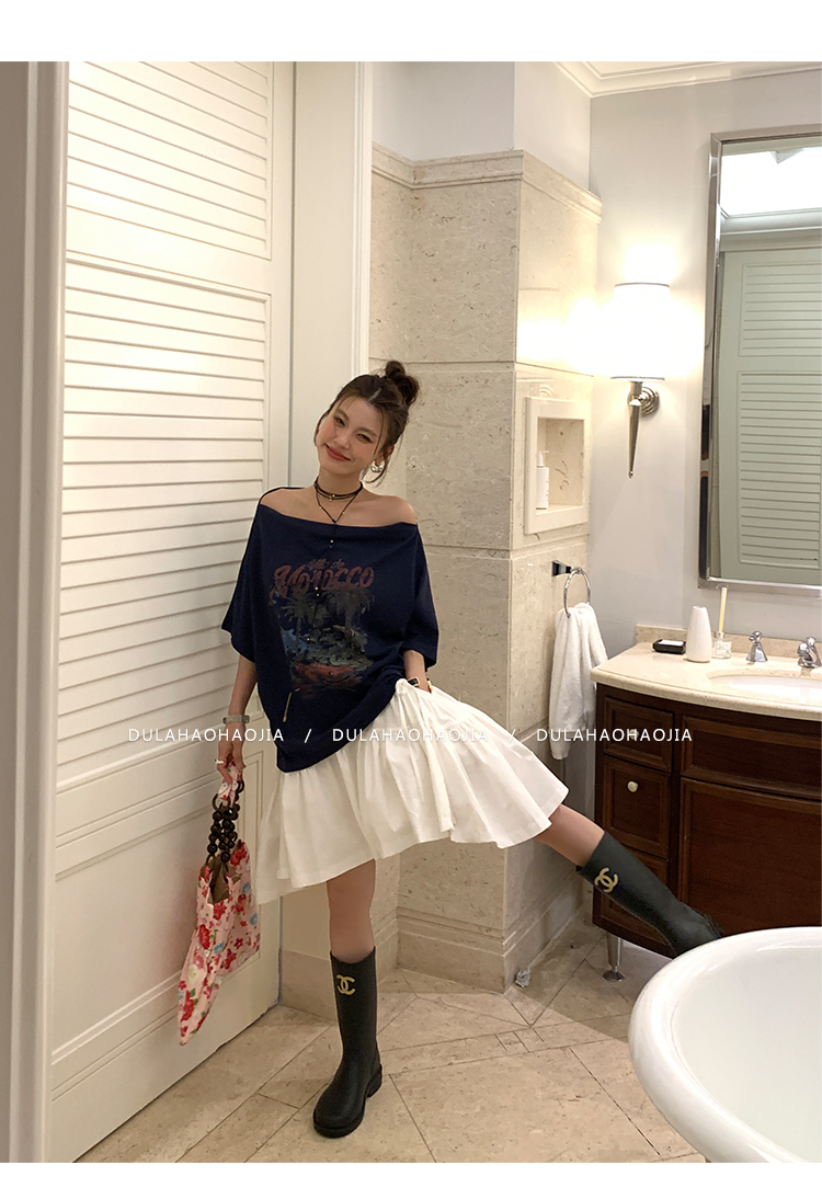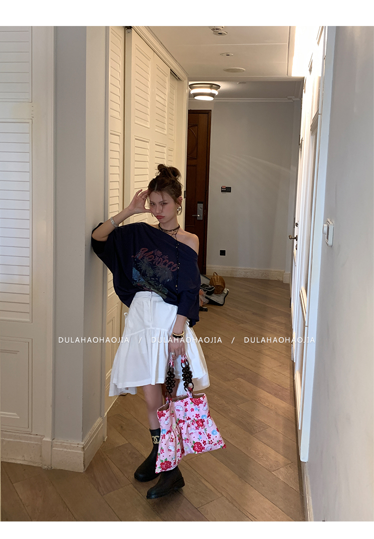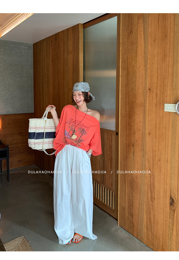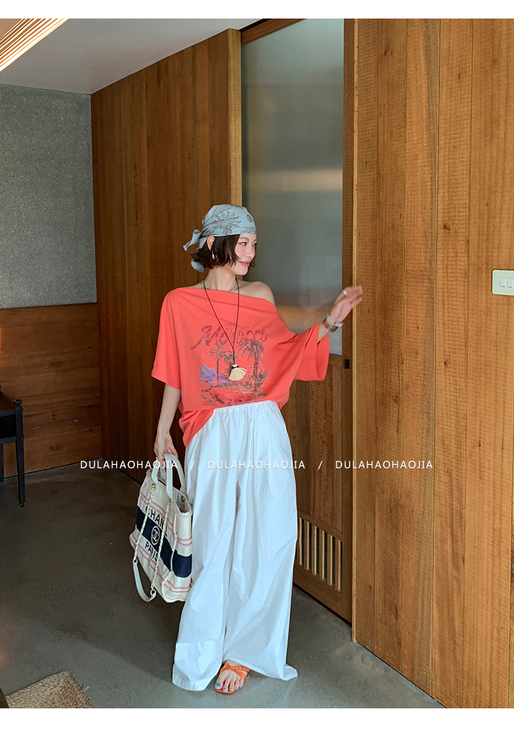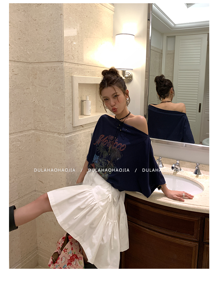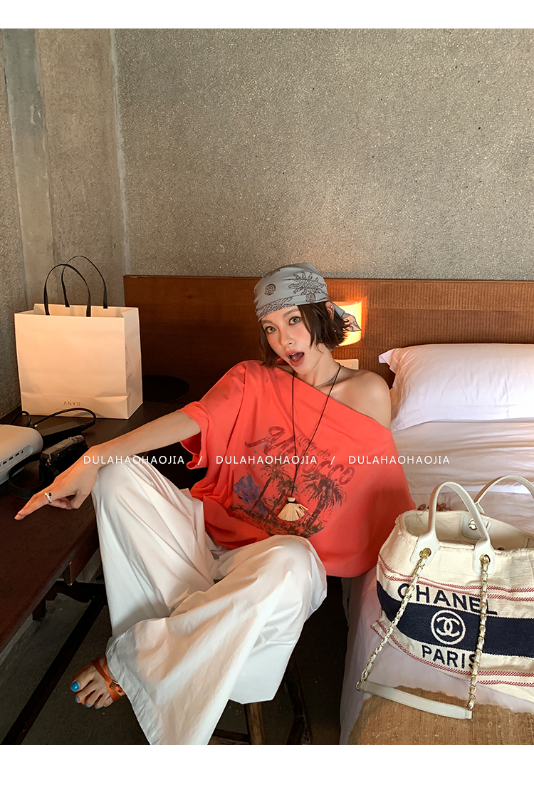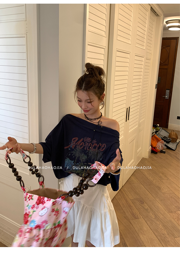DULA Summer Joy One-Neck Printed Shoulder Short Sleeve T-Shirt