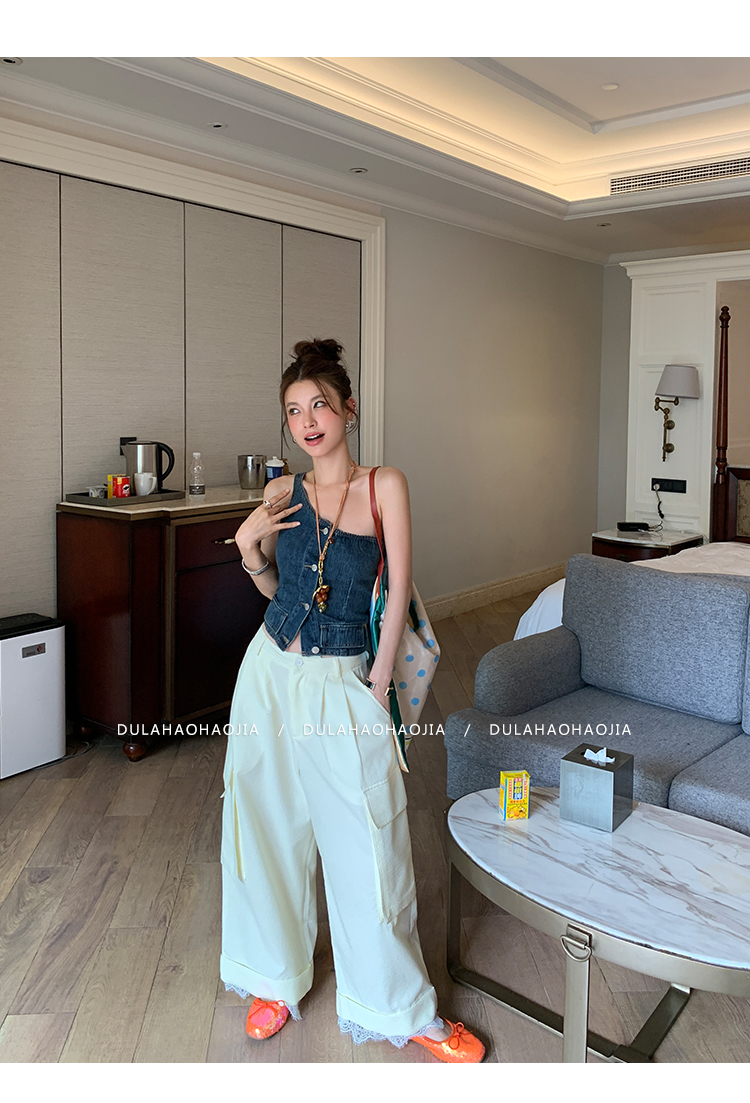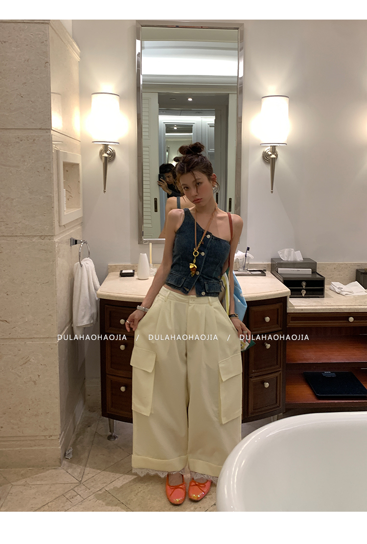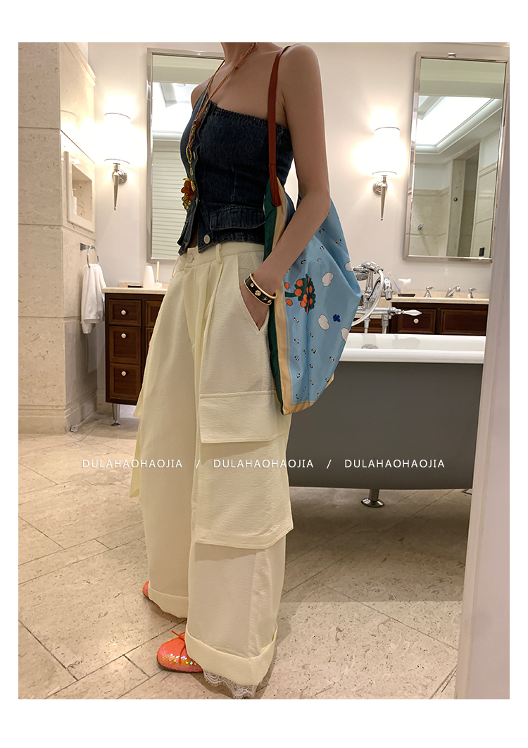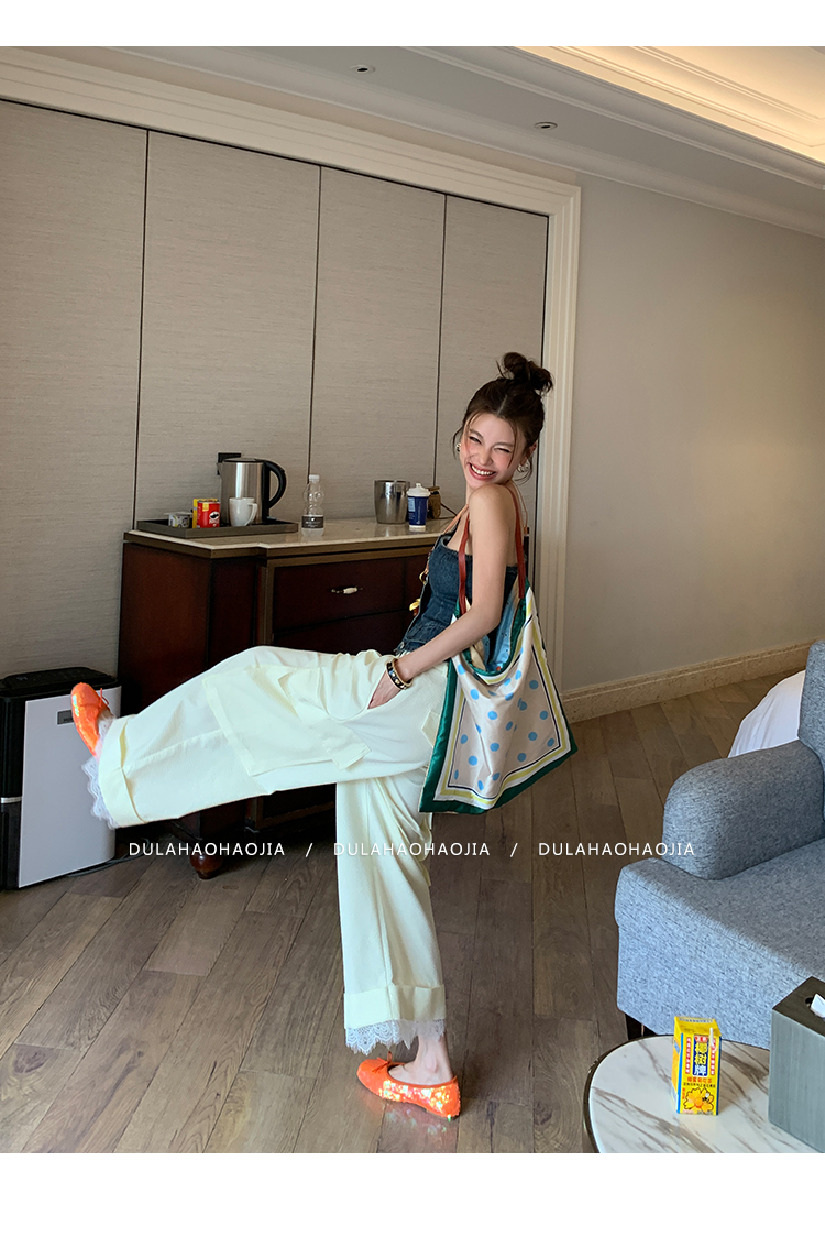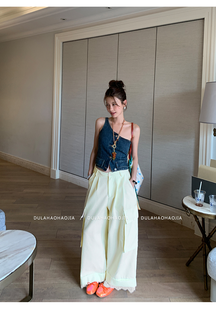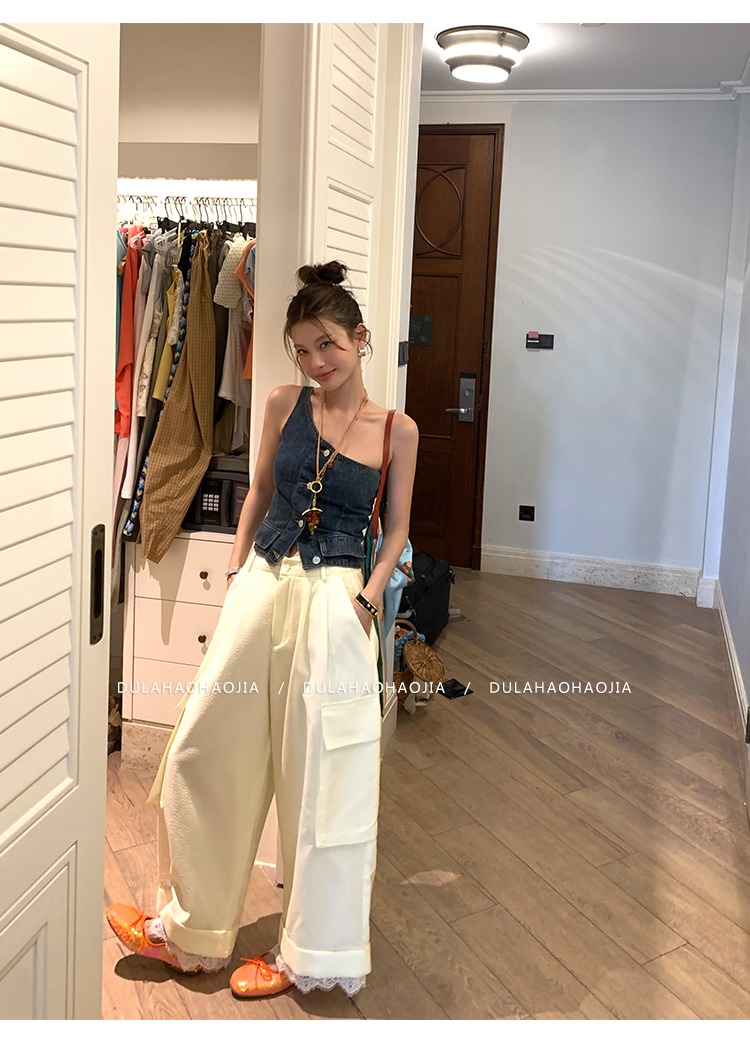 DULA Easy Summer Lace Edge Wide Leg Casual Pants