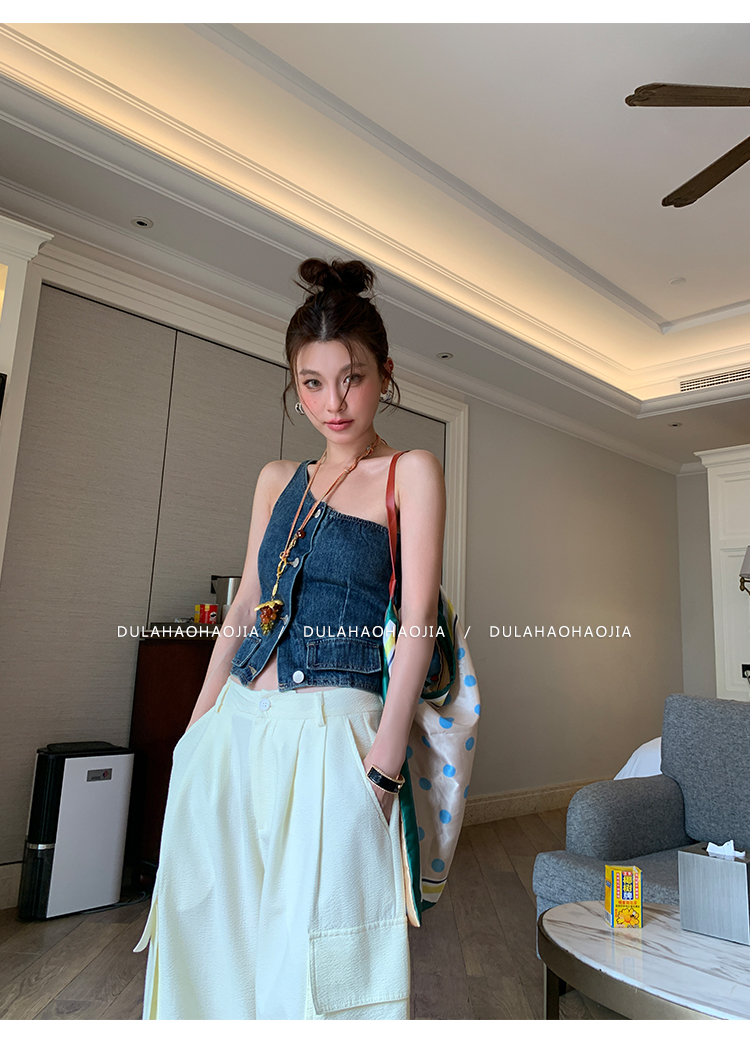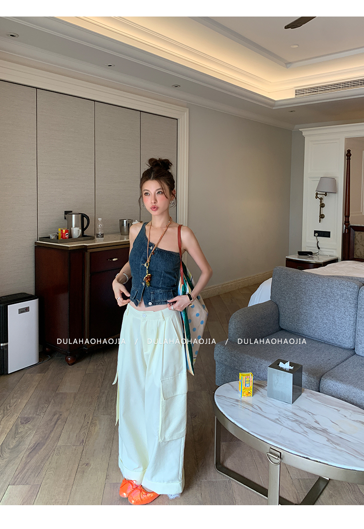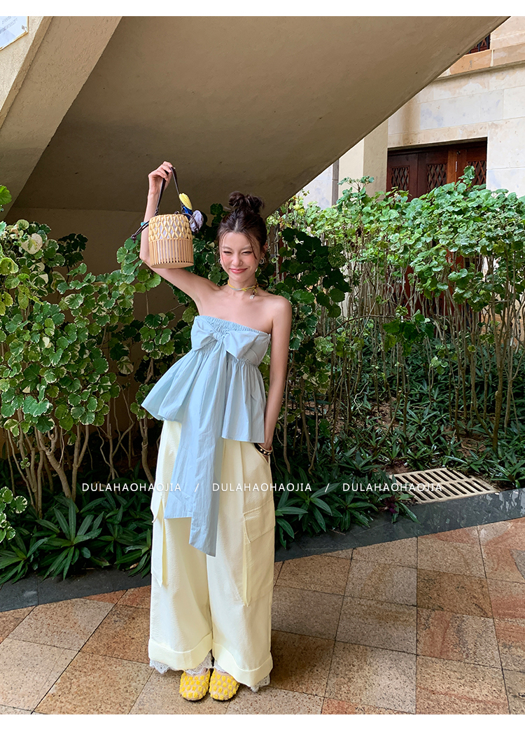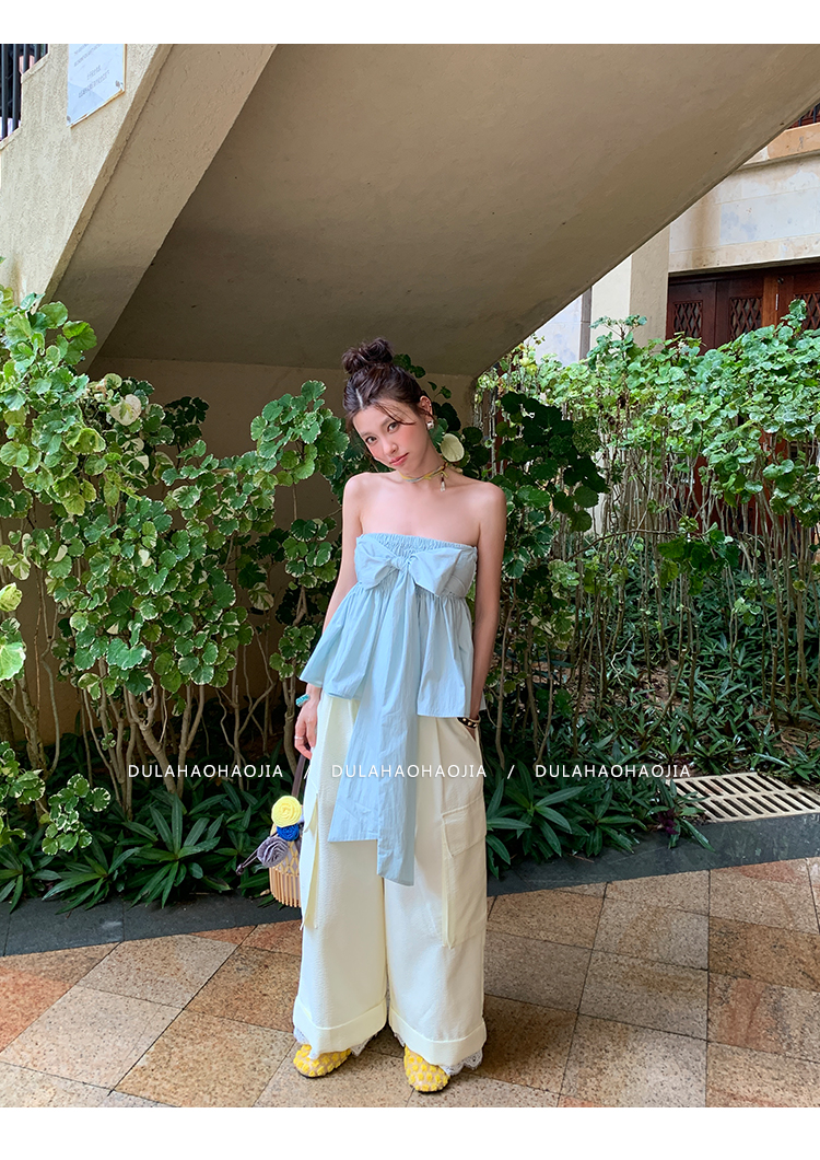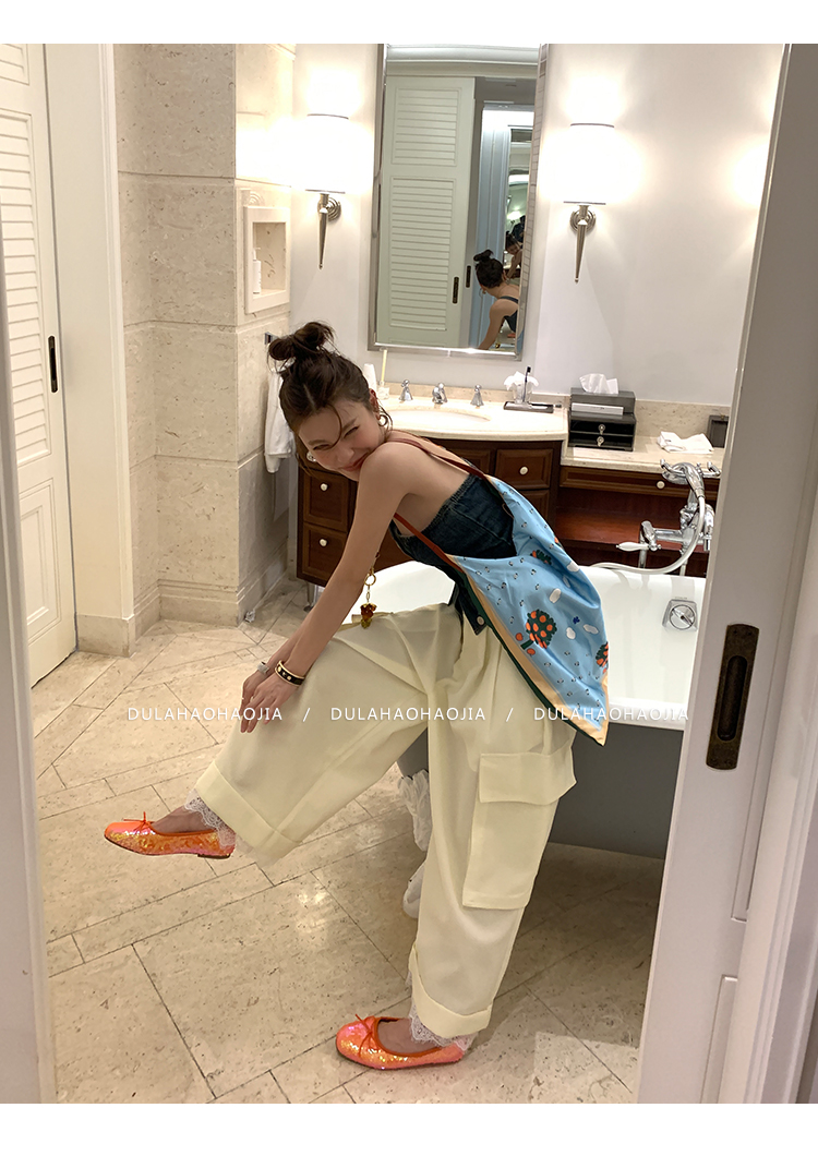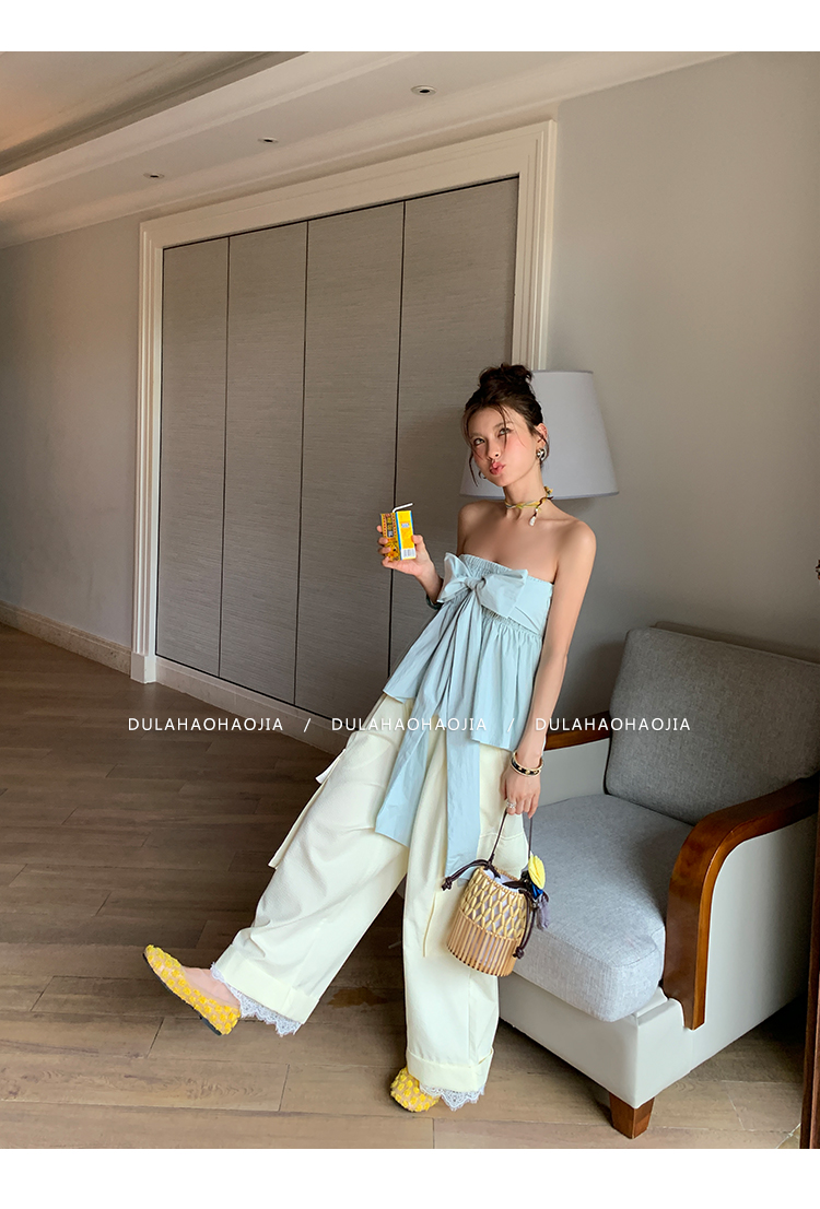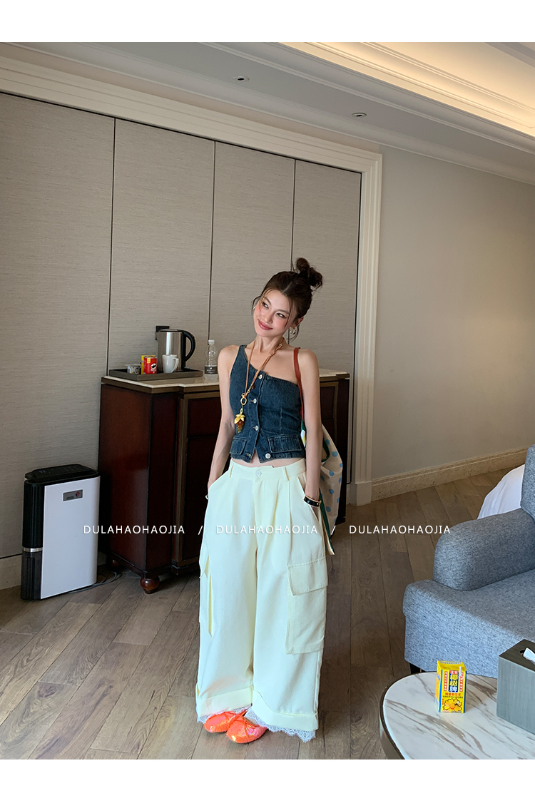 DULA Easy Summer Lace Edge Wide Leg Casual Pants