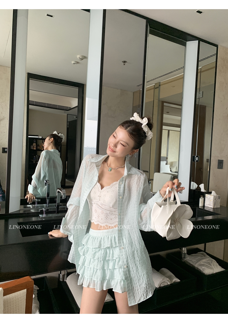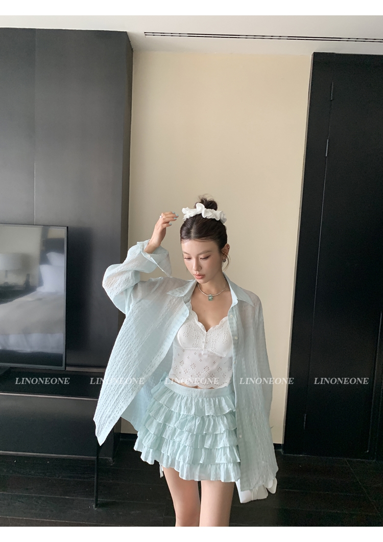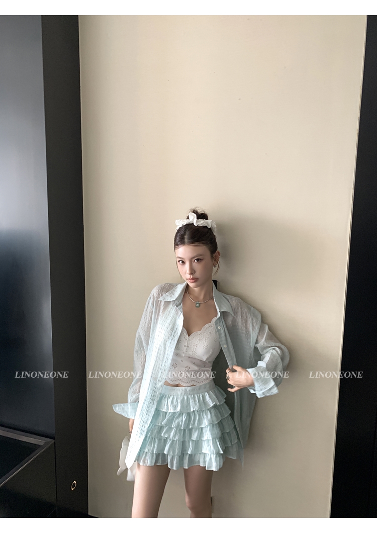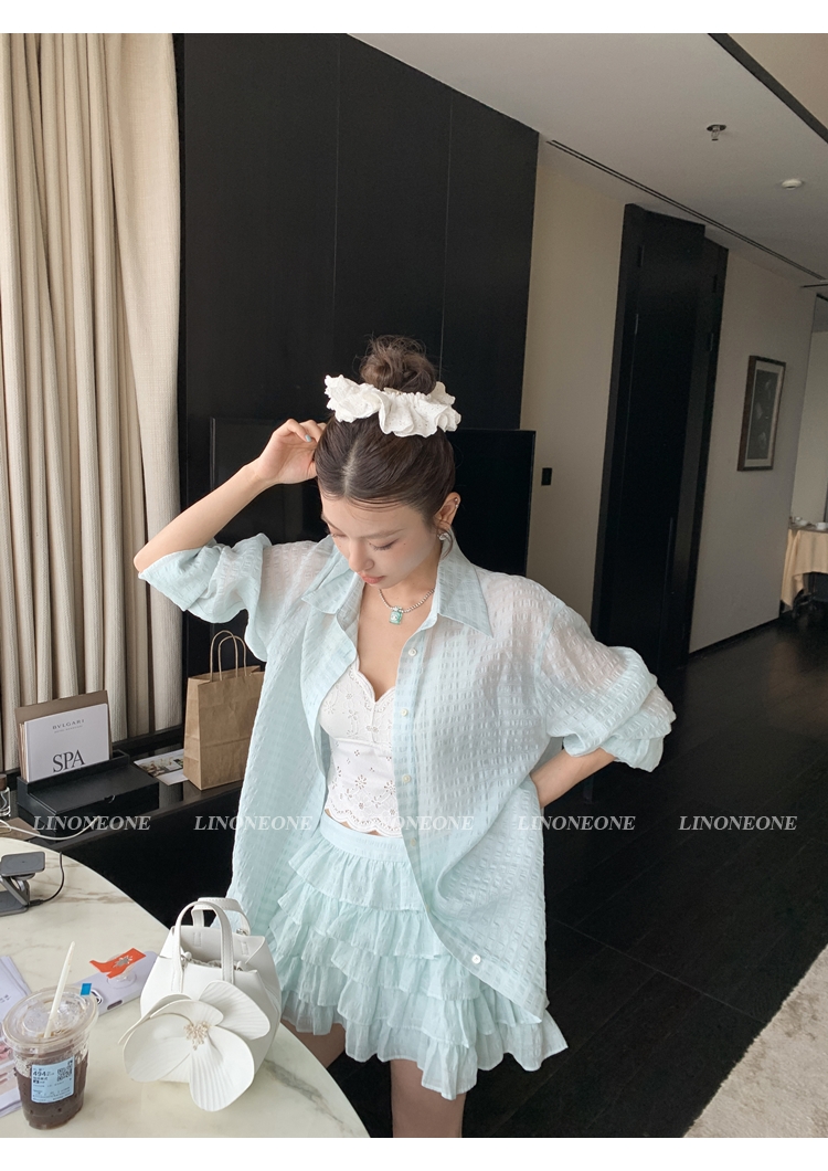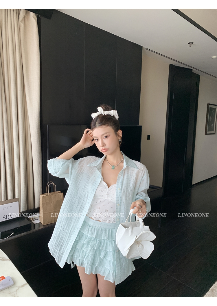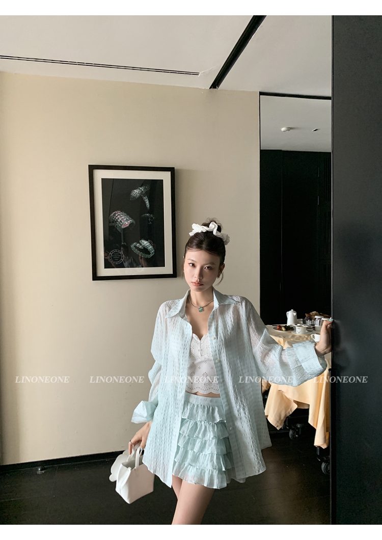LIN Cloud Sea Salt Lyocell Bubble Texture Loose Shirt Ballet Skirt Pants Set