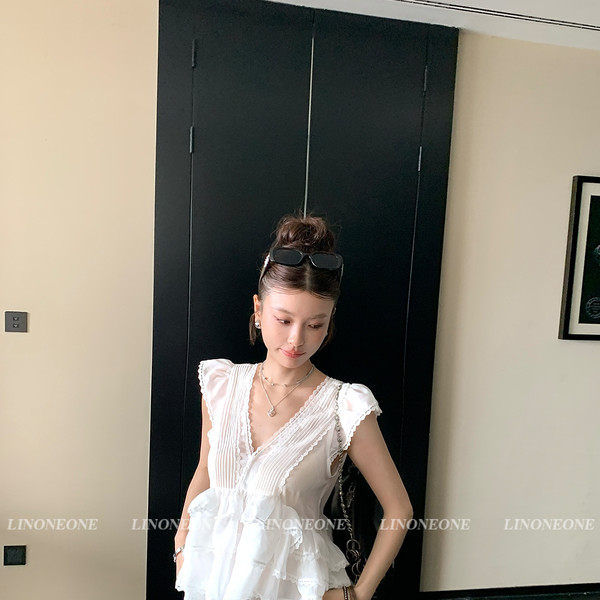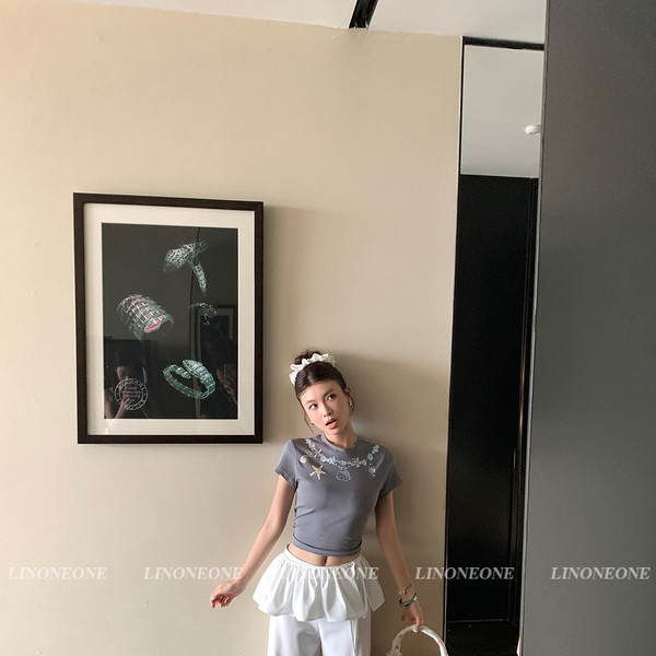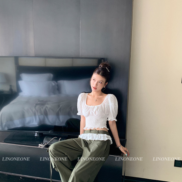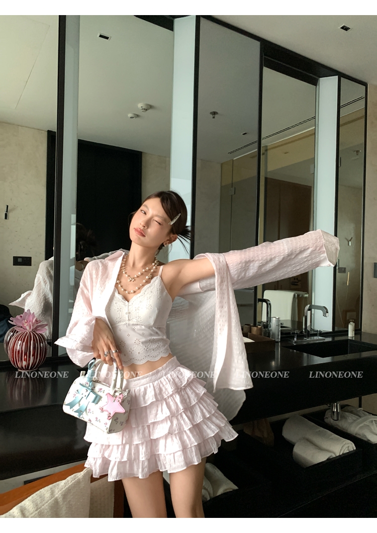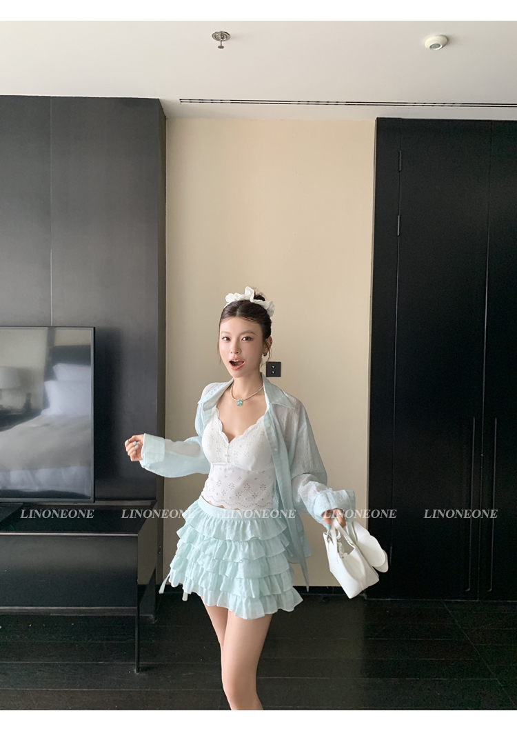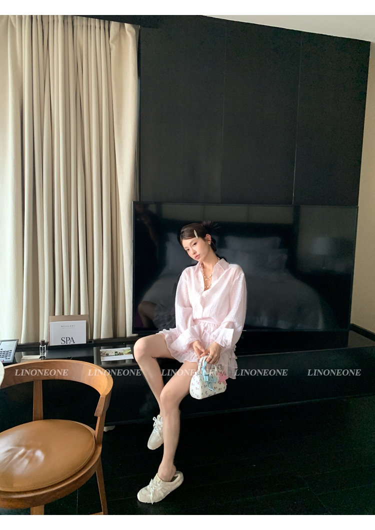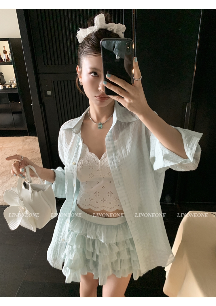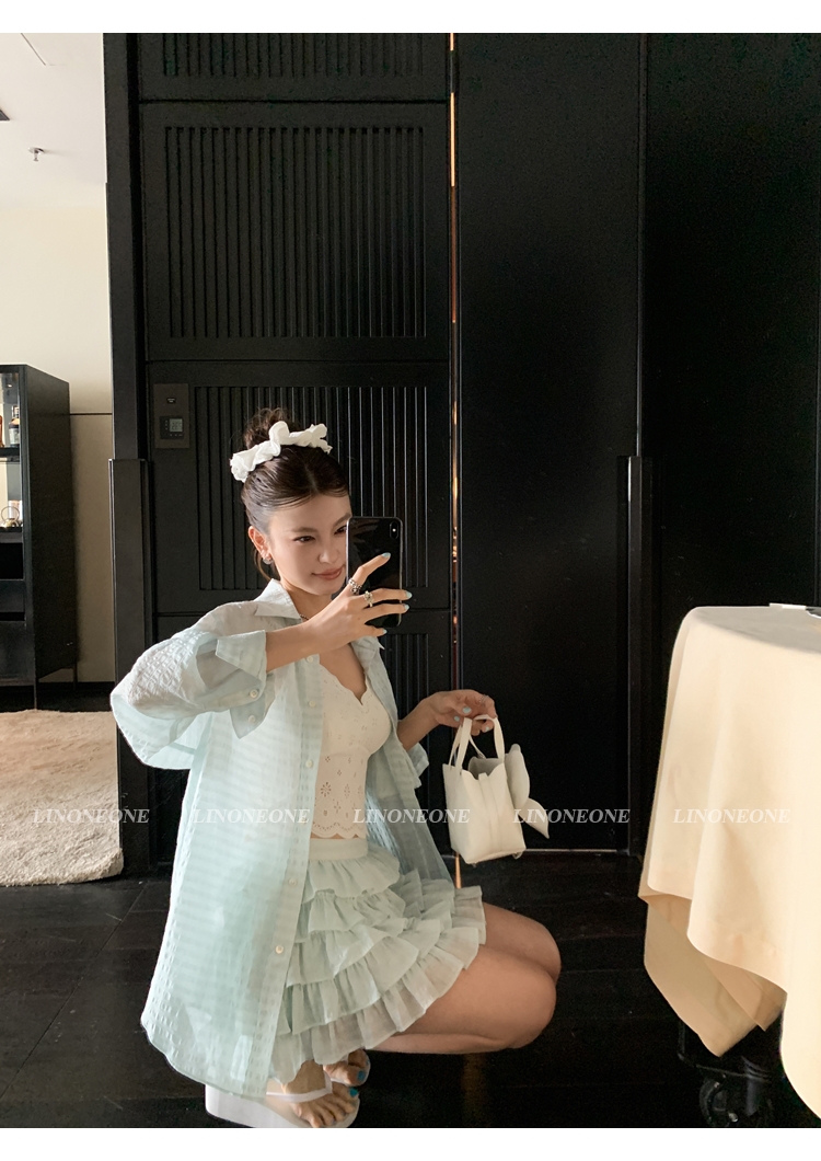 LIN Cloud Sea Salt Lyocell Bubble Texture Loose Shirt Ballet Skirt Pants Set