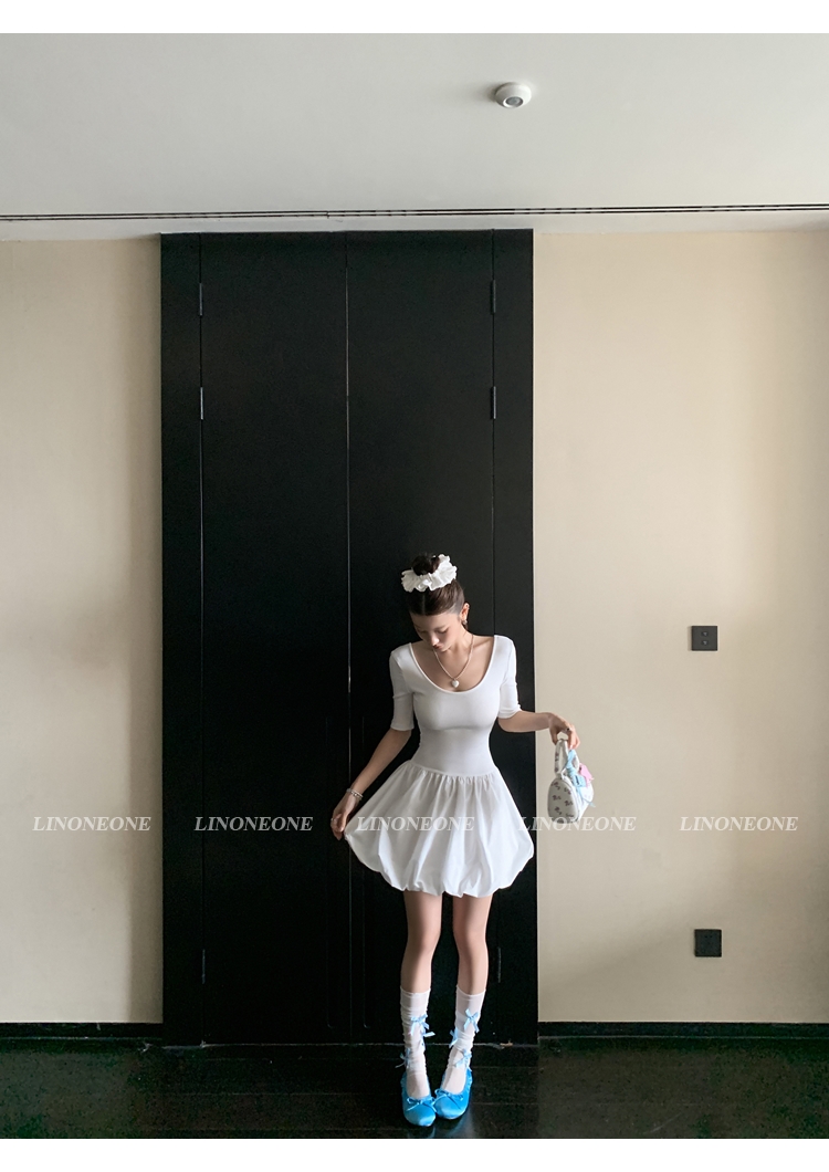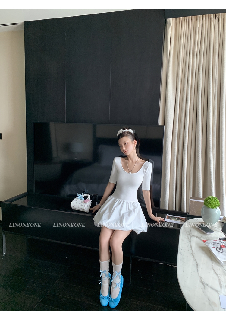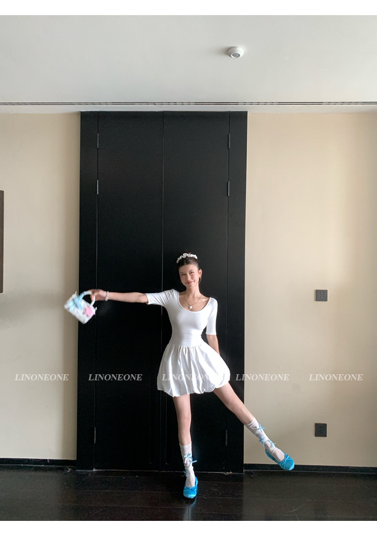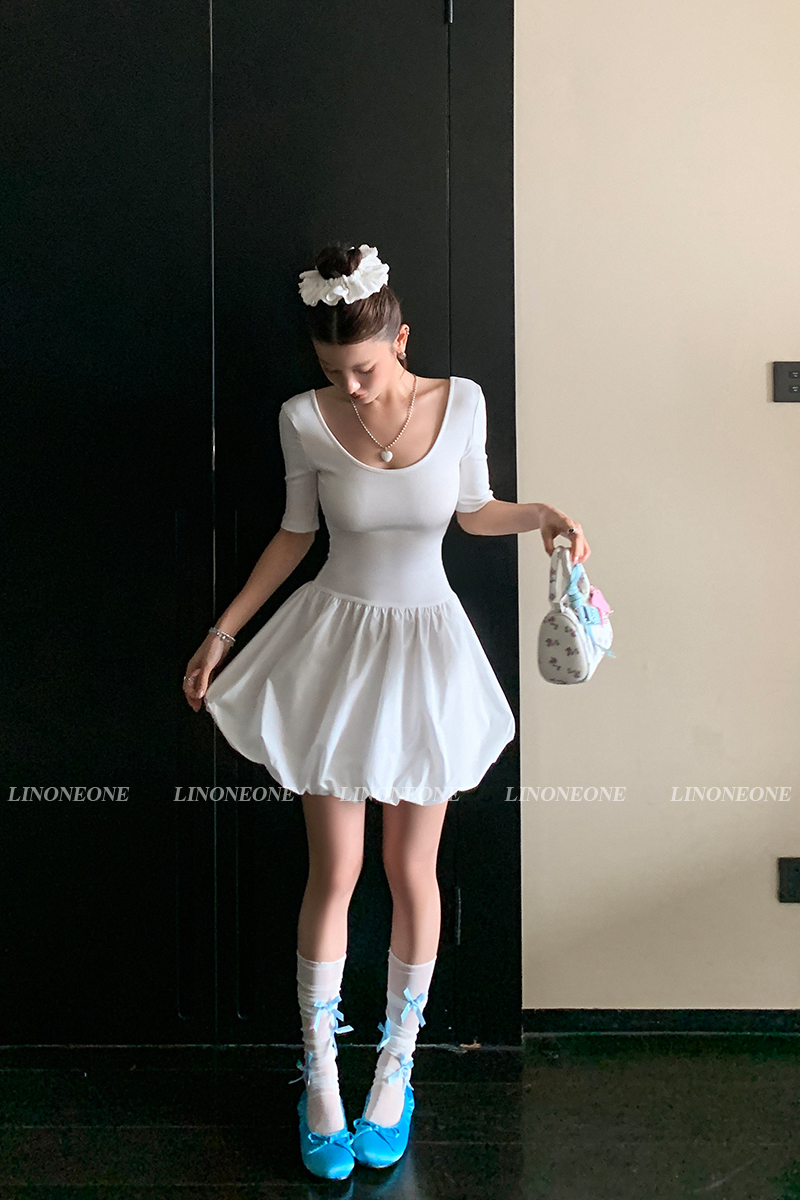 LIN Ballet Cloud Mid-Sleeve Slim Fit Tutu Dress