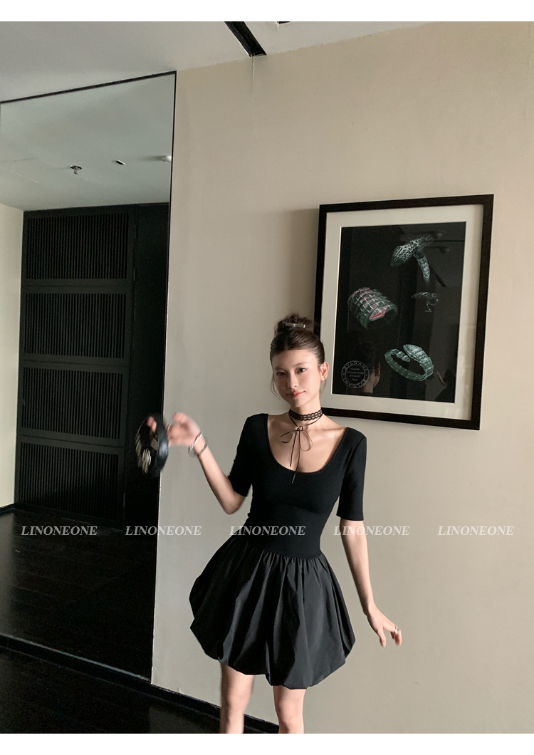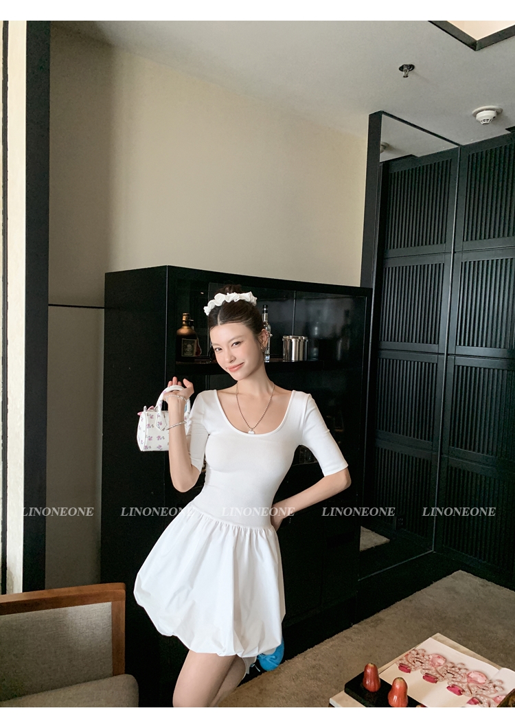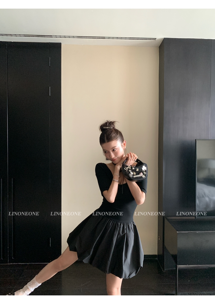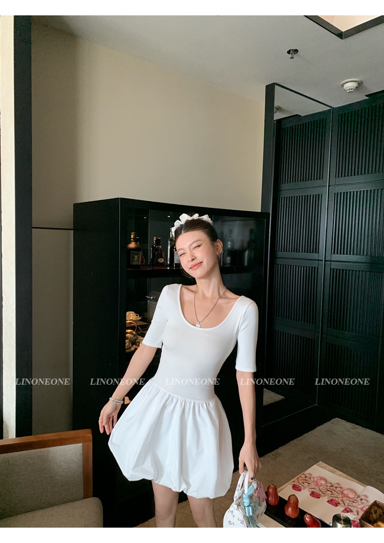 LIN Ballet Cloud Mid-Sleeve Slim Fit Tutu Dress