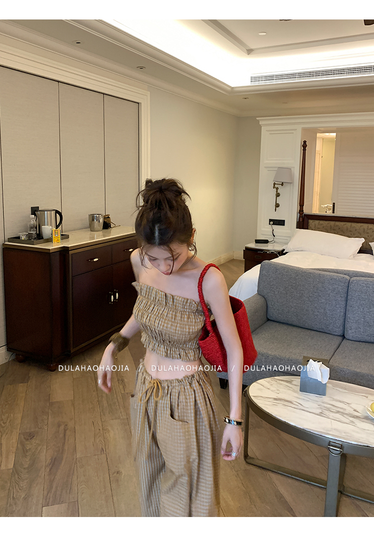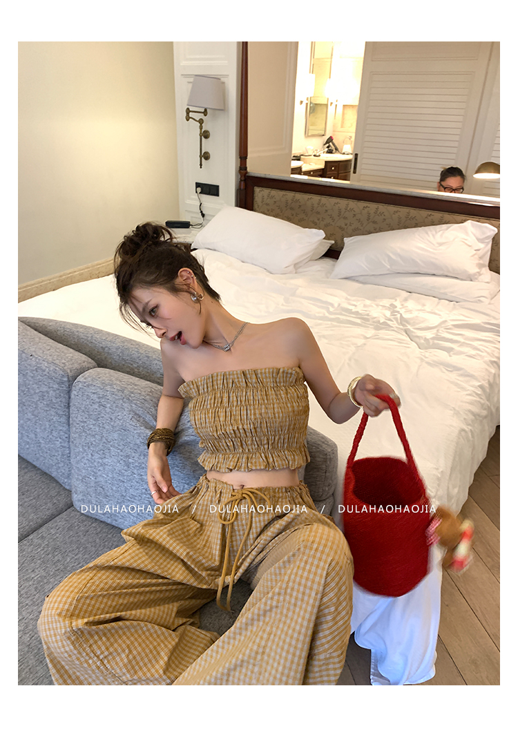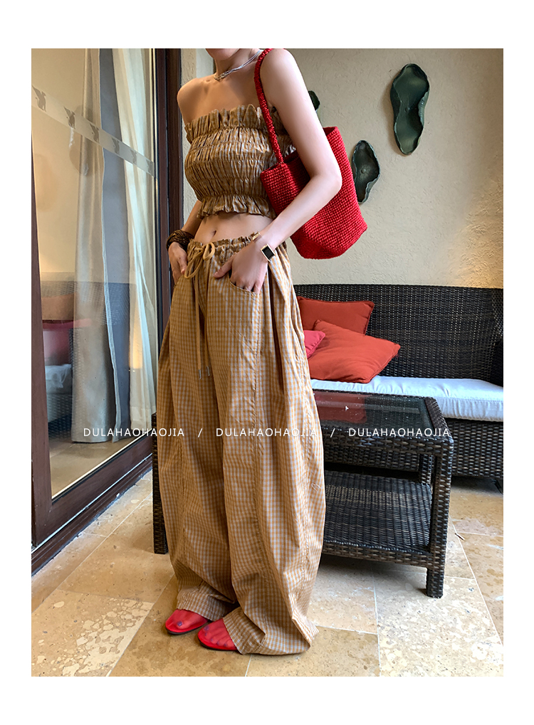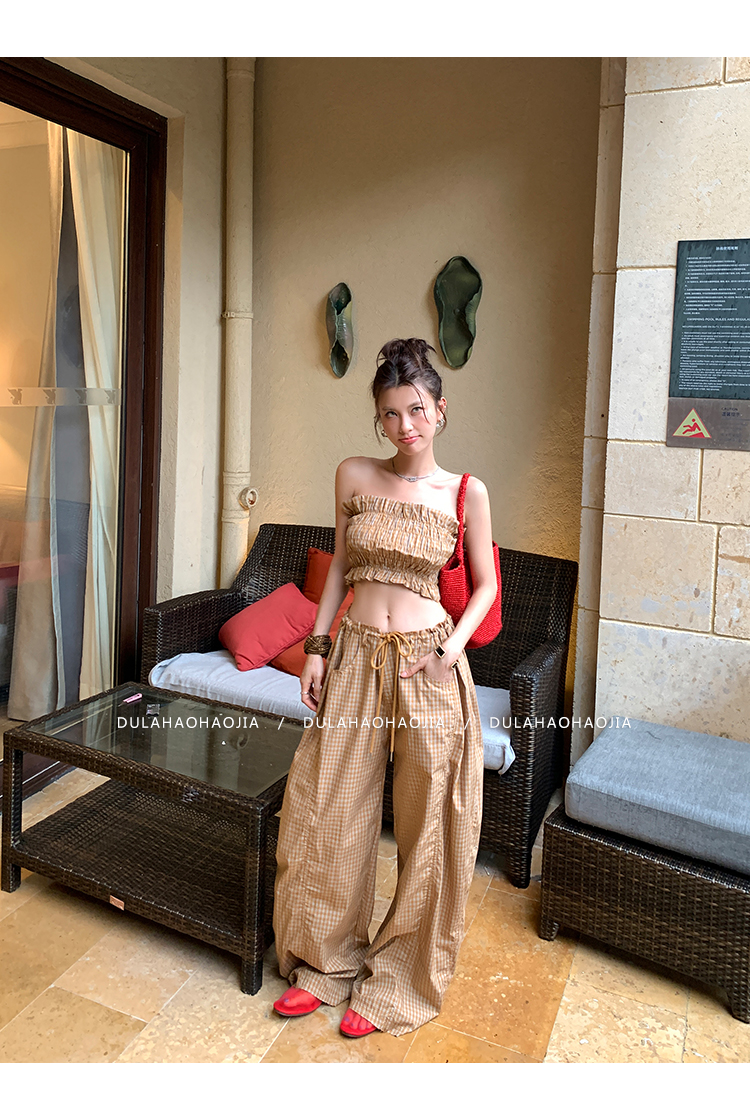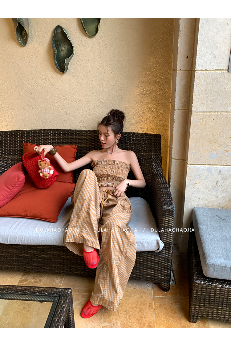 DULA Weekend Plaid Short Top + Wide Leg Pants Set