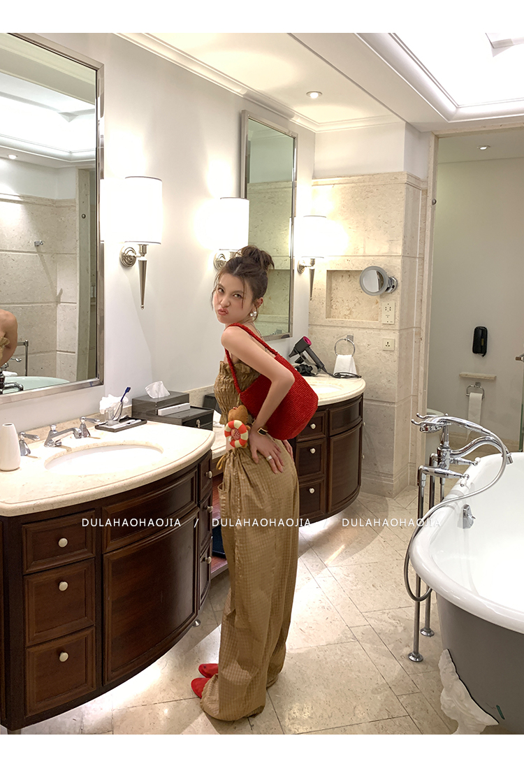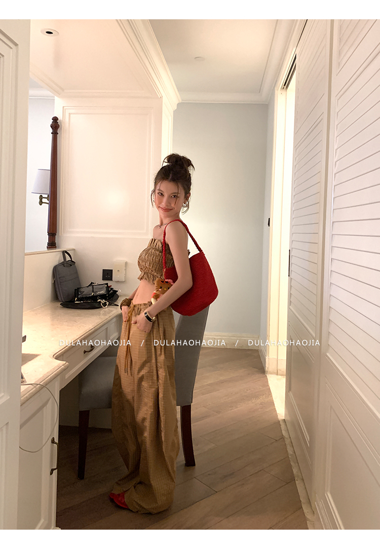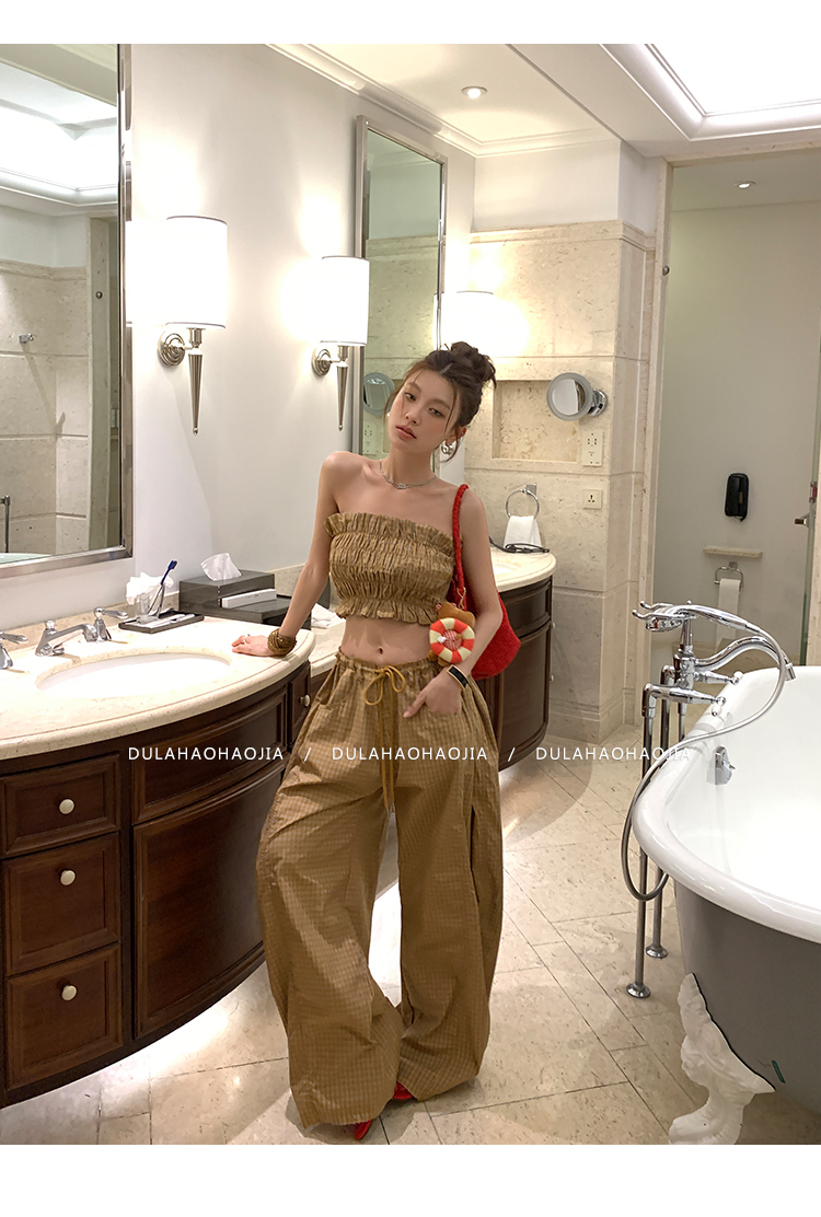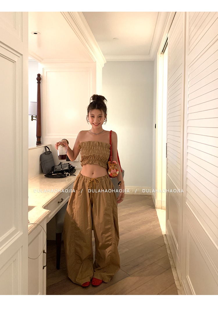 DULA Weekend Plaid Short Top + Wide Leg Pants Set