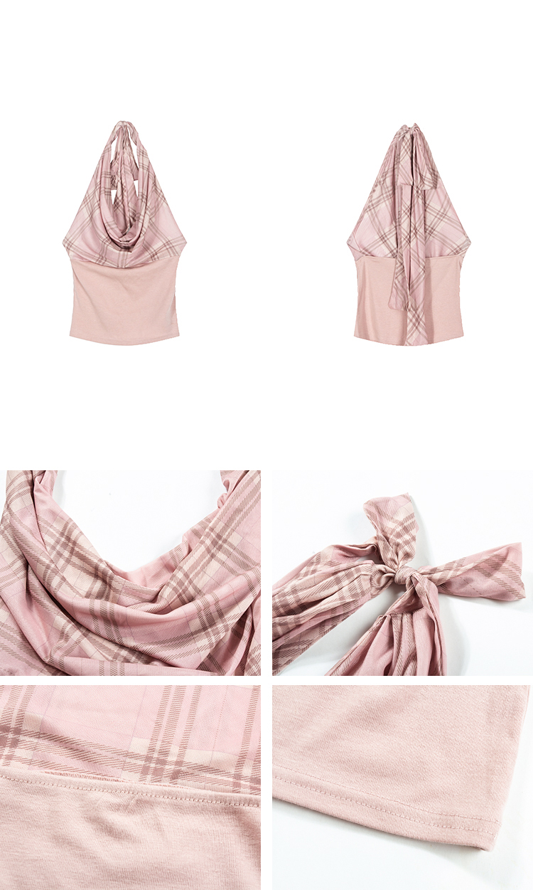 DULA Heartbeat Pink Check Collar Backless Tank Top