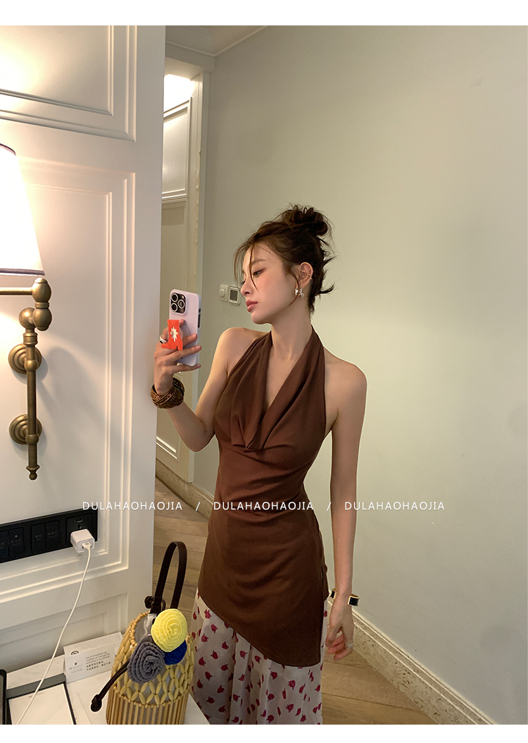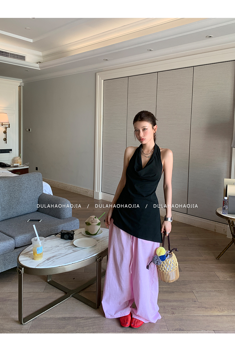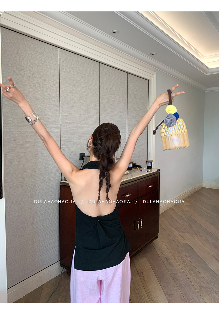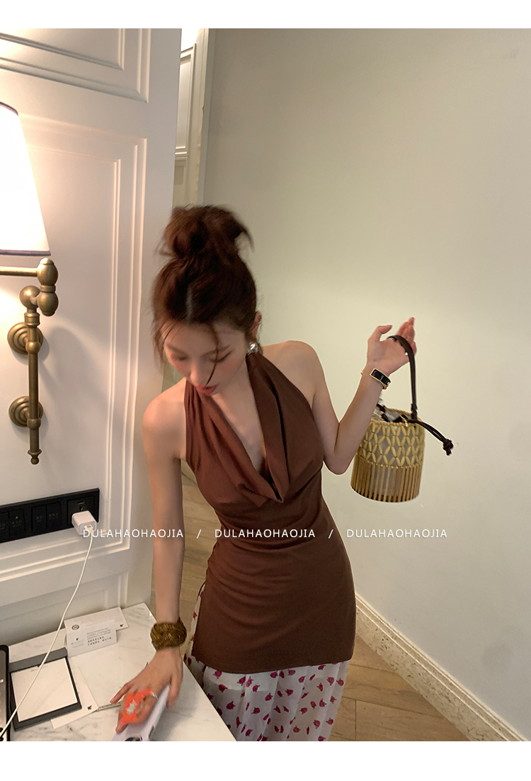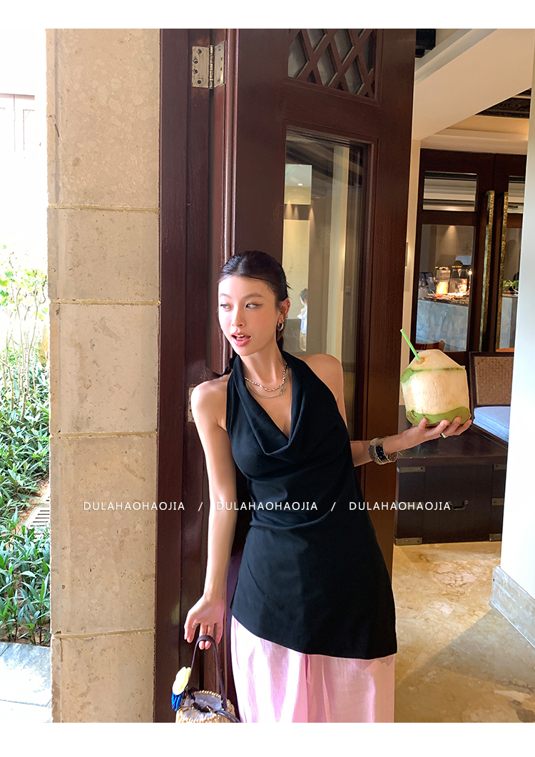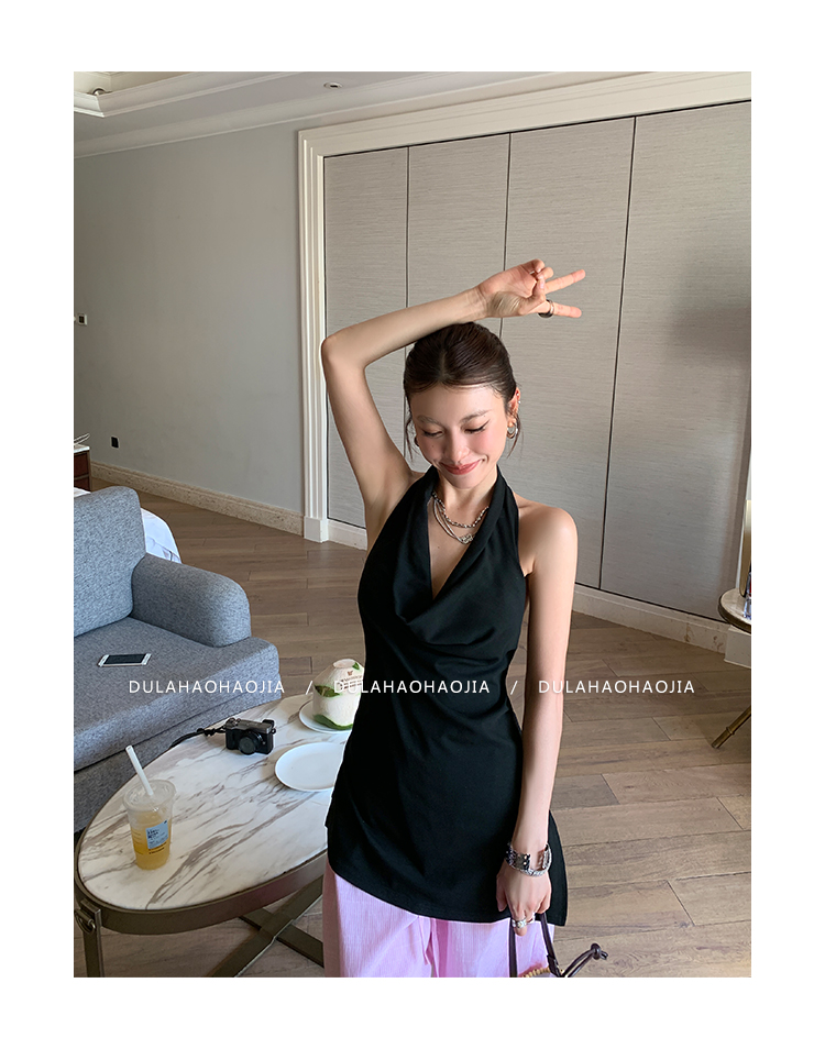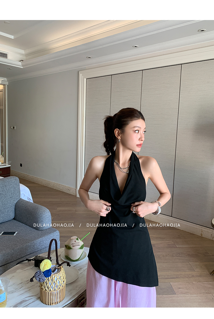 DULA Breathing Hanging Neck Collar Open-Forked Tank Top