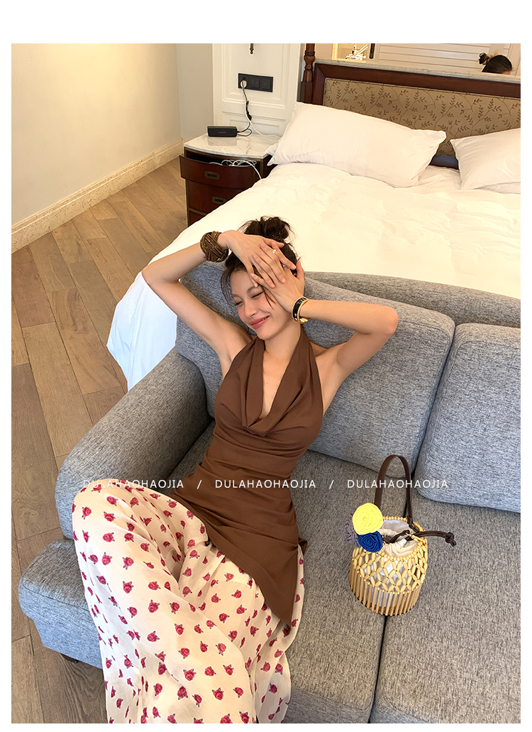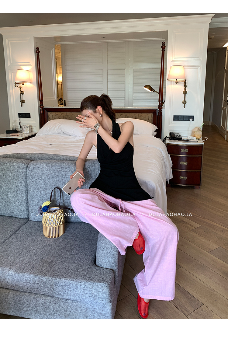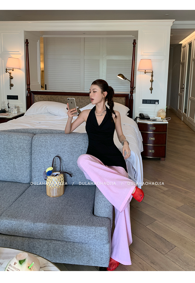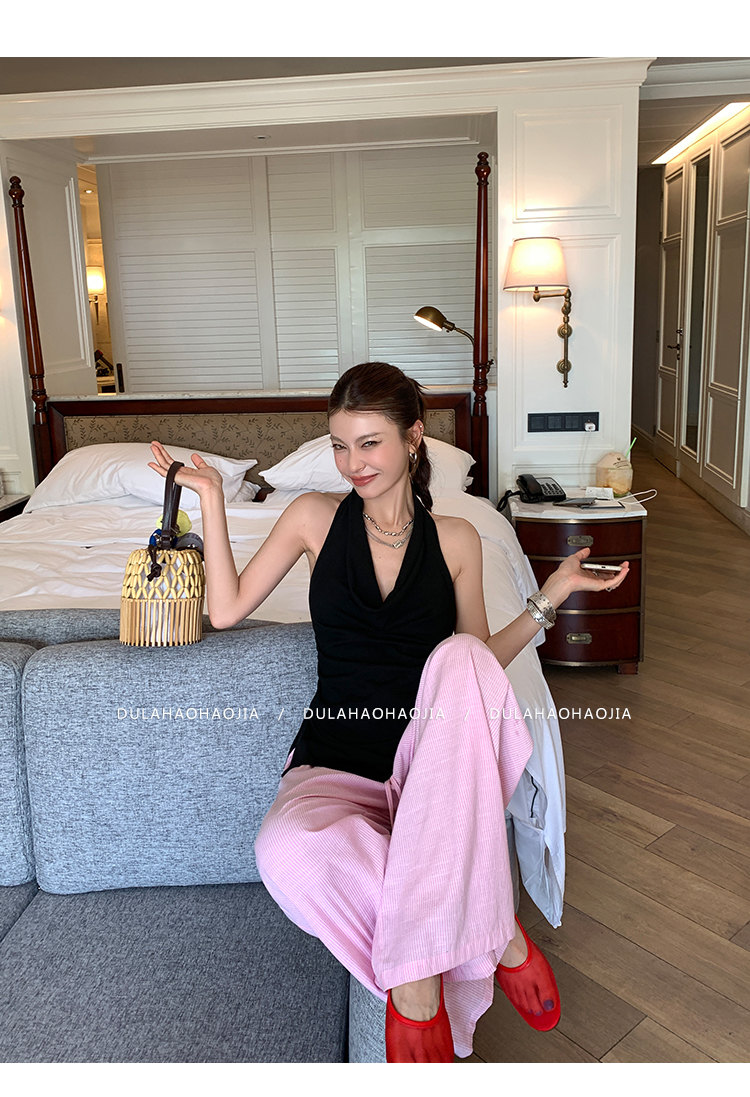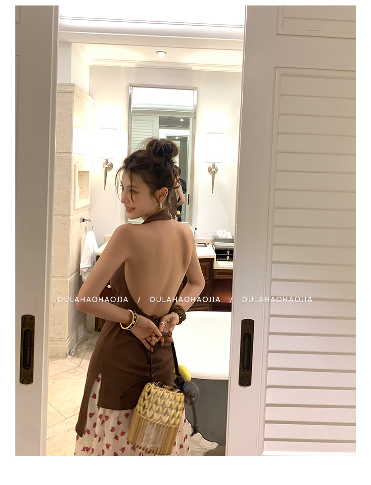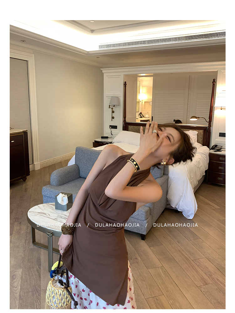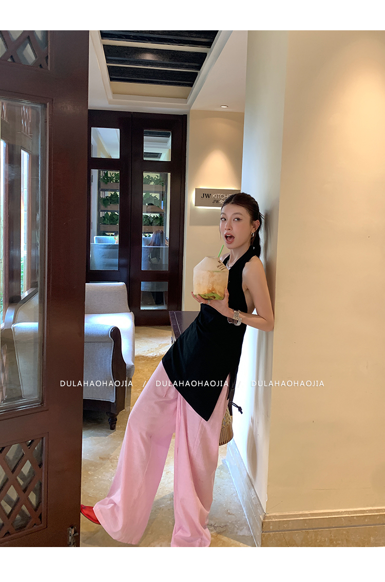 DULA Breathing Hanging Neck Collar Open-Forked Tank Top