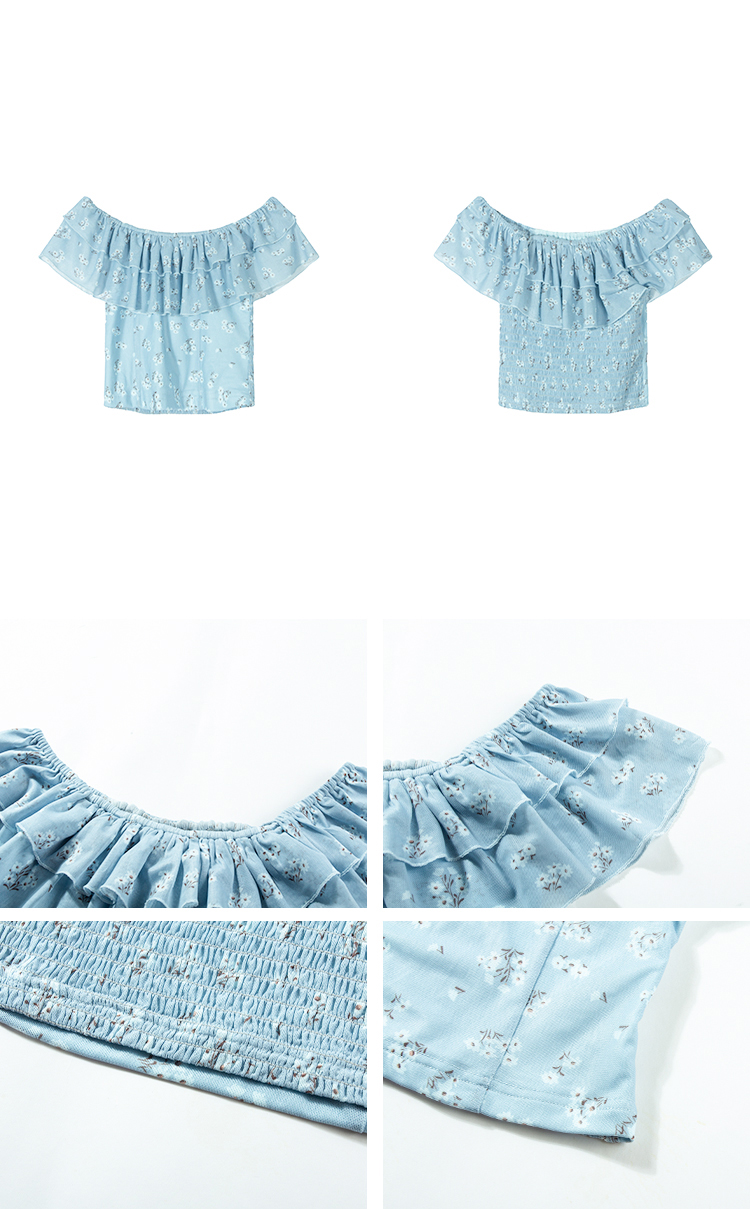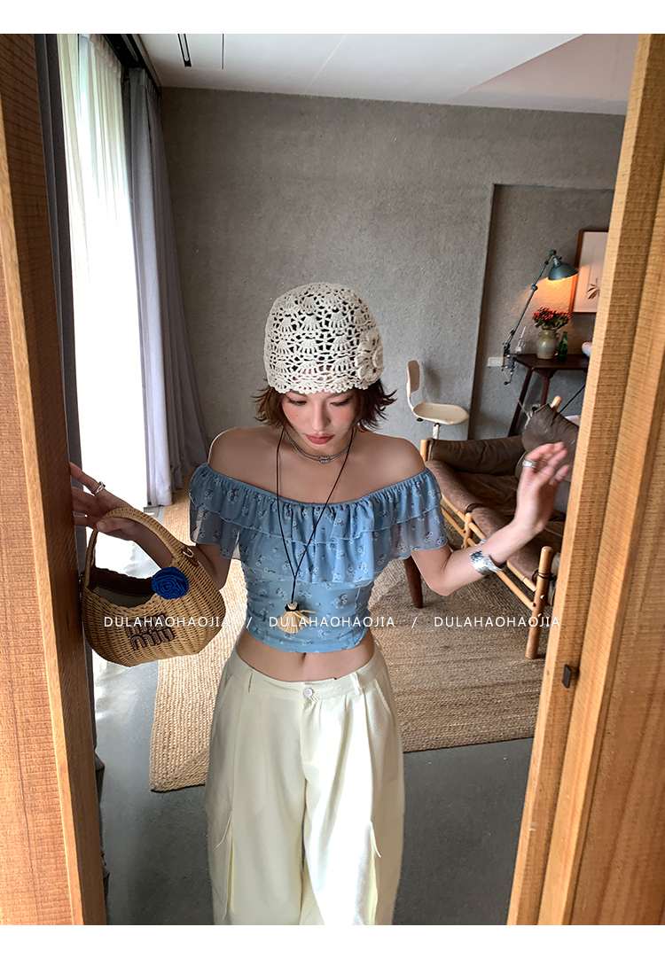 DULA Summer Lotus Leaf Edge One-Character Shoulder Short Shirt