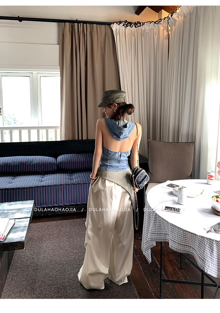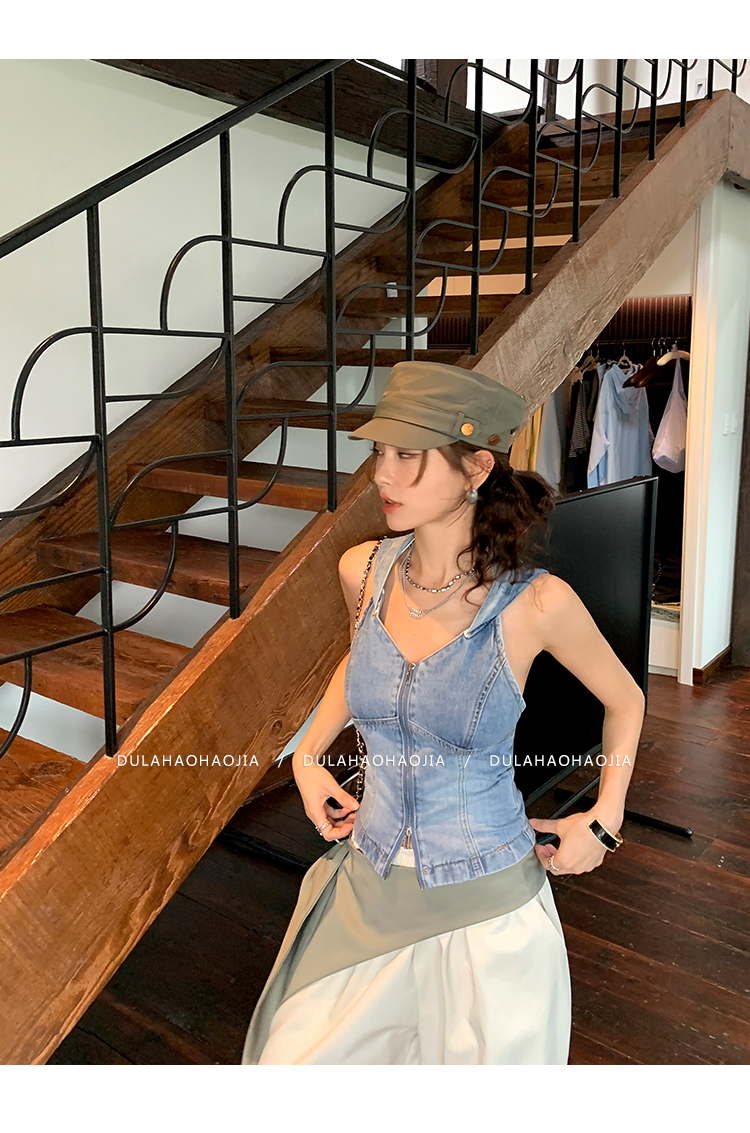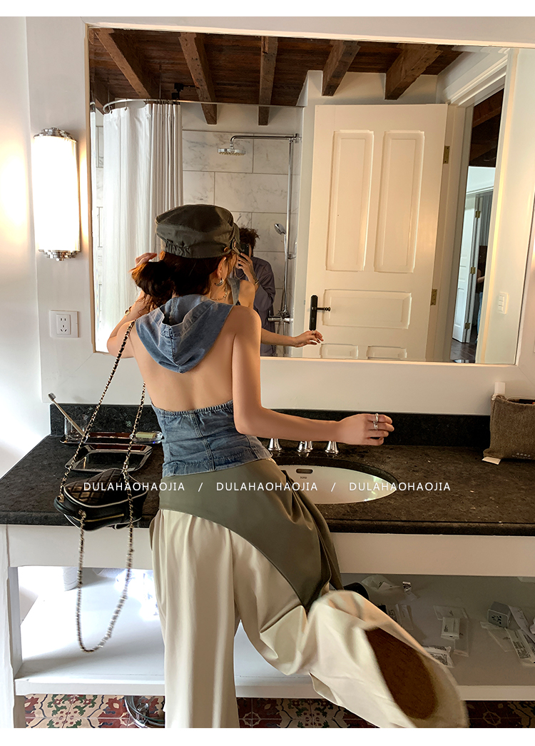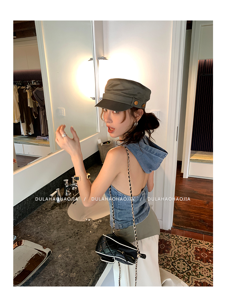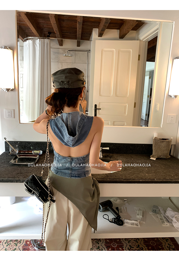 DULA Wild Pull Cowboy Sleeveless Hooded Short Tank Top