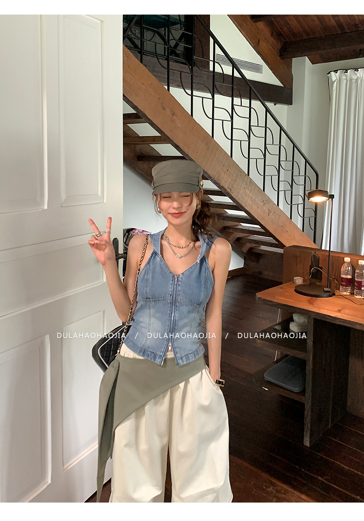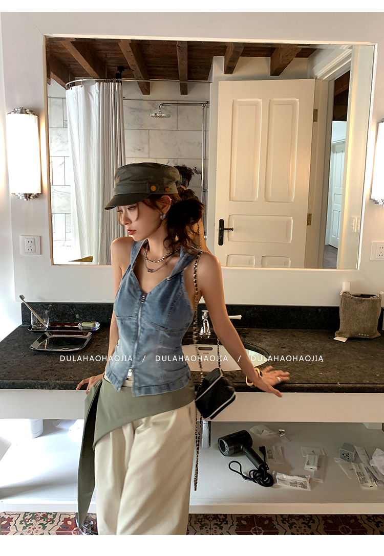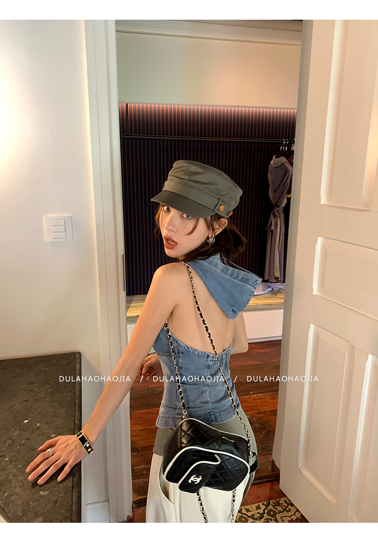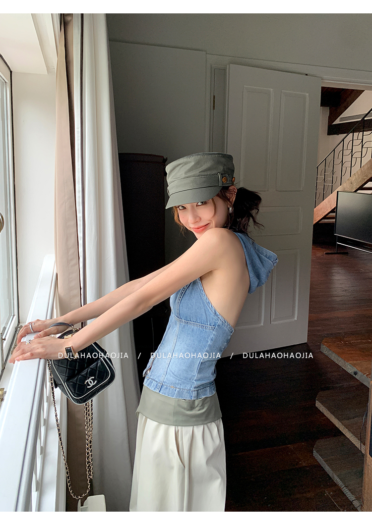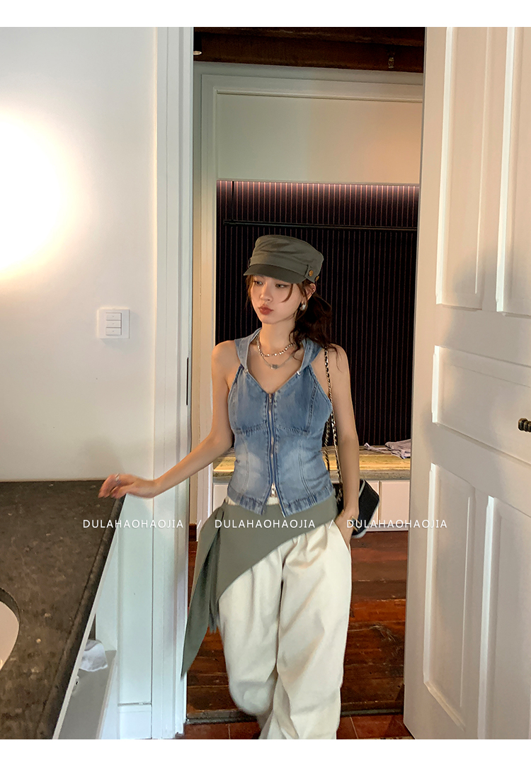 DULA Wild Pull Cowboy Sleeveless Hooded Short Tank Top