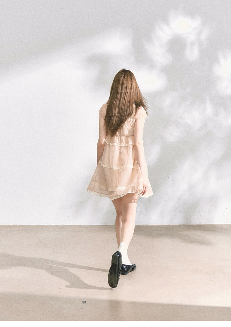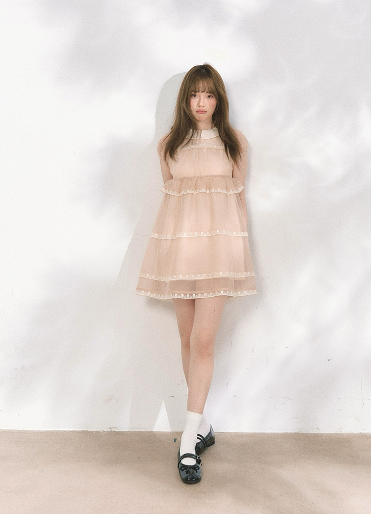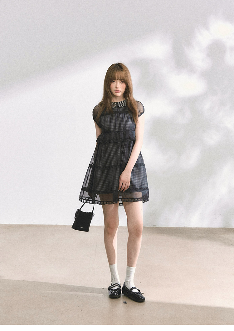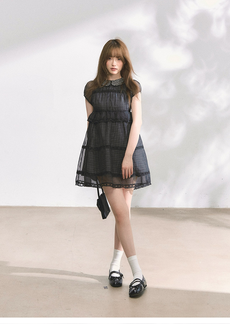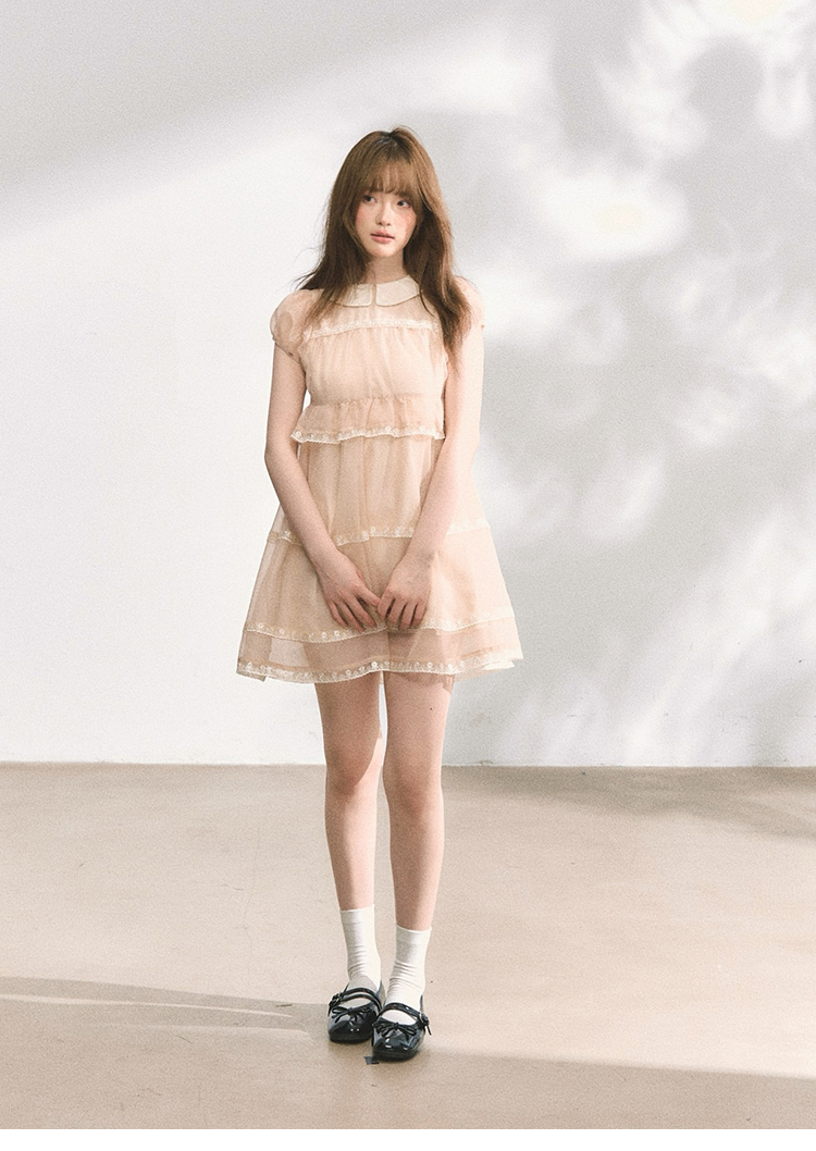 MAP Thousand Gold Lace Splice Cloud Silk Doll Collar Puffy Dress