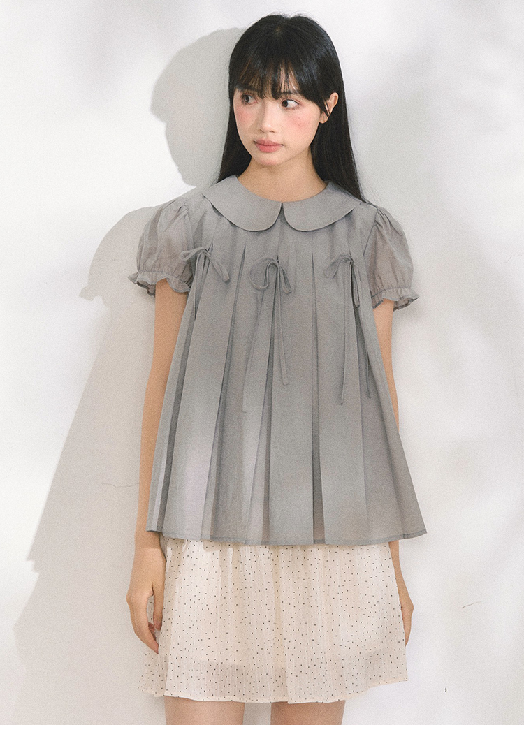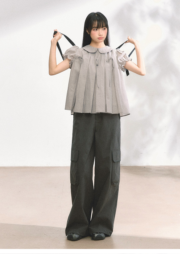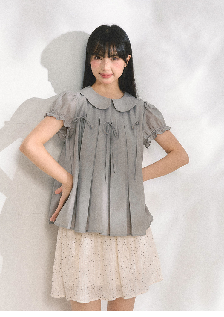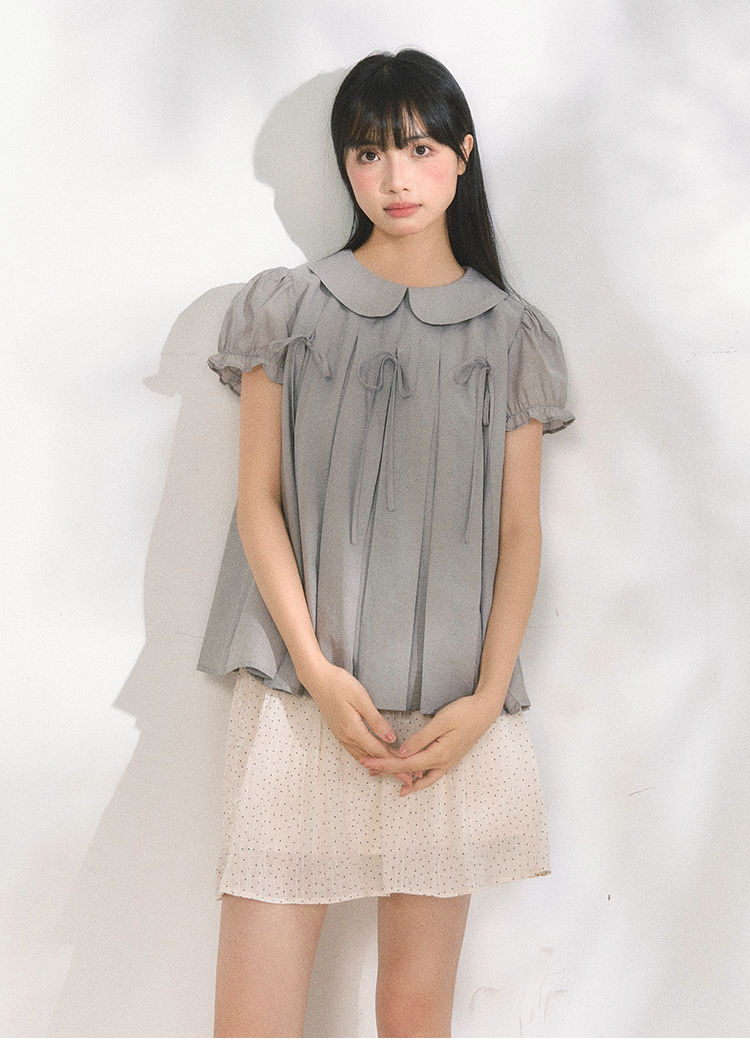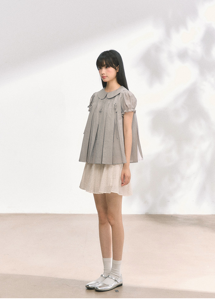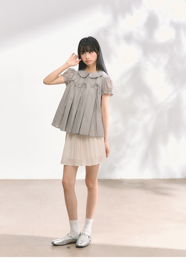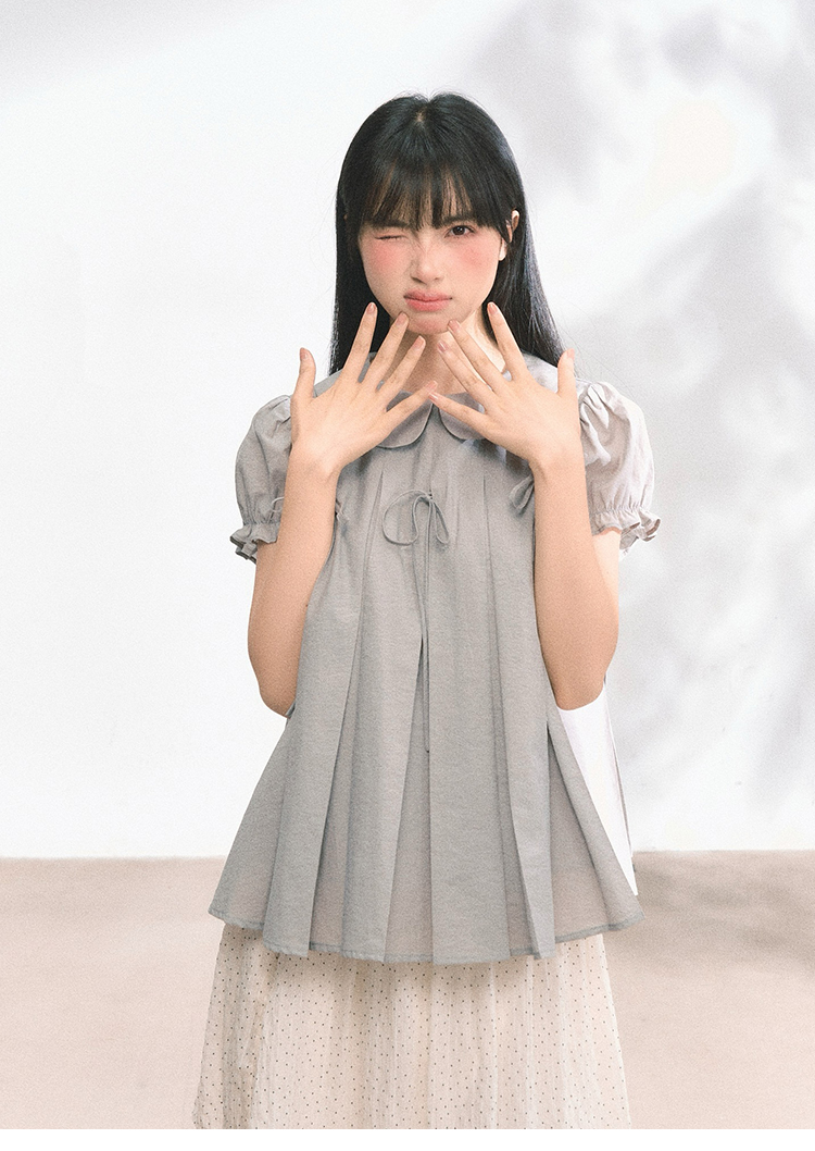 MAP Moonlit Silver Bow Tie Pleated A-Shaped Loose Shirt