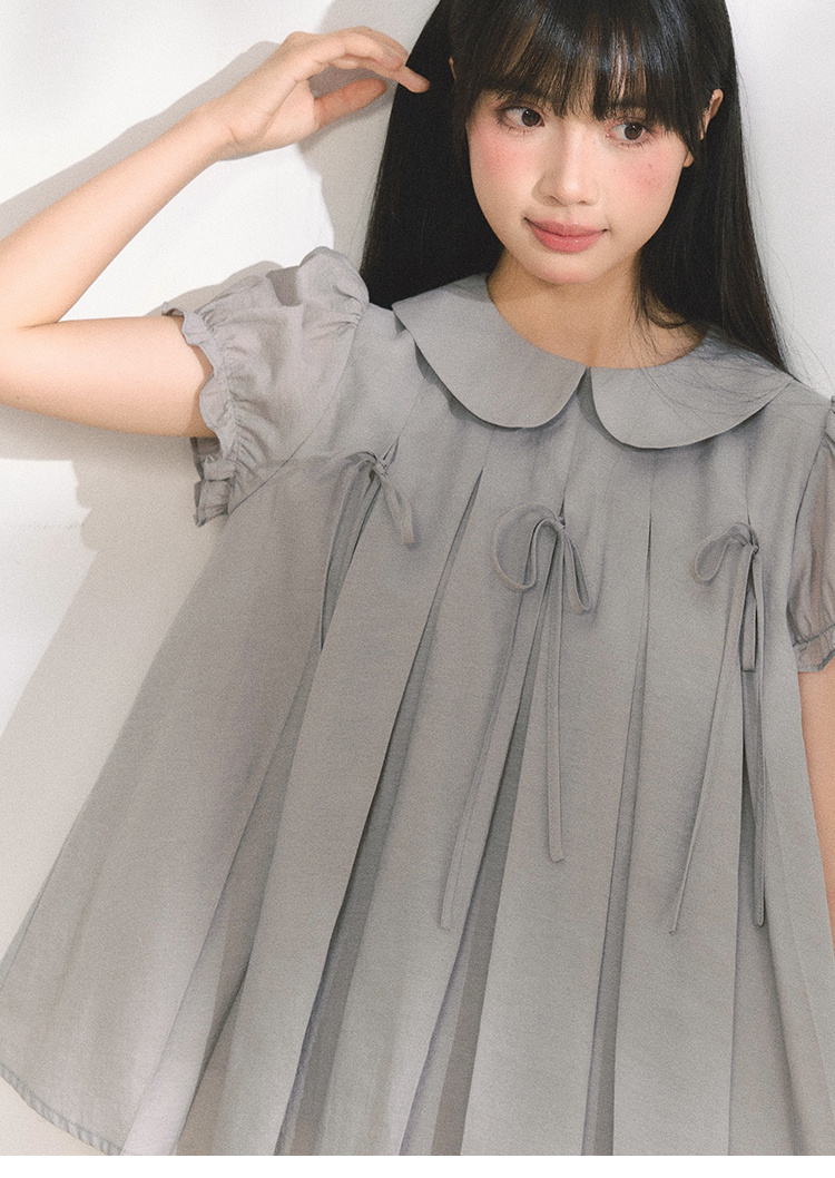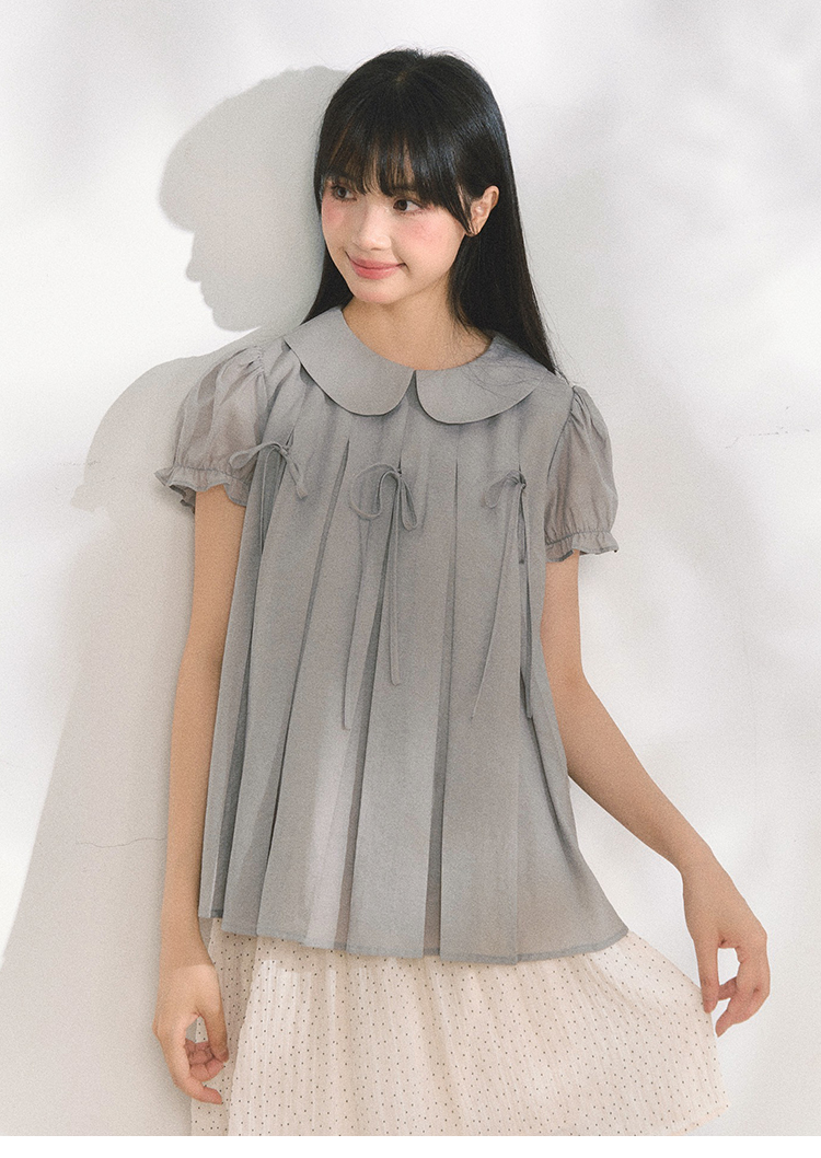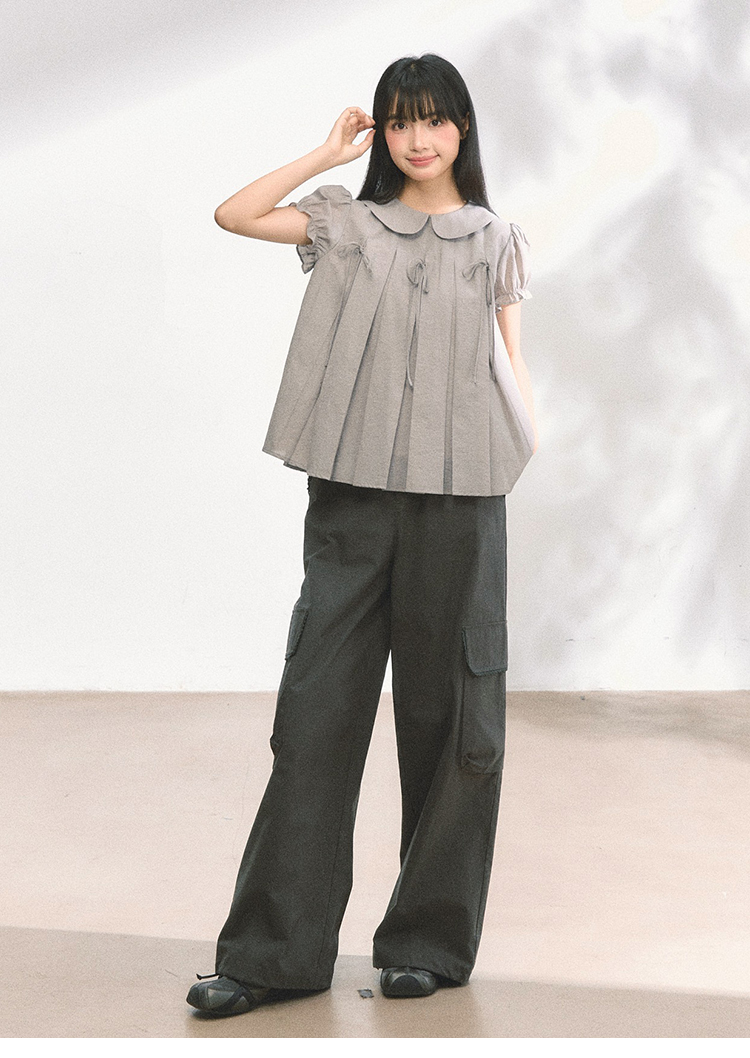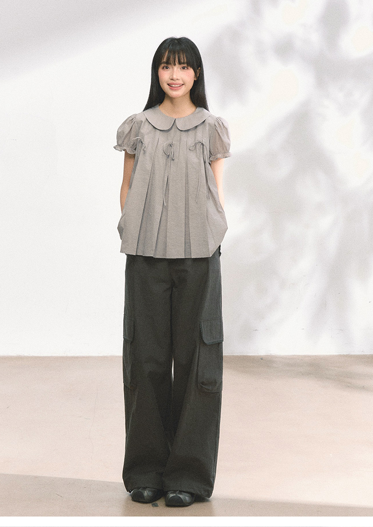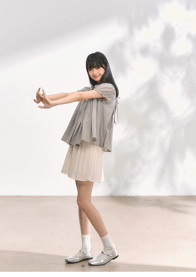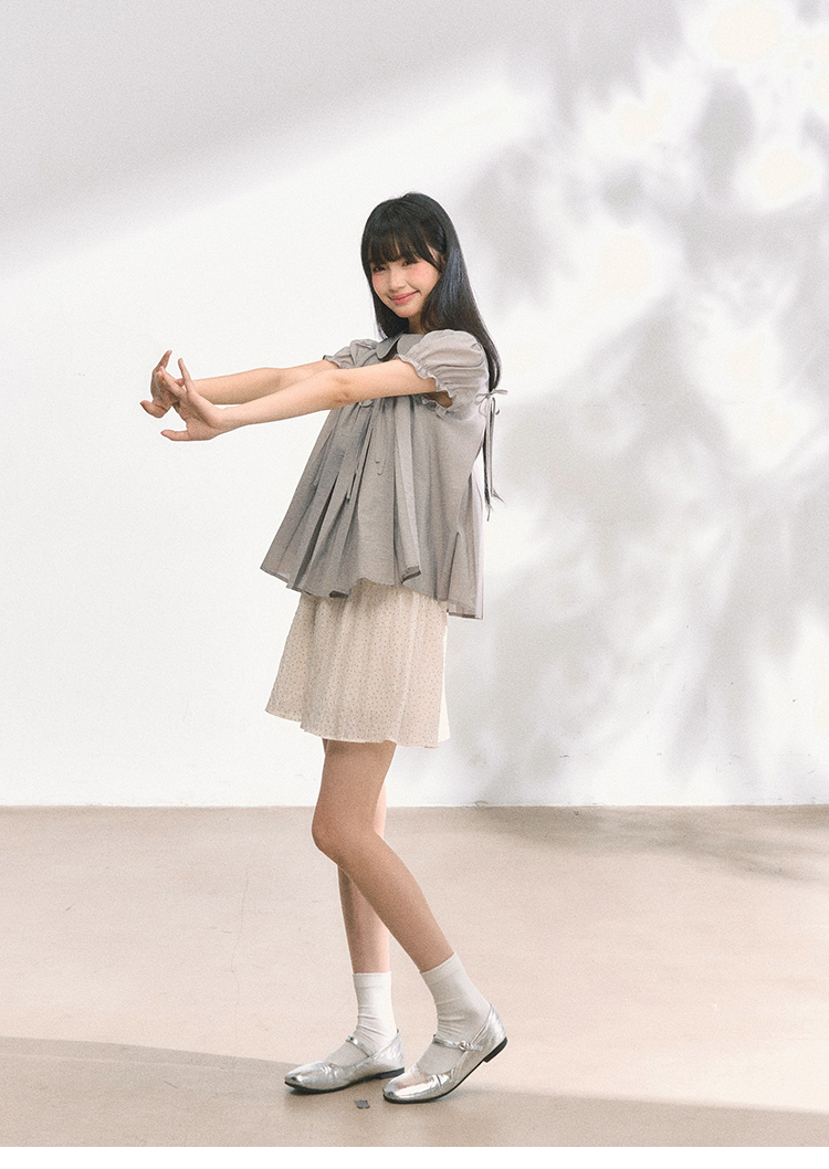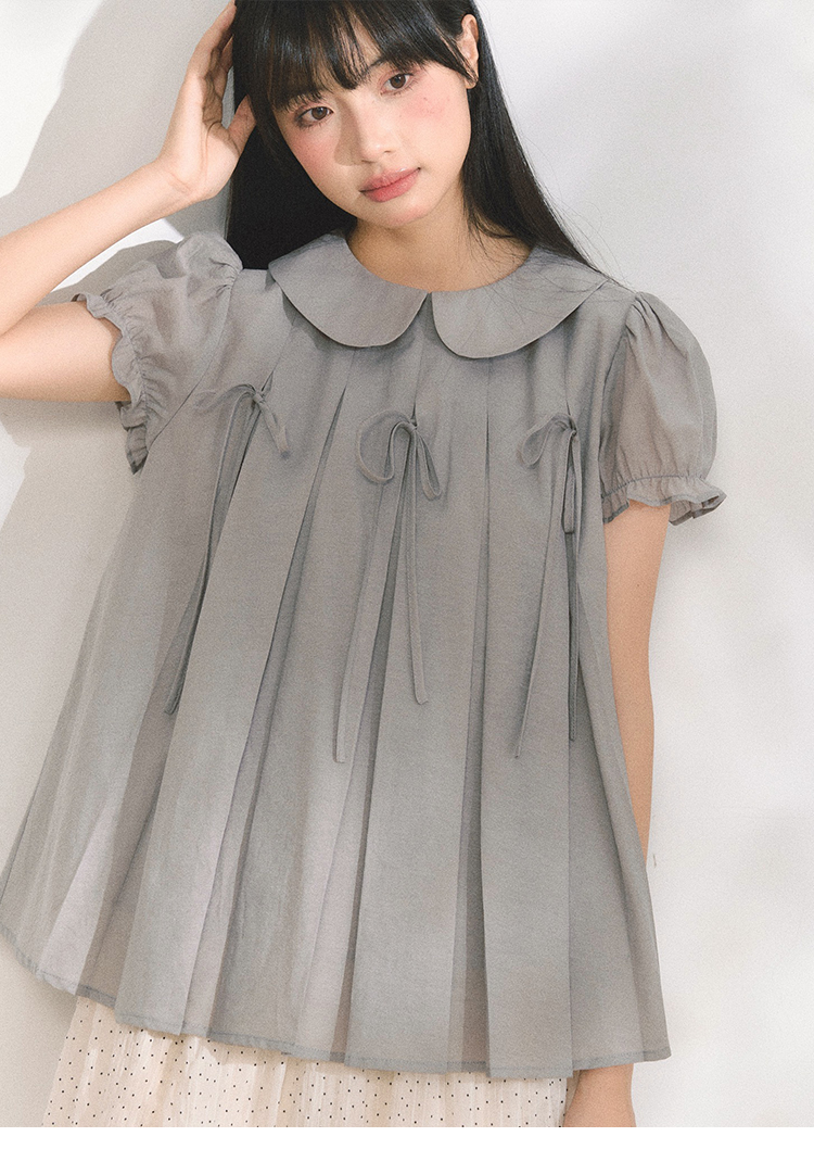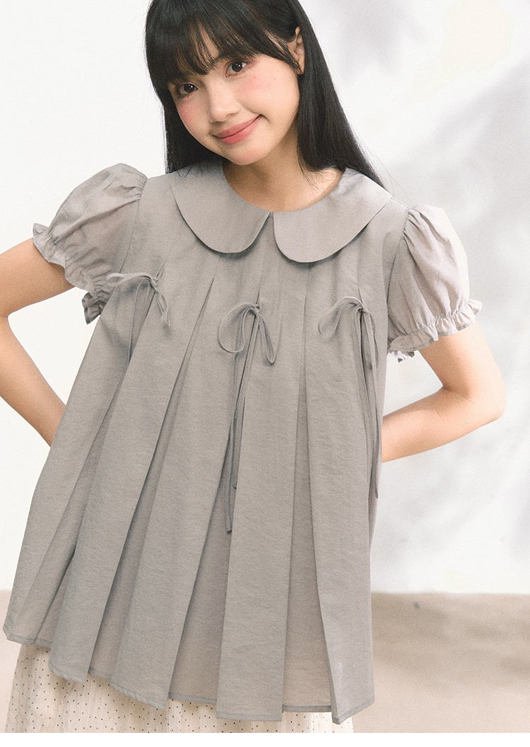 MAP Moonlit Silver Bow Tie Pleated A-Shaped Loose Shirt