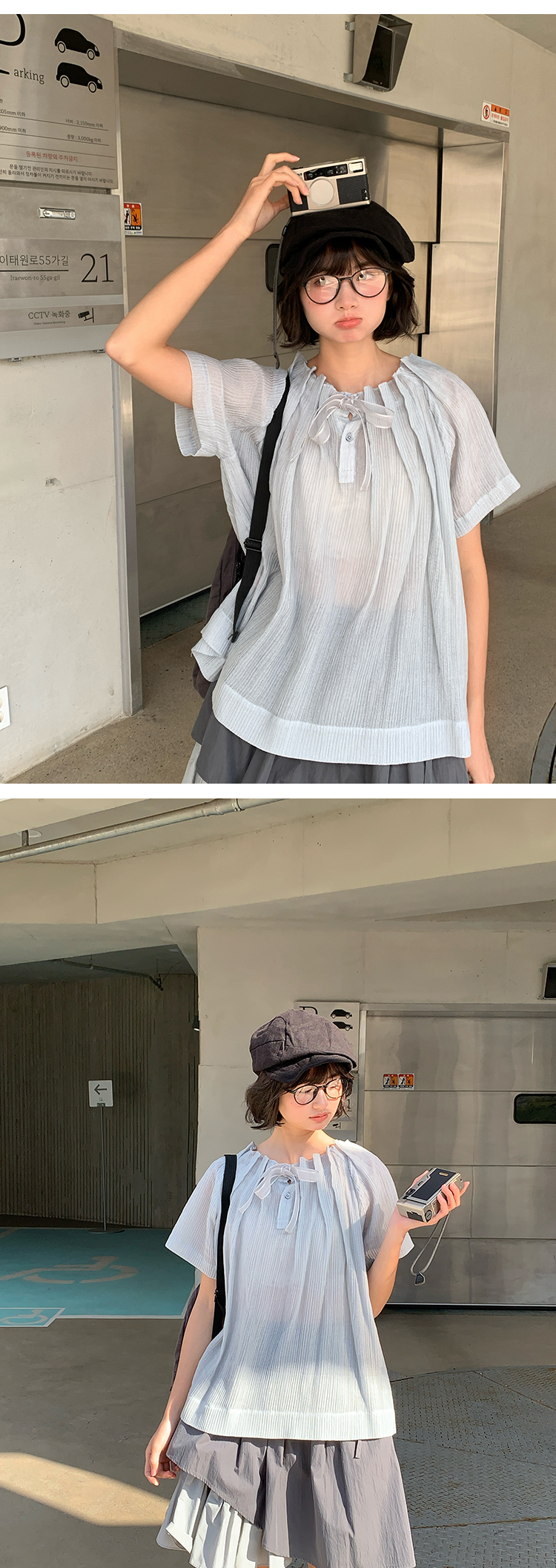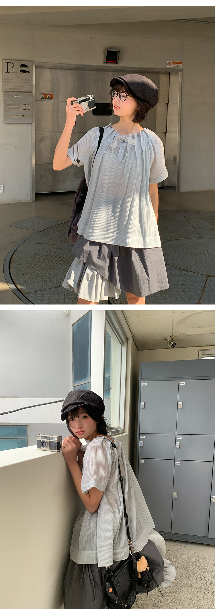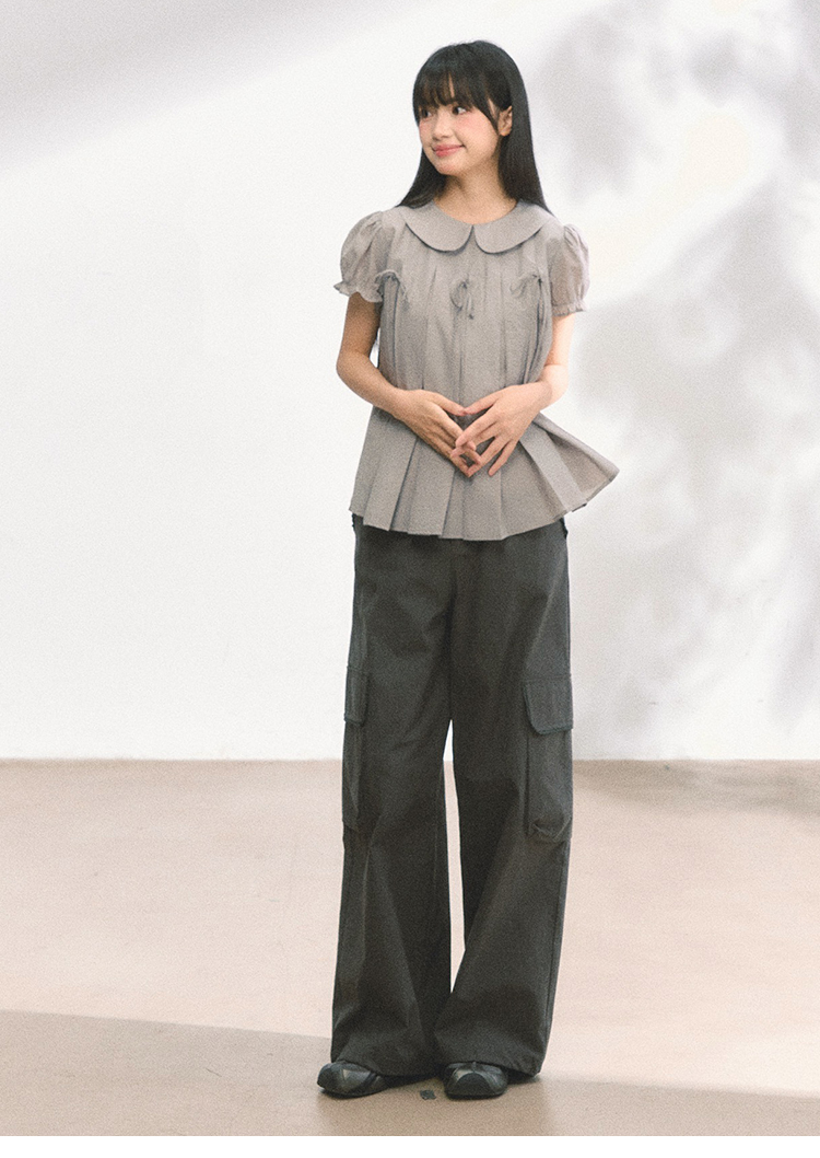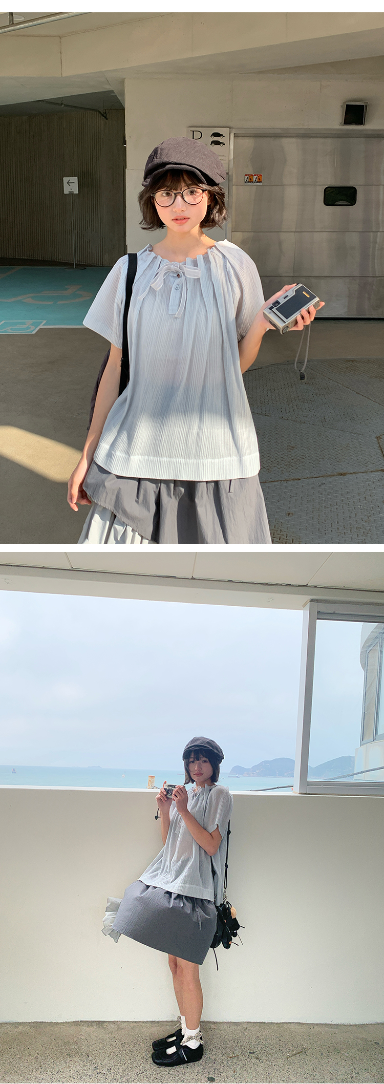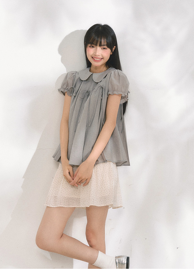 MAP Moonlit Silver Bow Tie Pleated A-Shaped Loose Shirt
