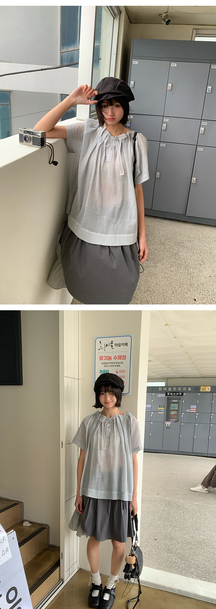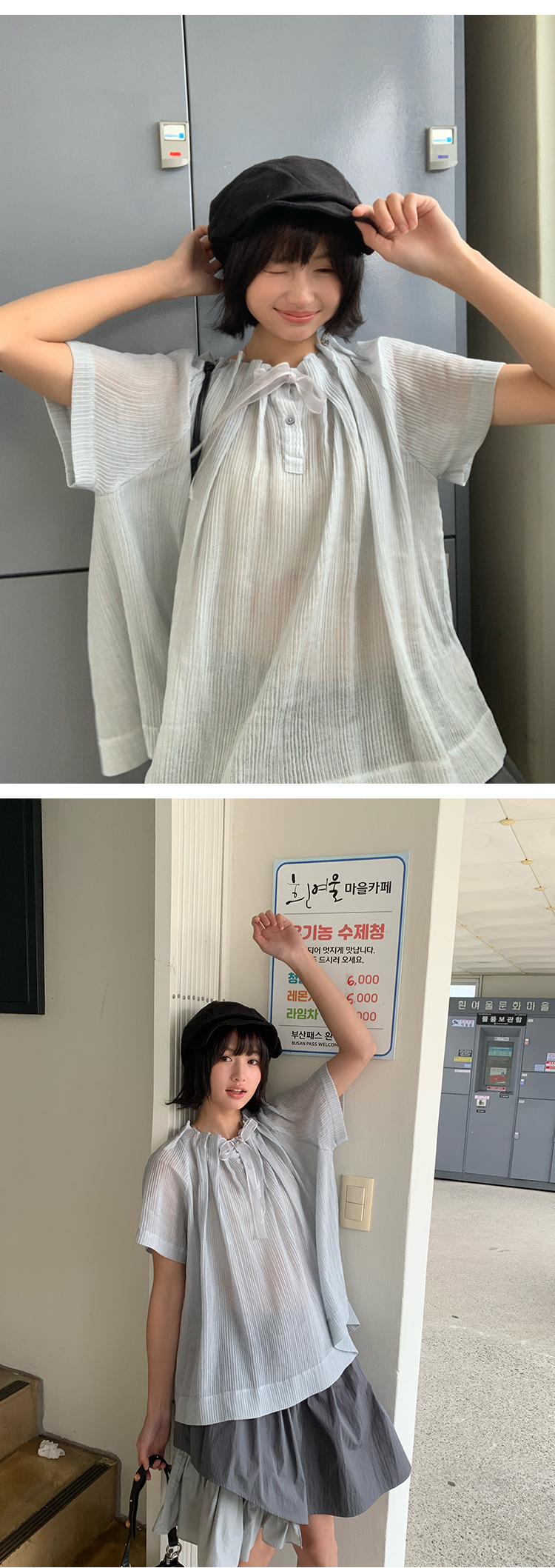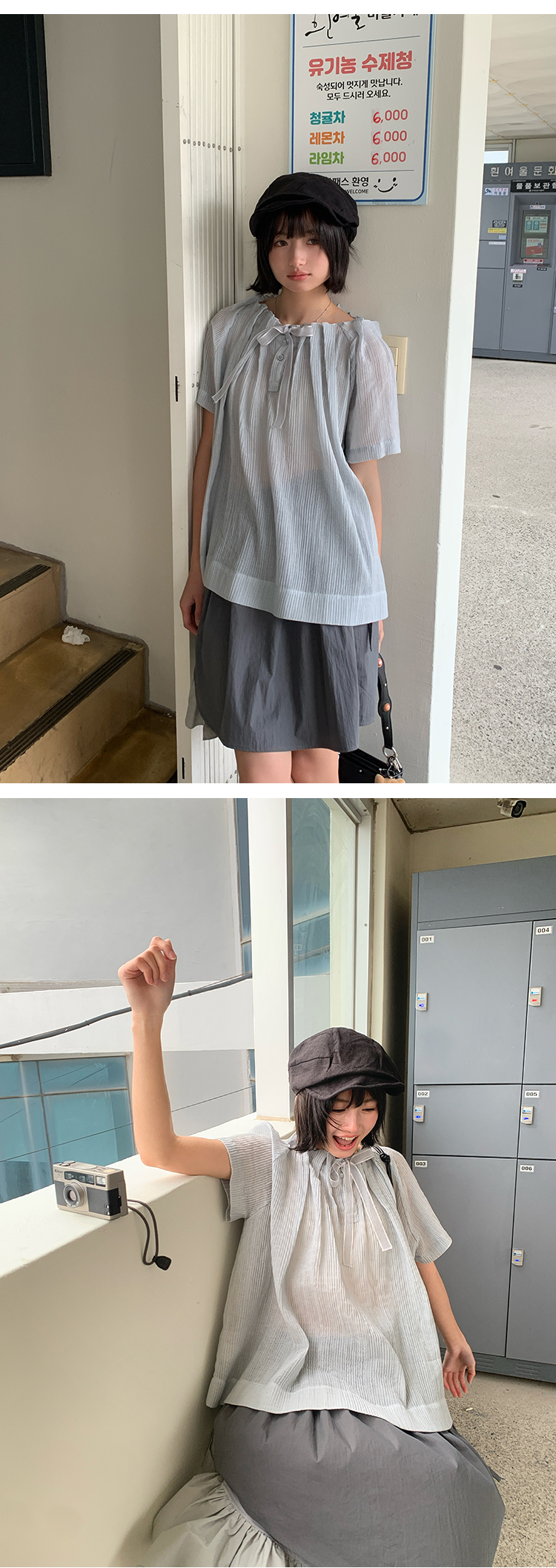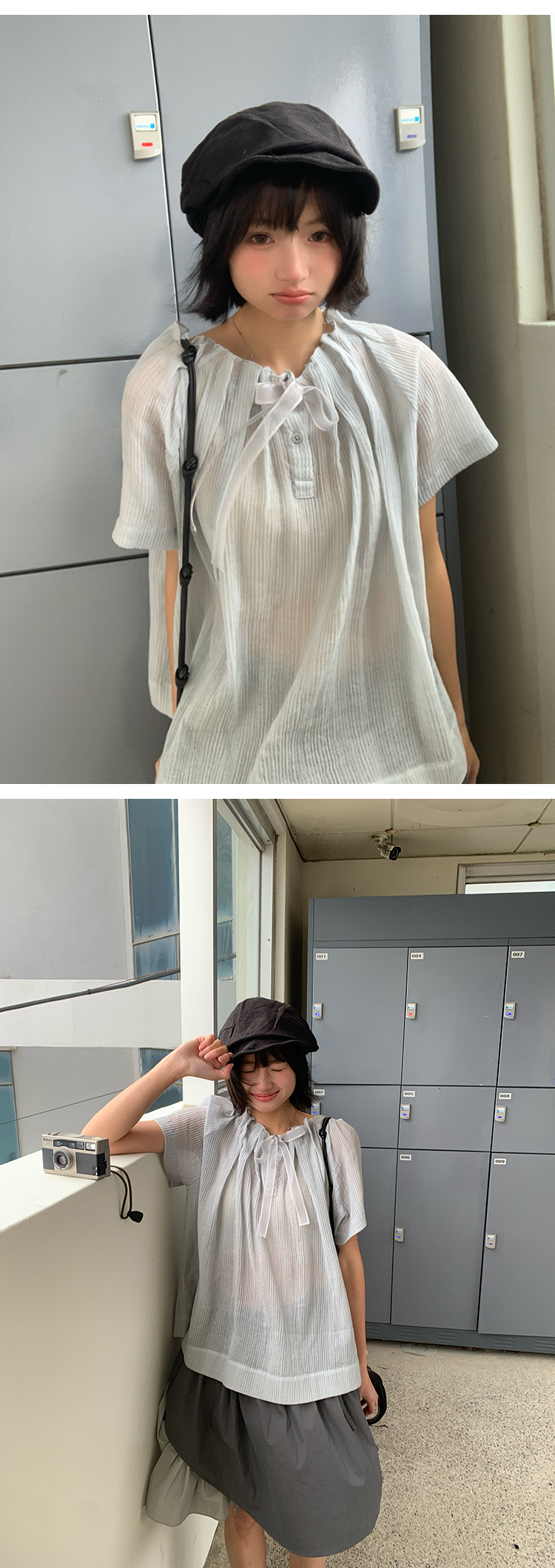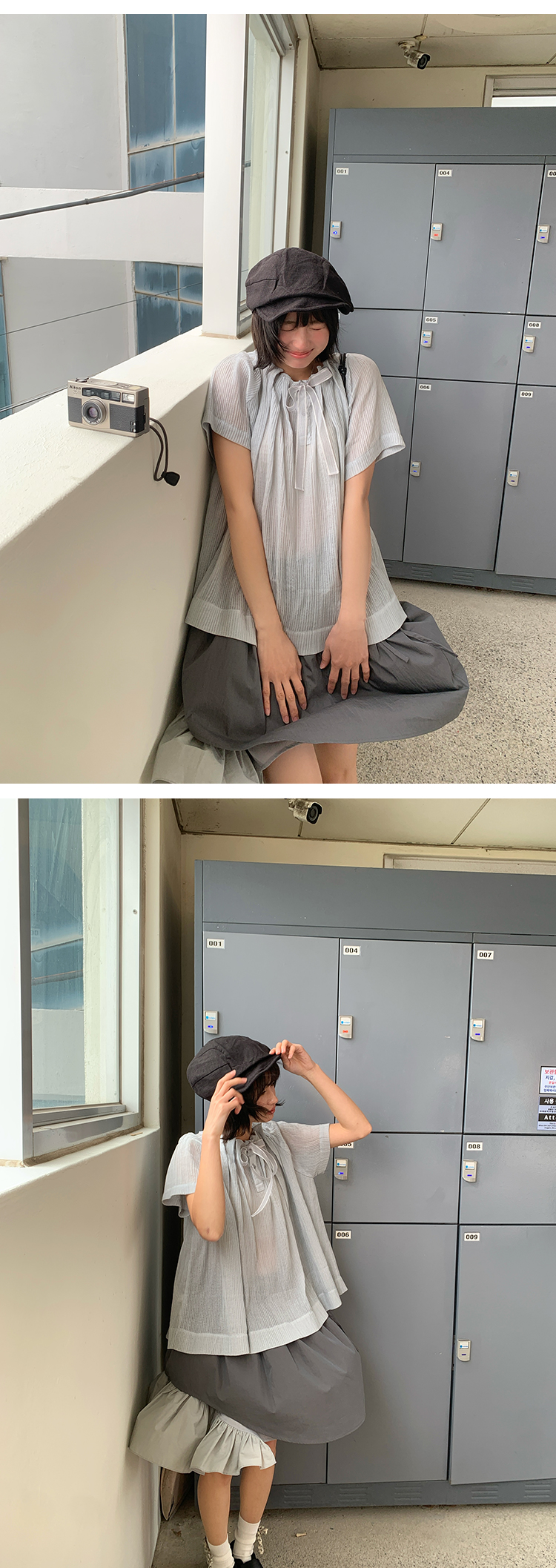 MAP Moonlit Silver Bow Tie Pleated A-Shaped Loose Shirt