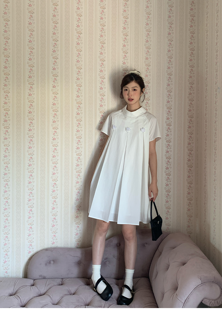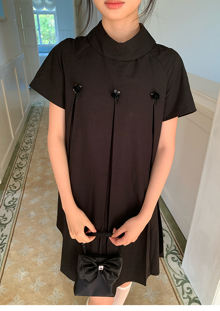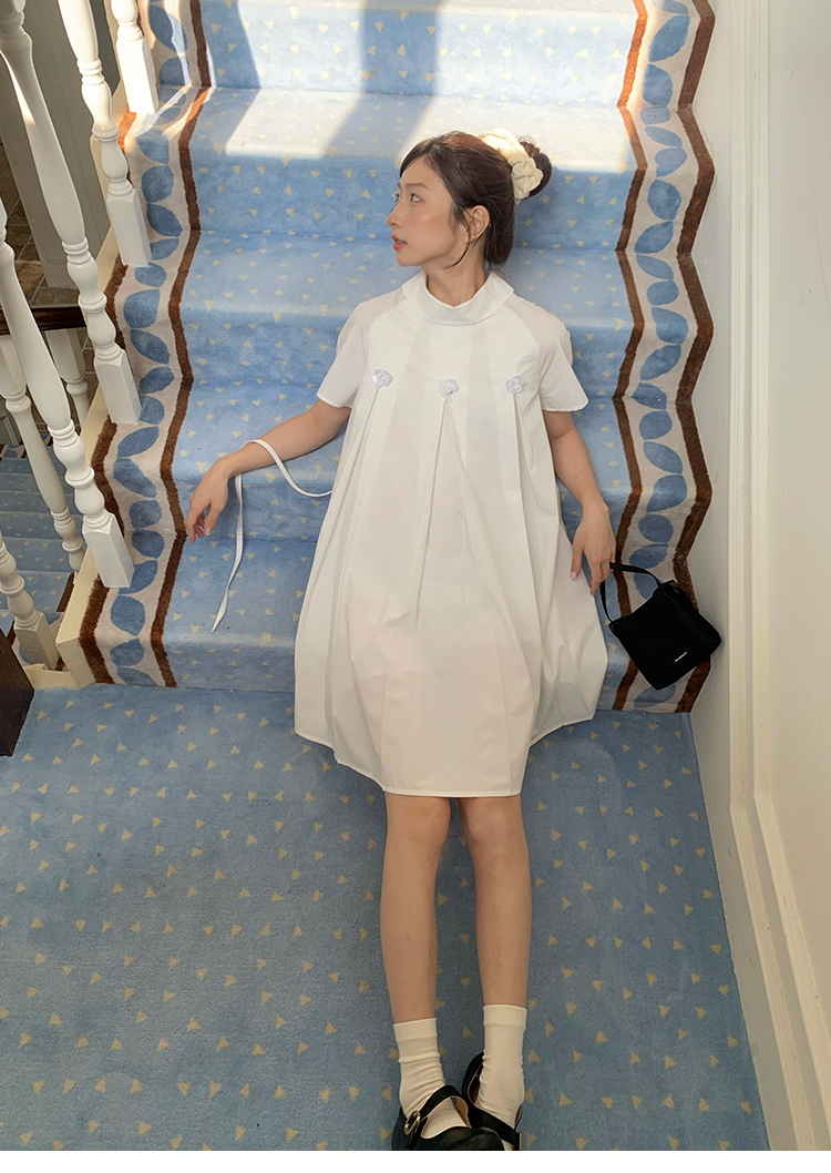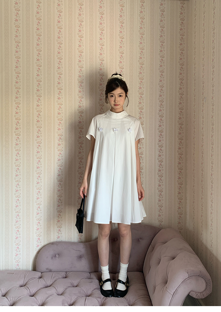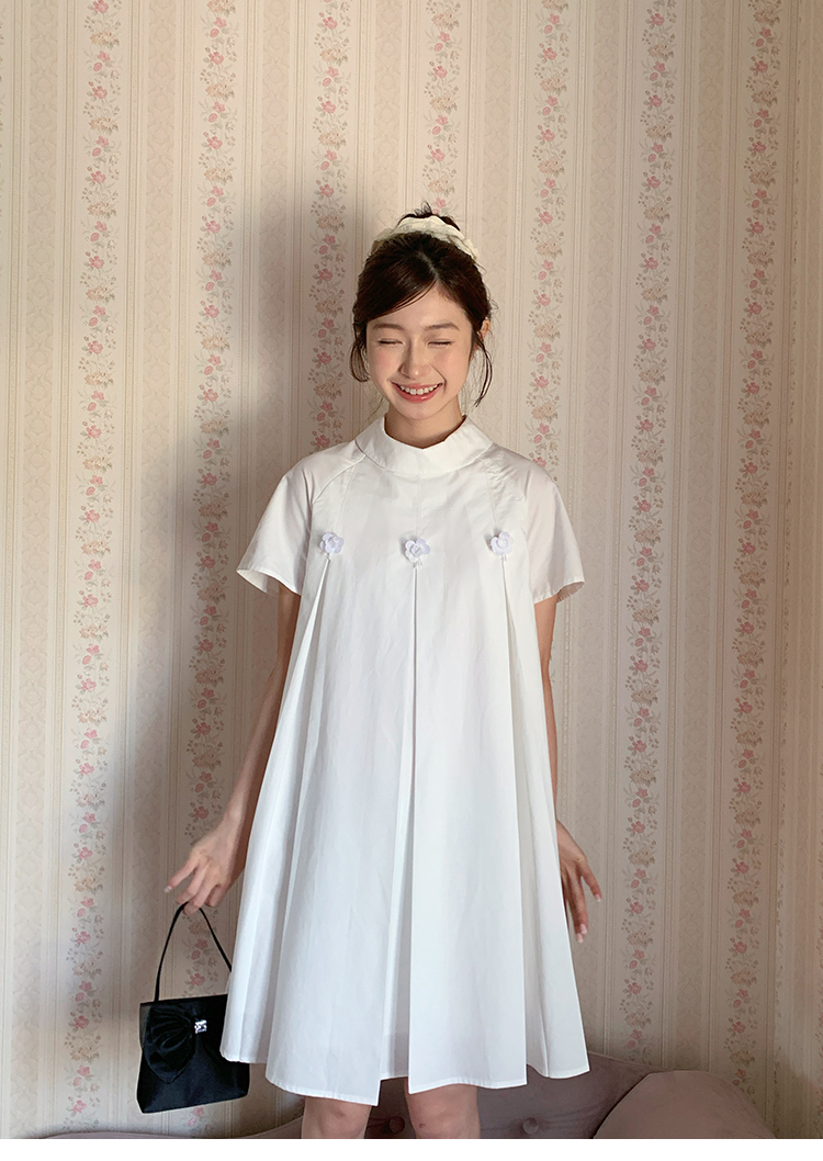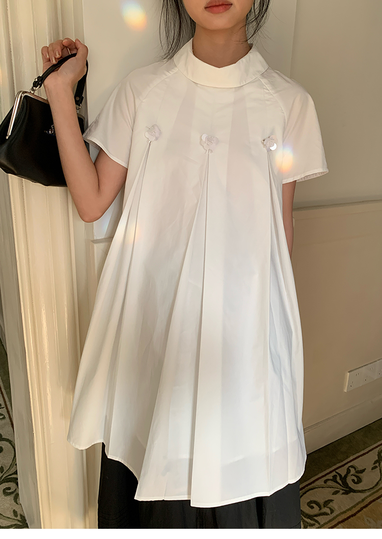 MAP Thousand Gold Standing Collar Flower Pleated Dress