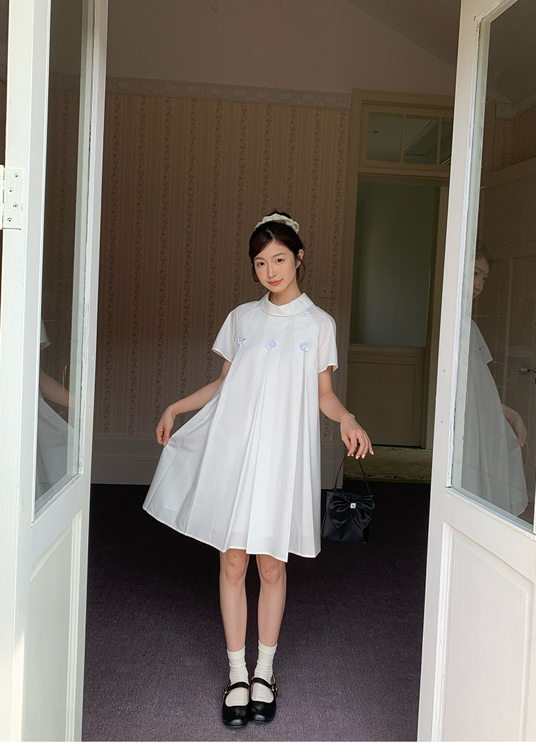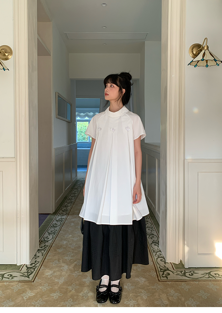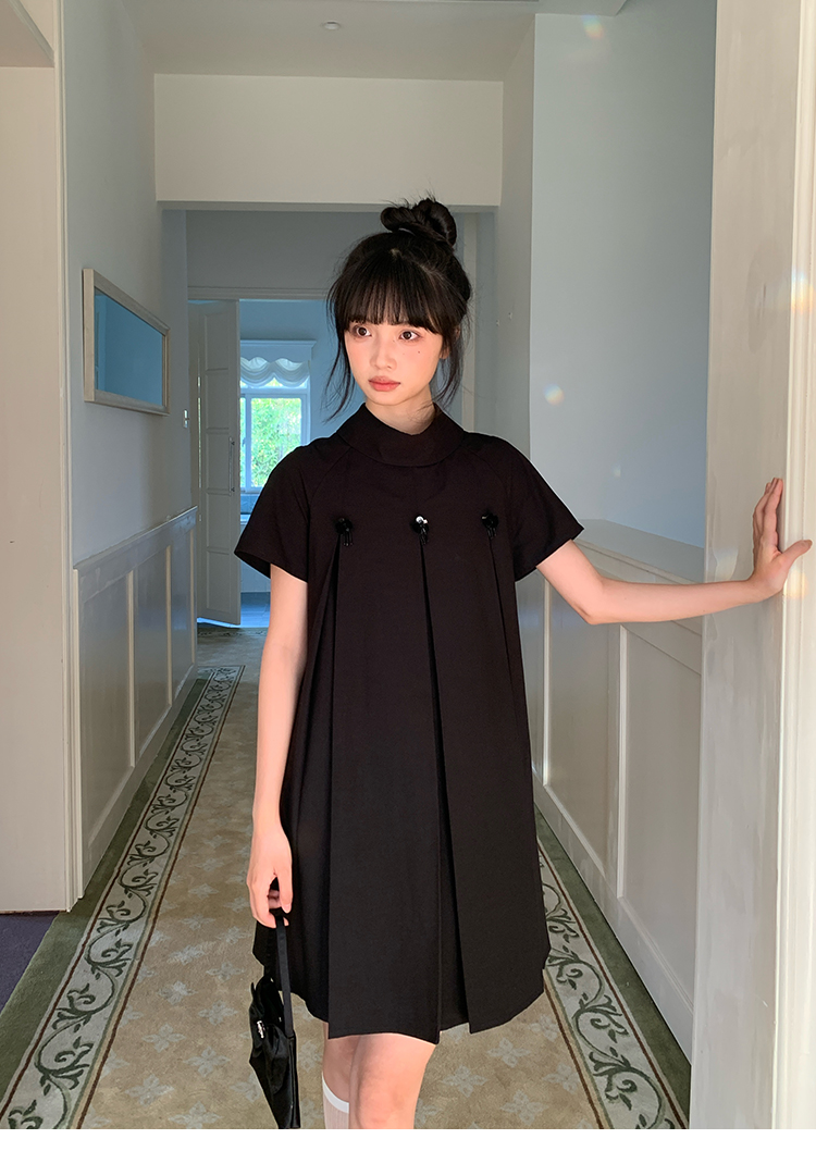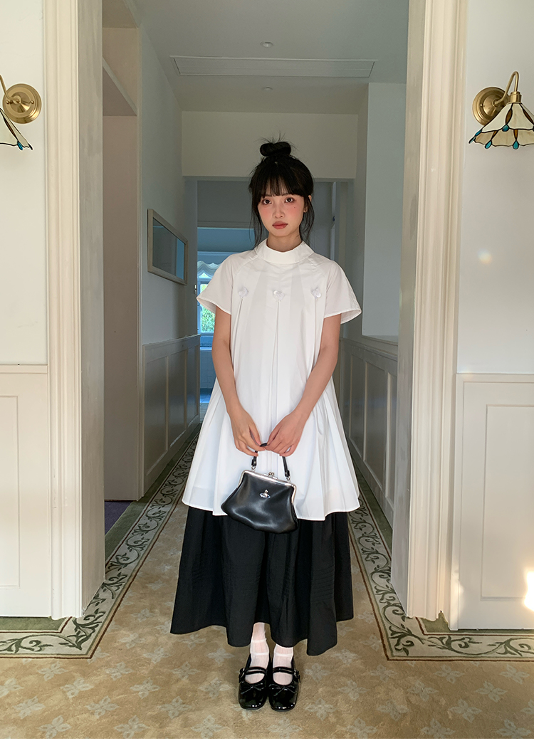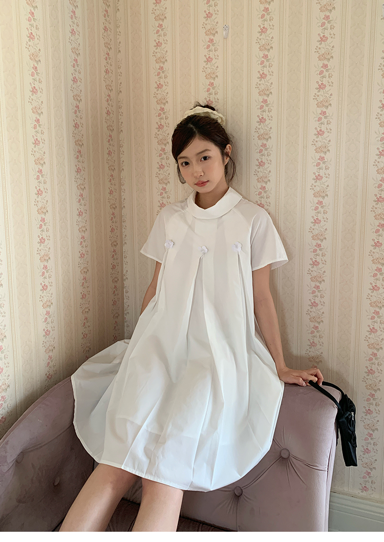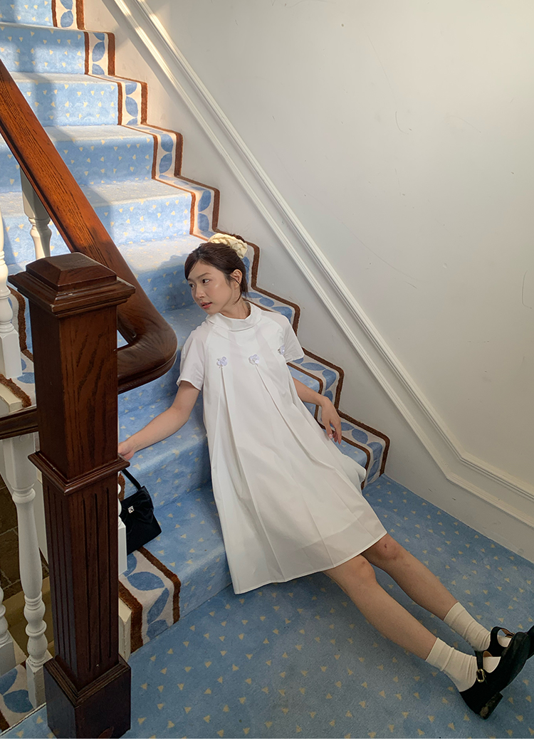 MAP Thousand Gold Standing Collar Flower Pleated Dress