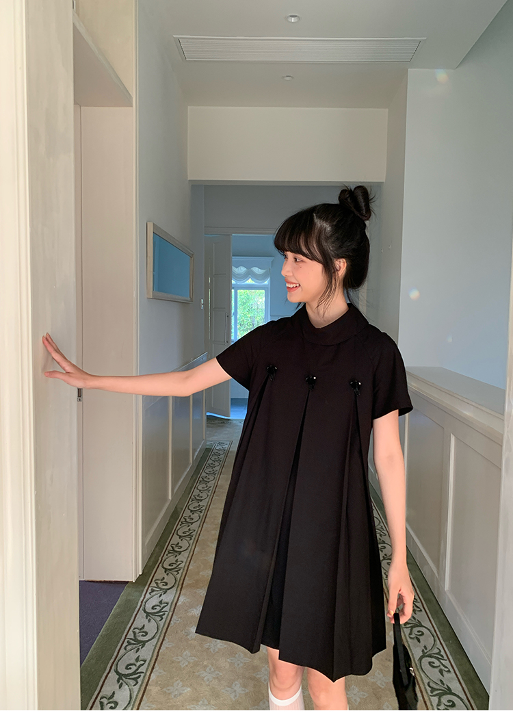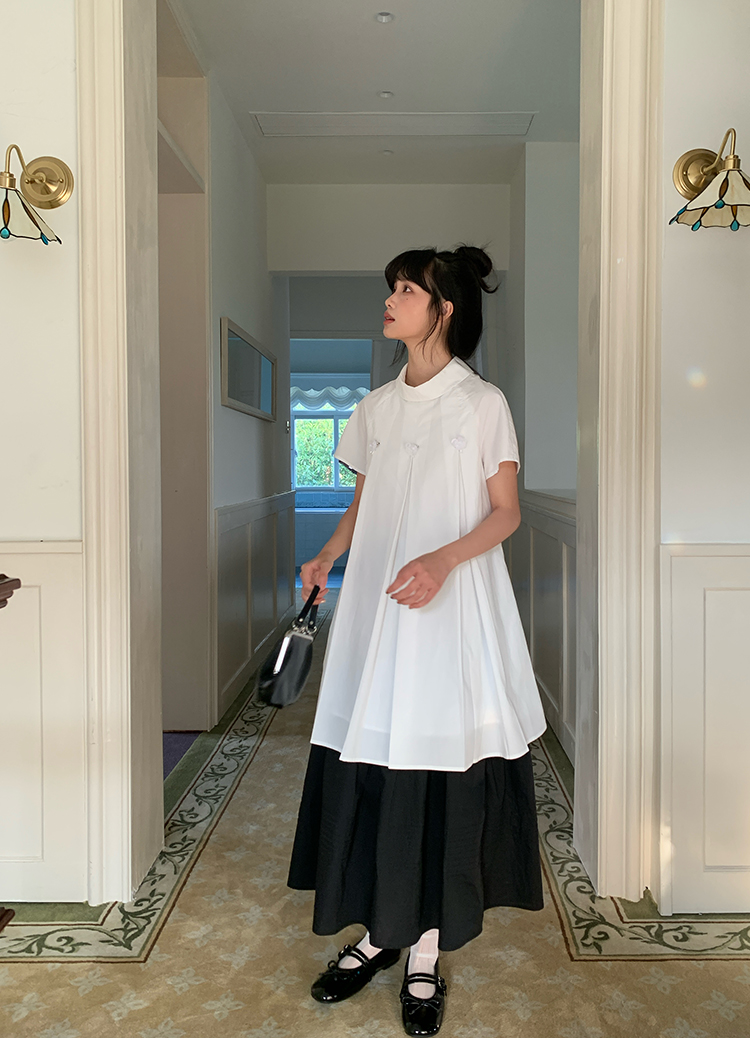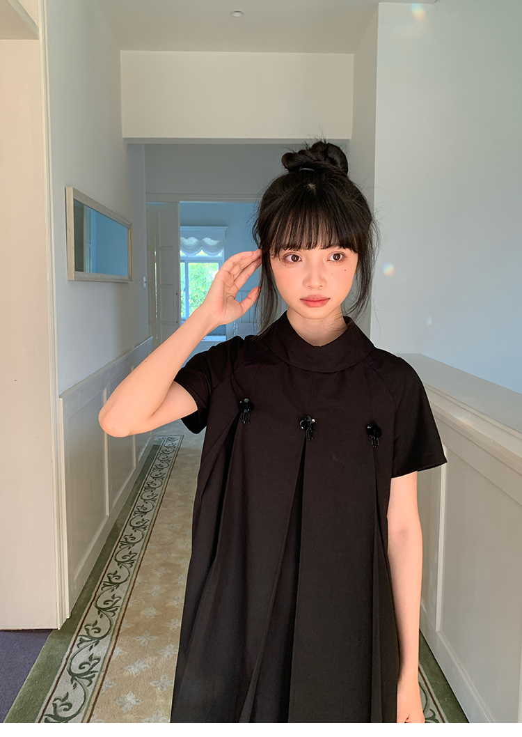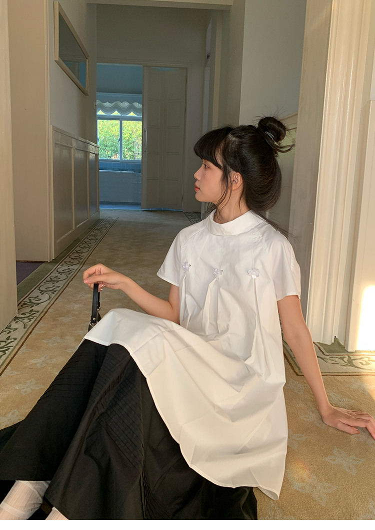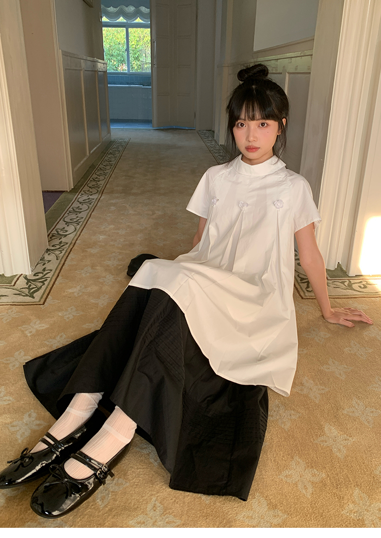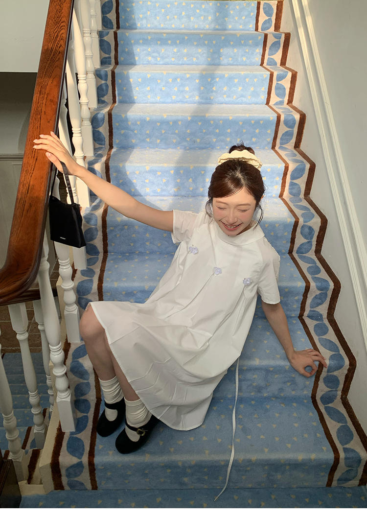 MAP Thousand Gold Standing Collar Flower Pleated Dress