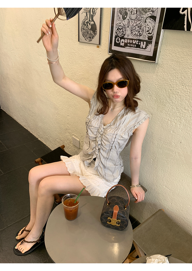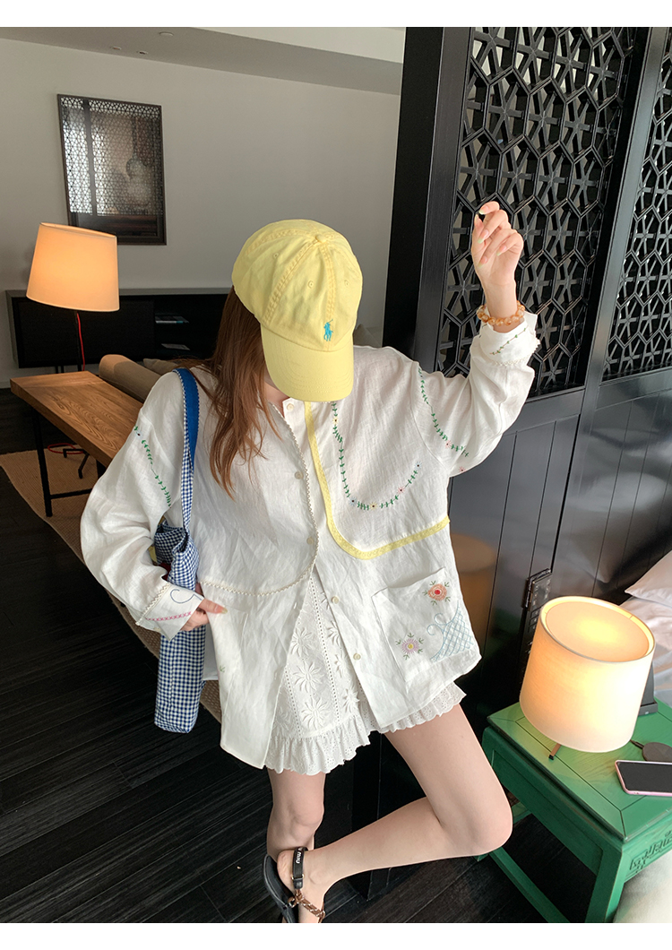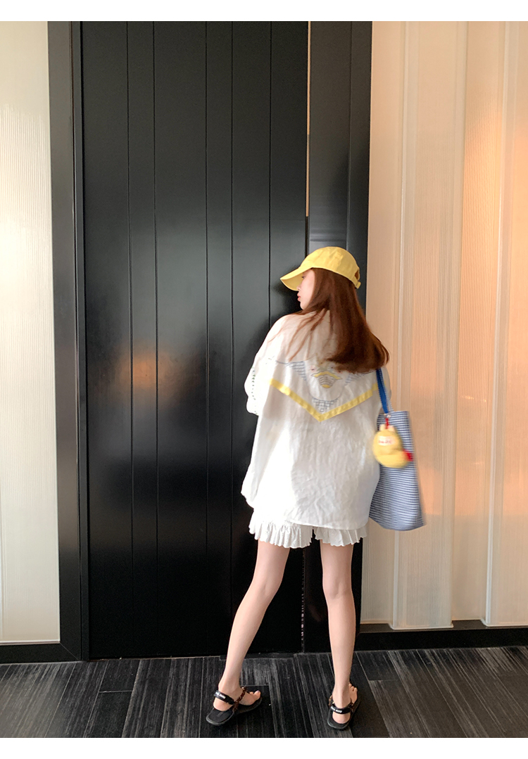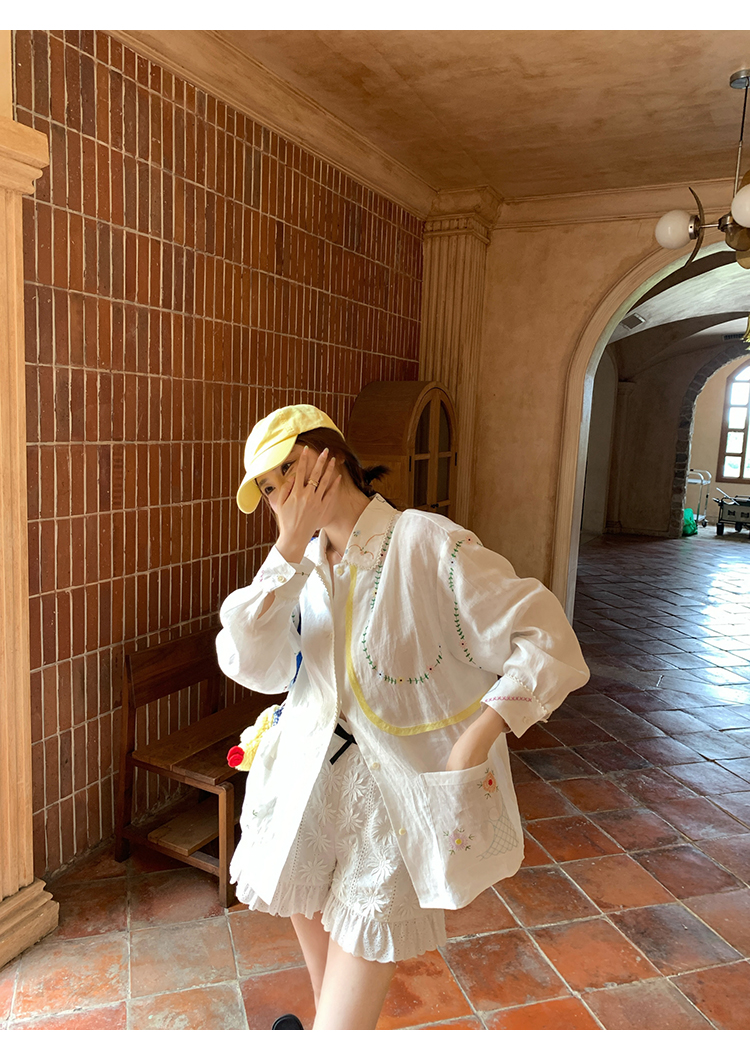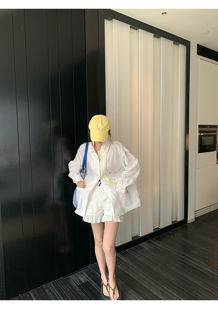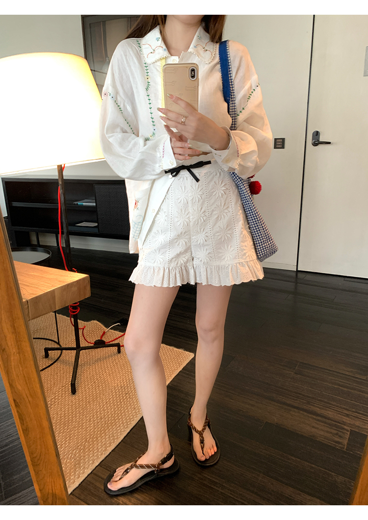 RZZ French Cotton Embroidered Lotus Leaf Edge White Shorts