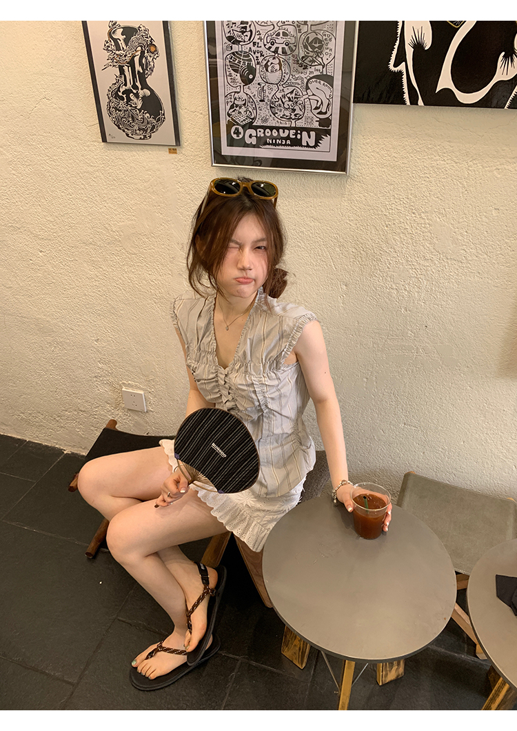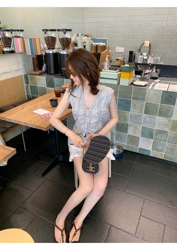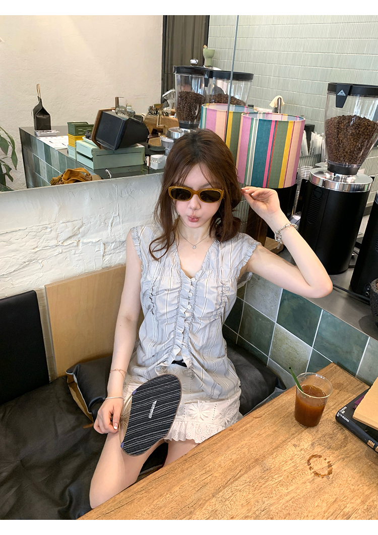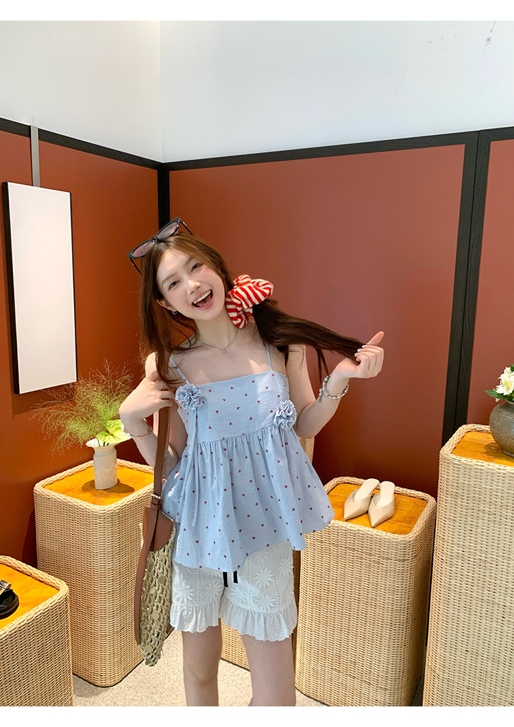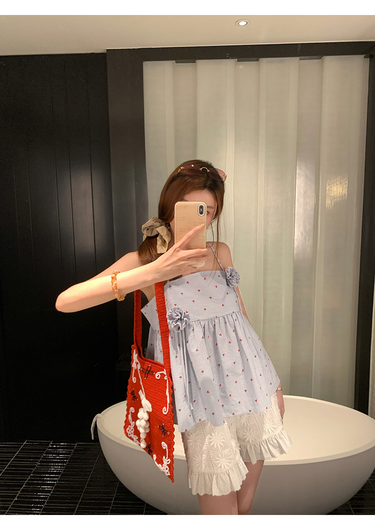 RZZ French Cotton Embroidered Lotus Leaf Edge White Shorts