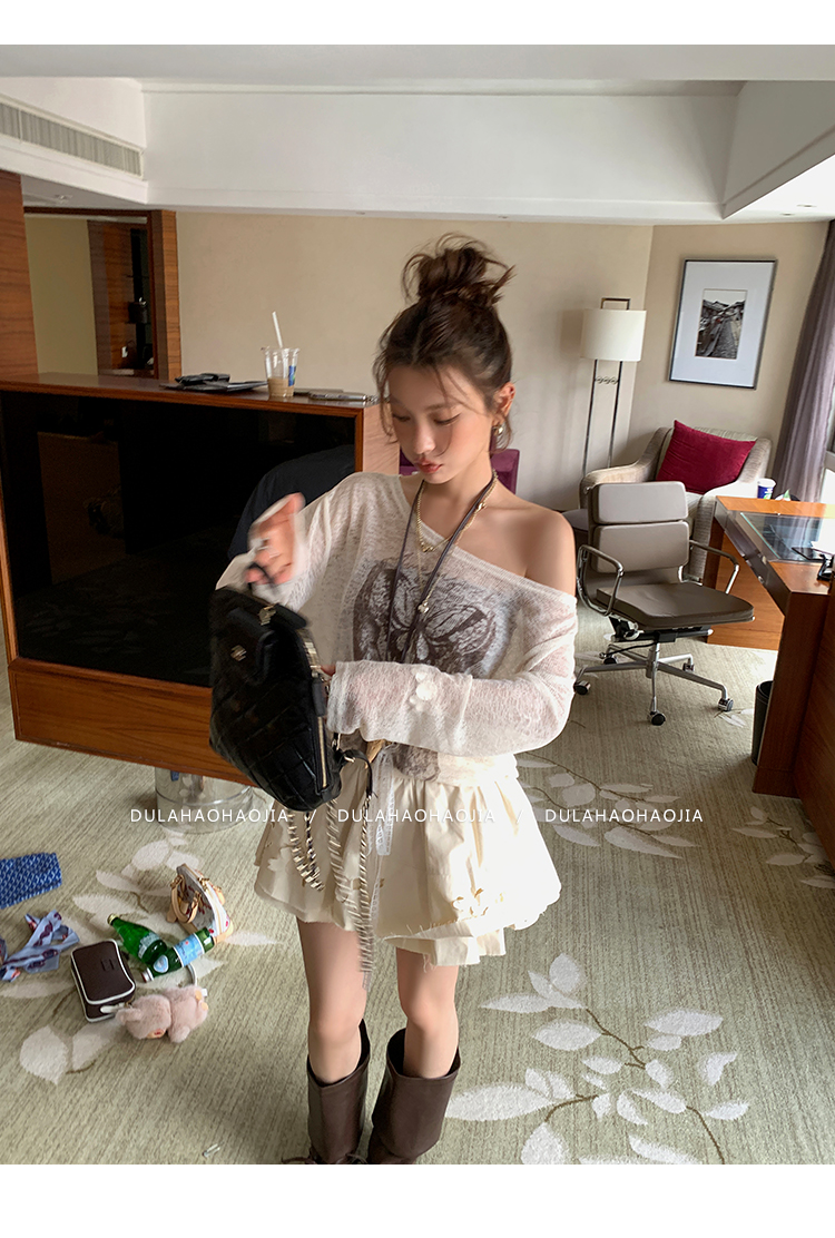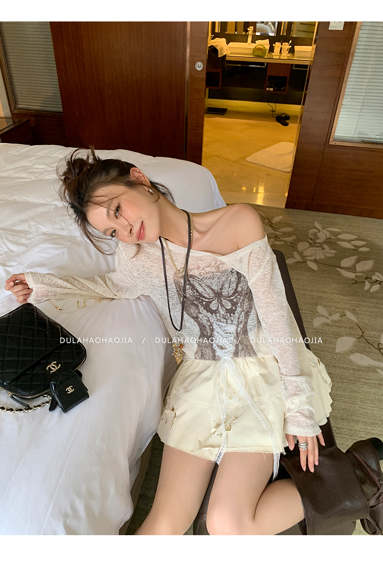 DULA Micro Butterfly Print Shoulder-Shaped T-shirt