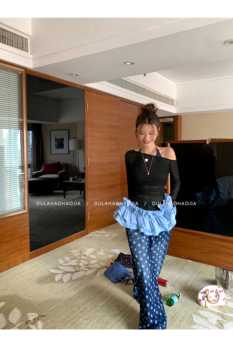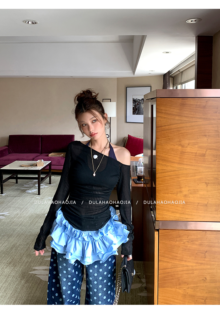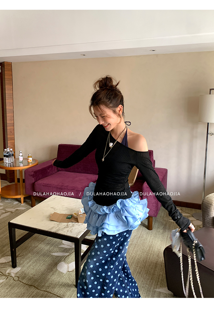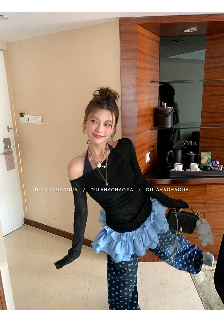 DULA Slope Shoulder Strap Knit Long Top