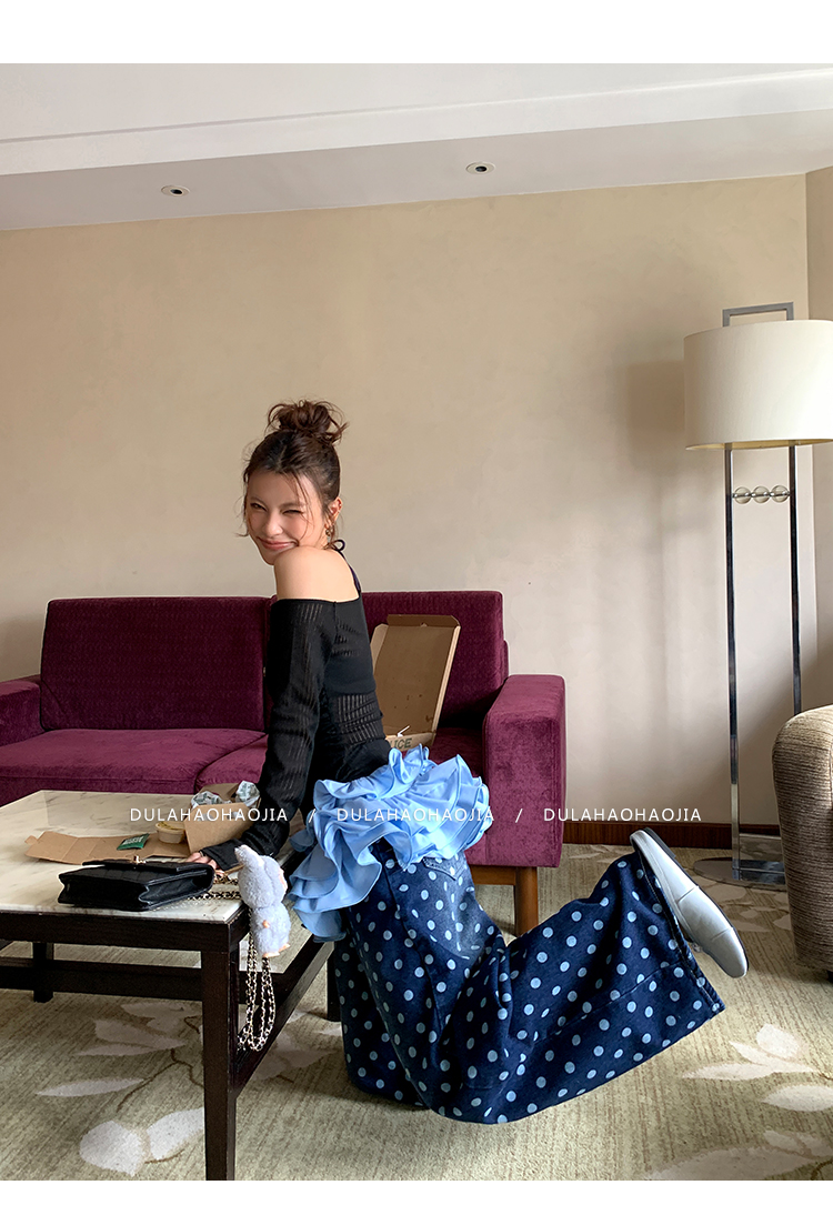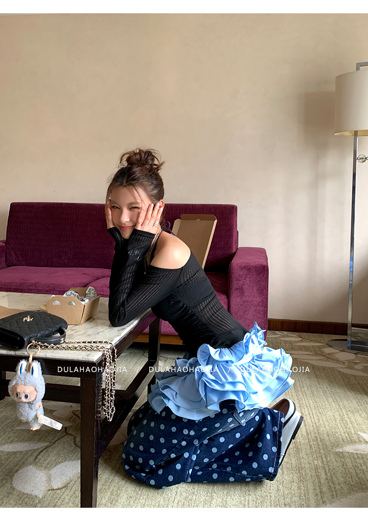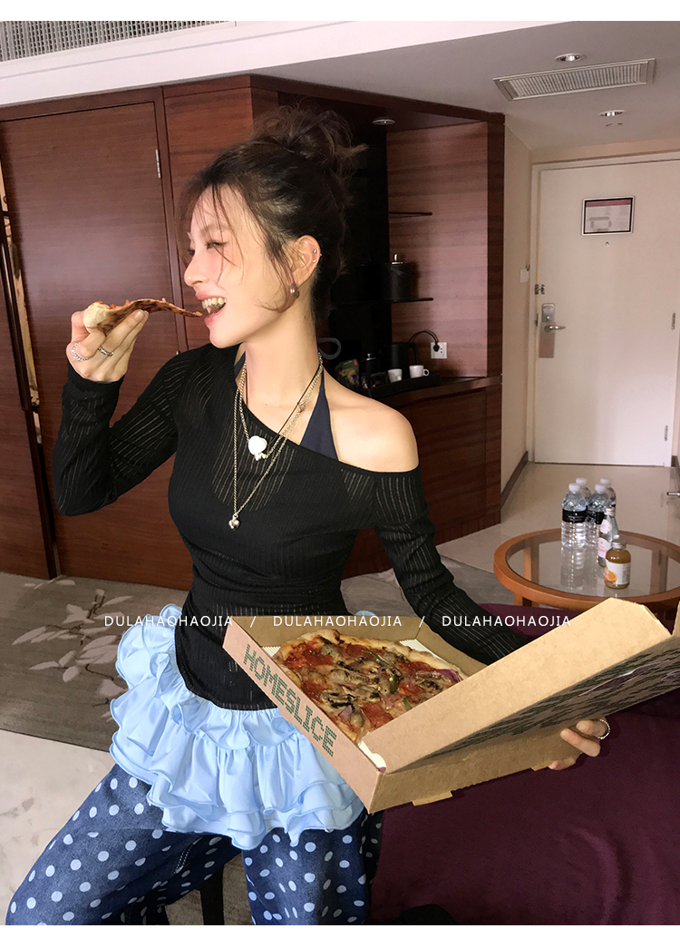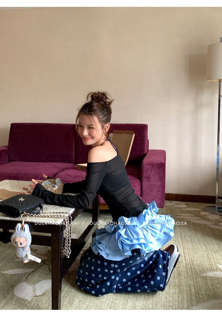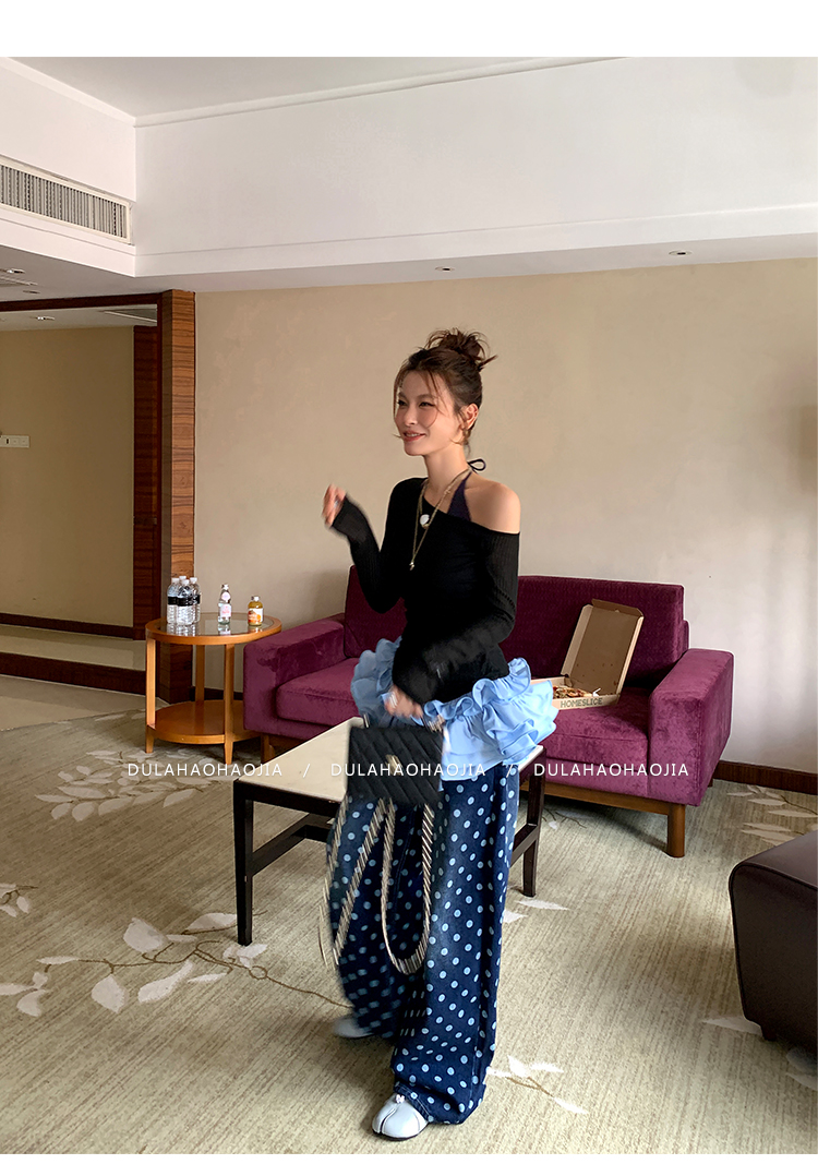 DULA Slope Shoulder Strap Knit Long Top