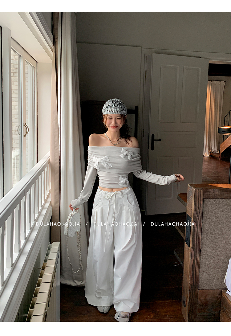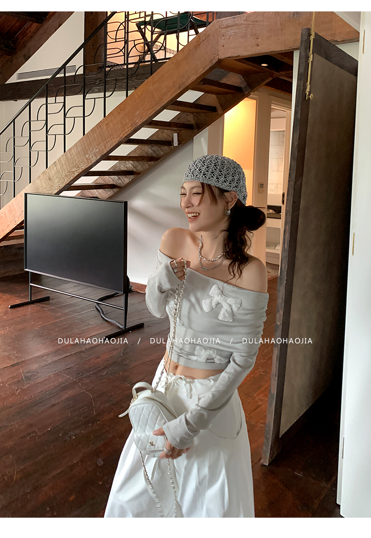 DULA Desire Lace Bow One-Character Shoulder T-Shirt