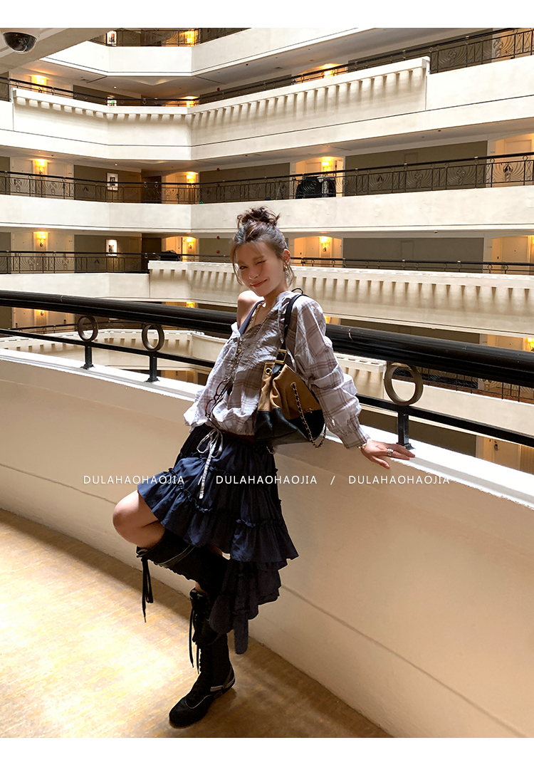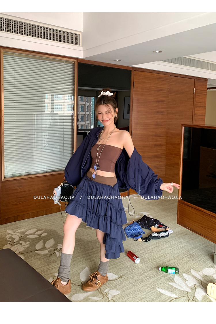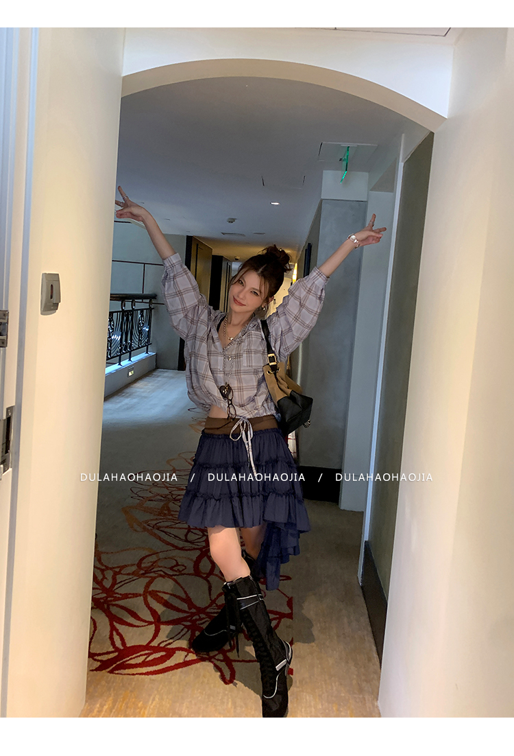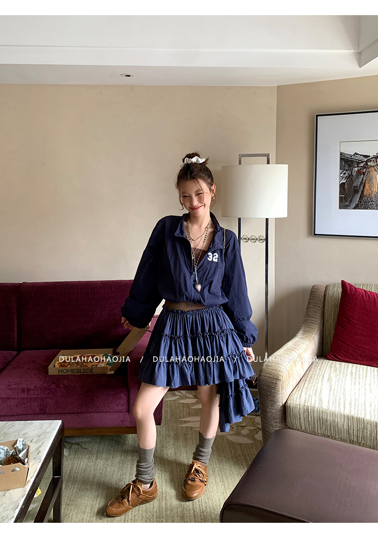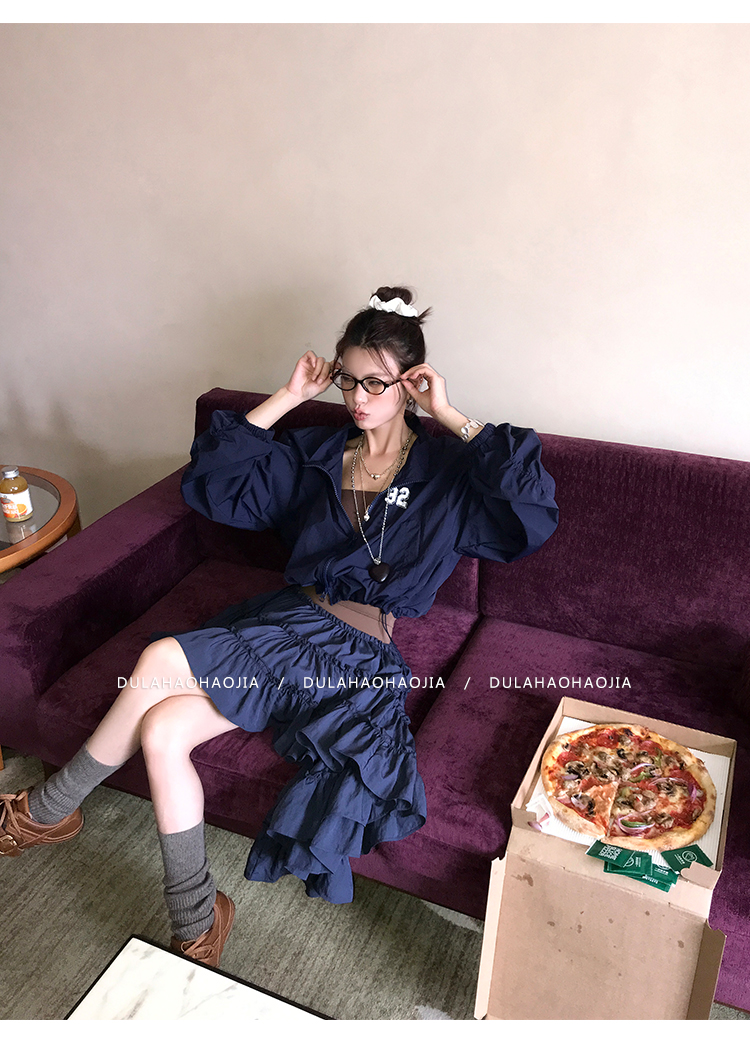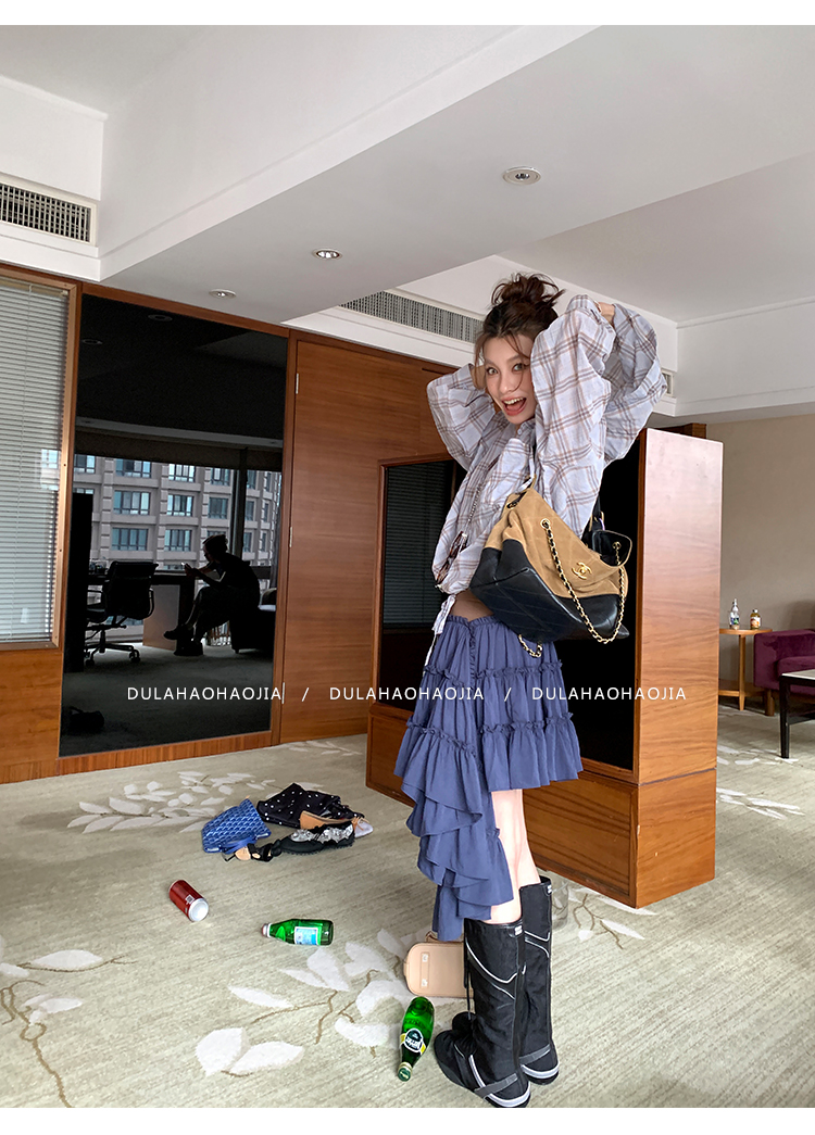 DULA Urban Stroll Irregular Lotus Leaf Edge Half-Sleeve Skirt