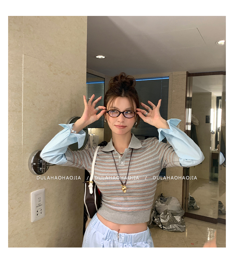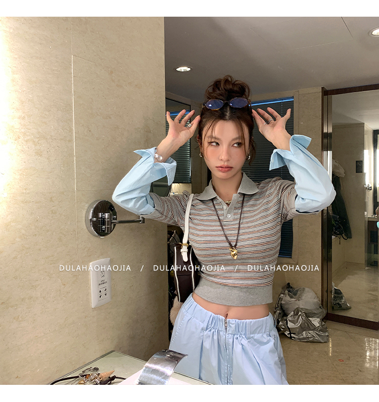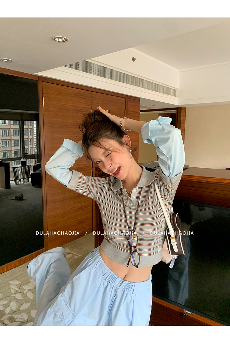 DULA Fake Two Striped Polo Short-Sleeve T-shirts