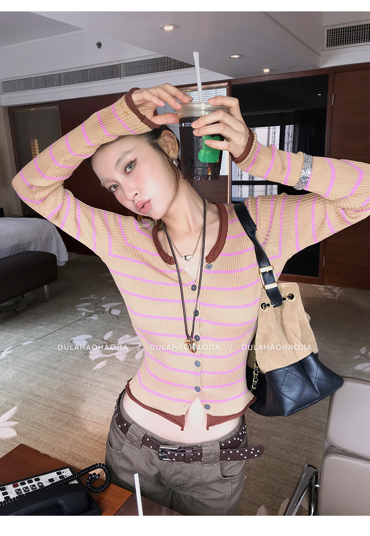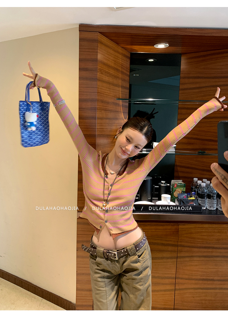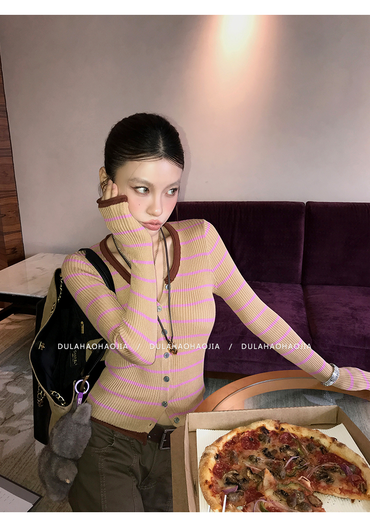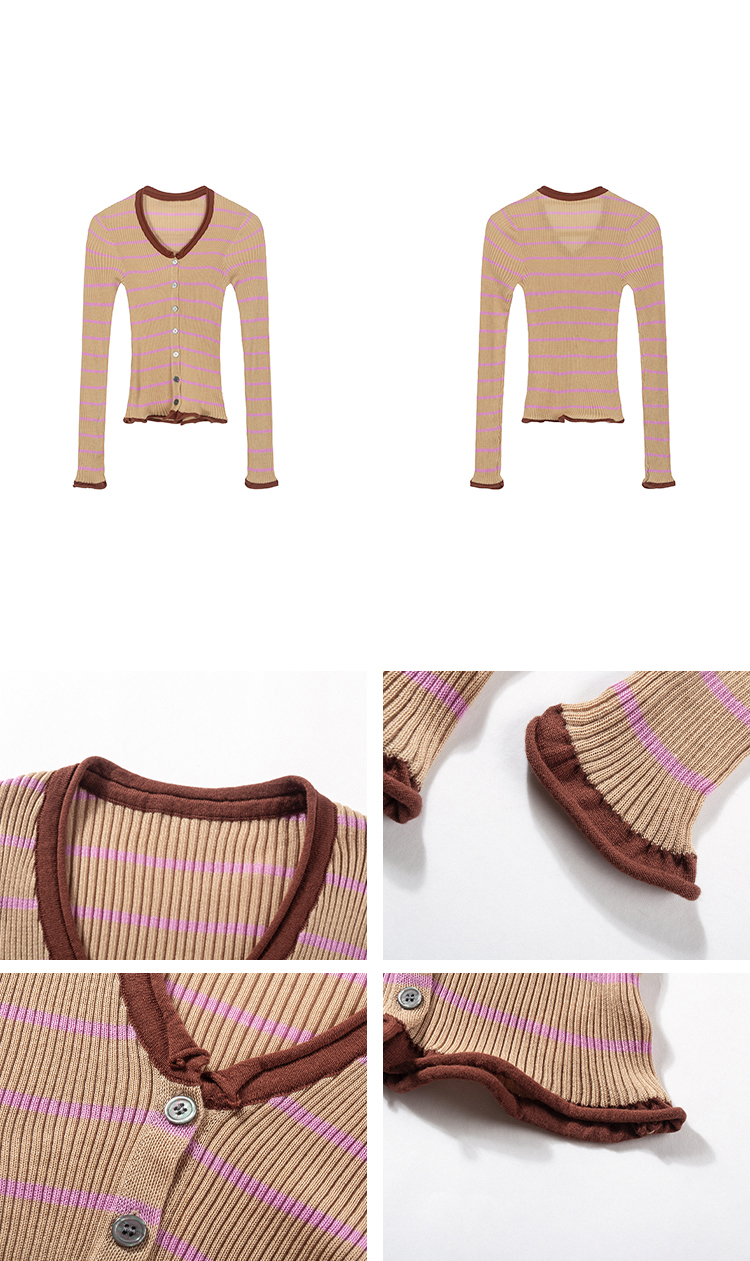 DULA Weaving Color Stripe Long-Sleeve Knit Cardigan